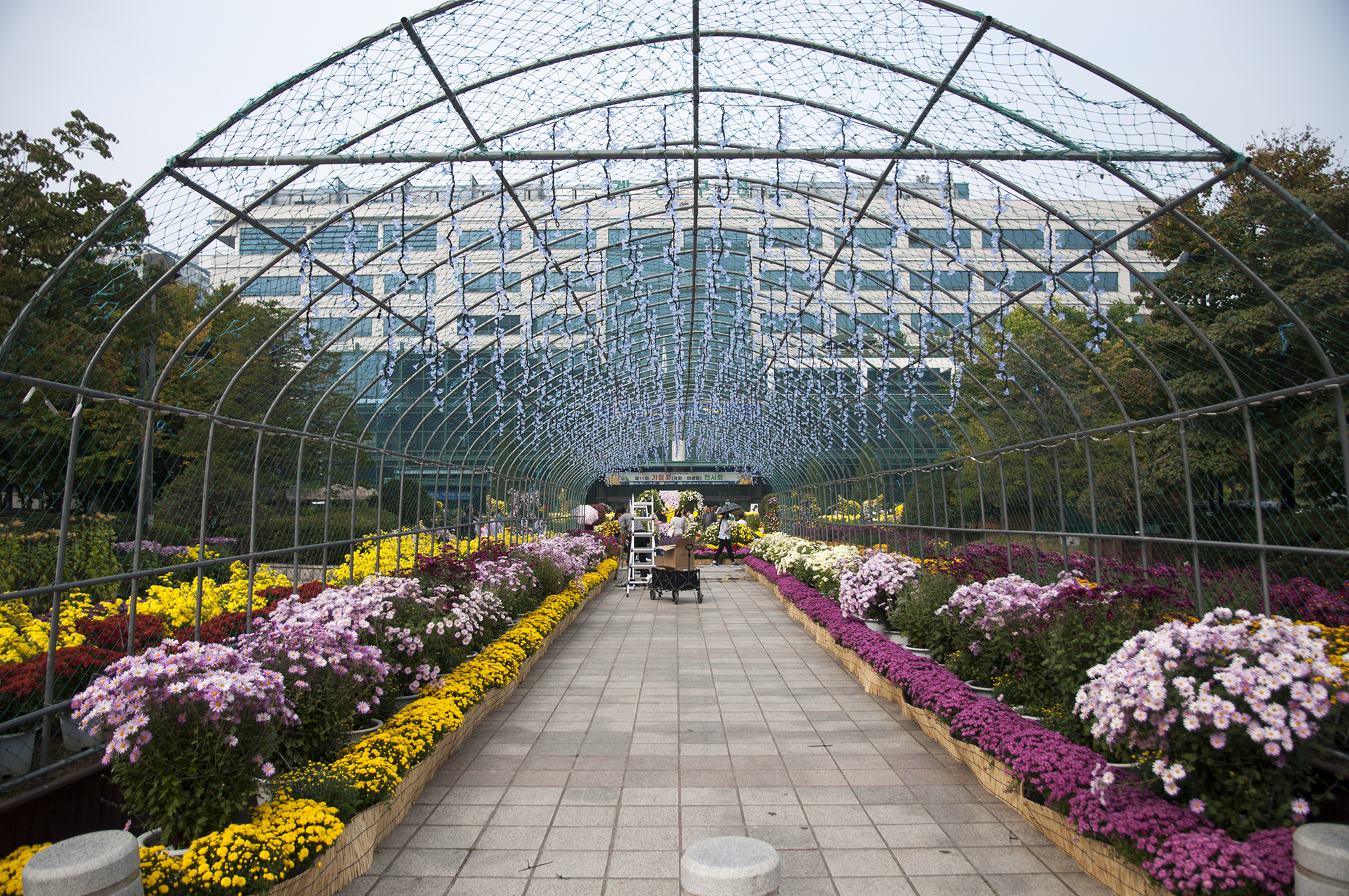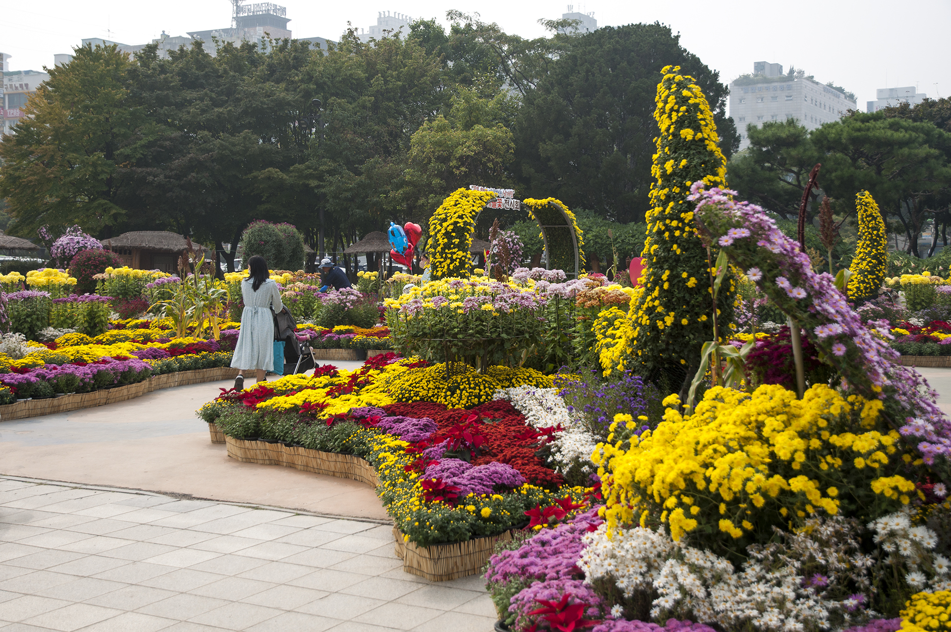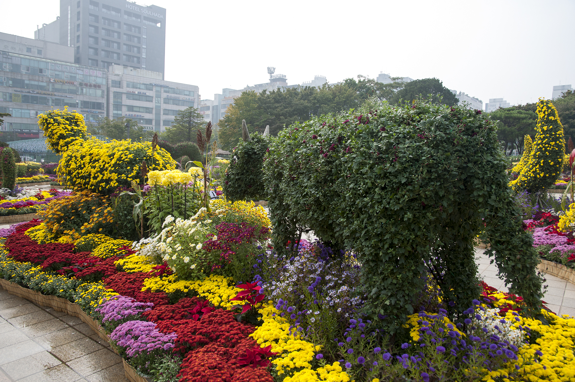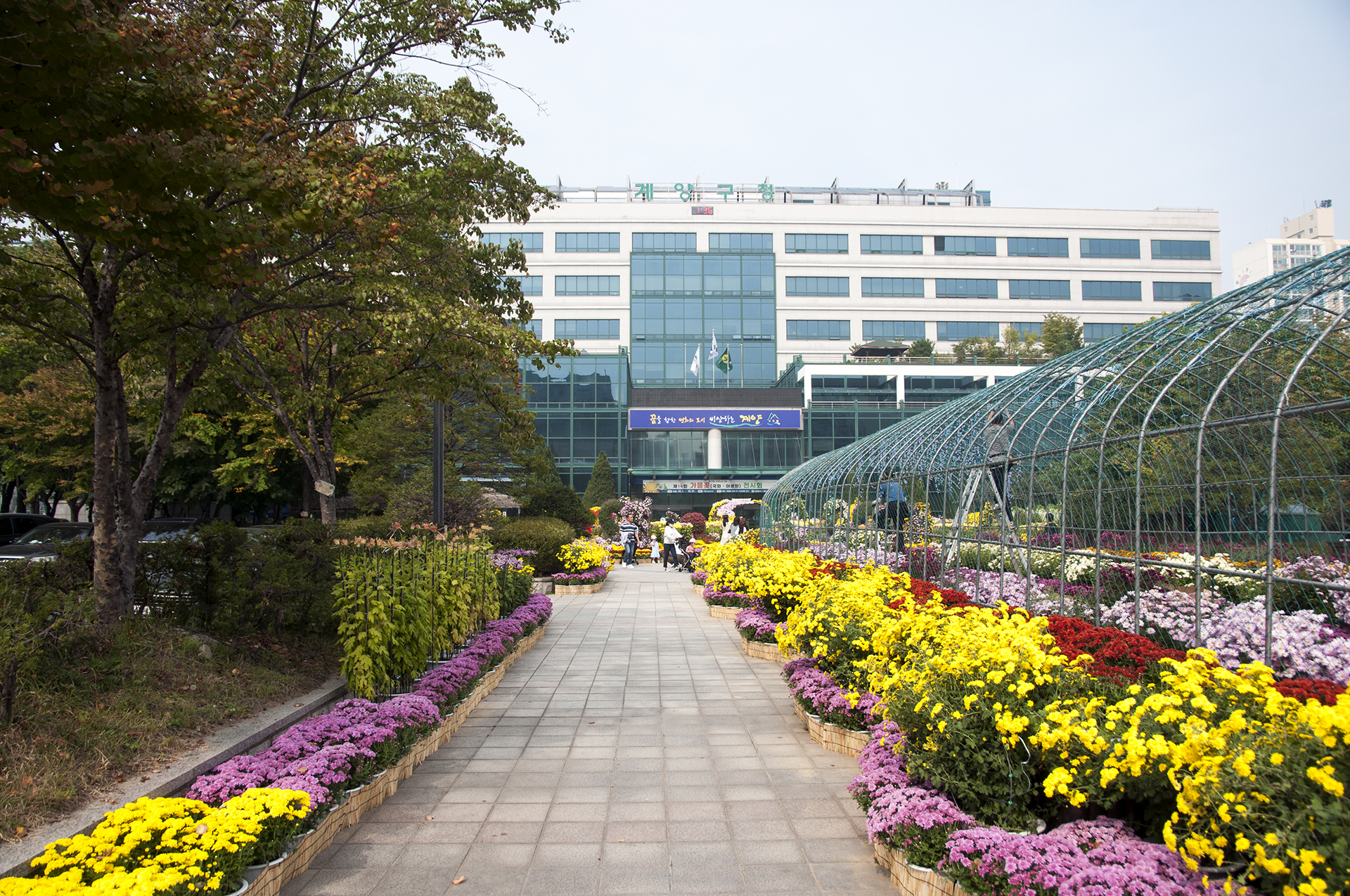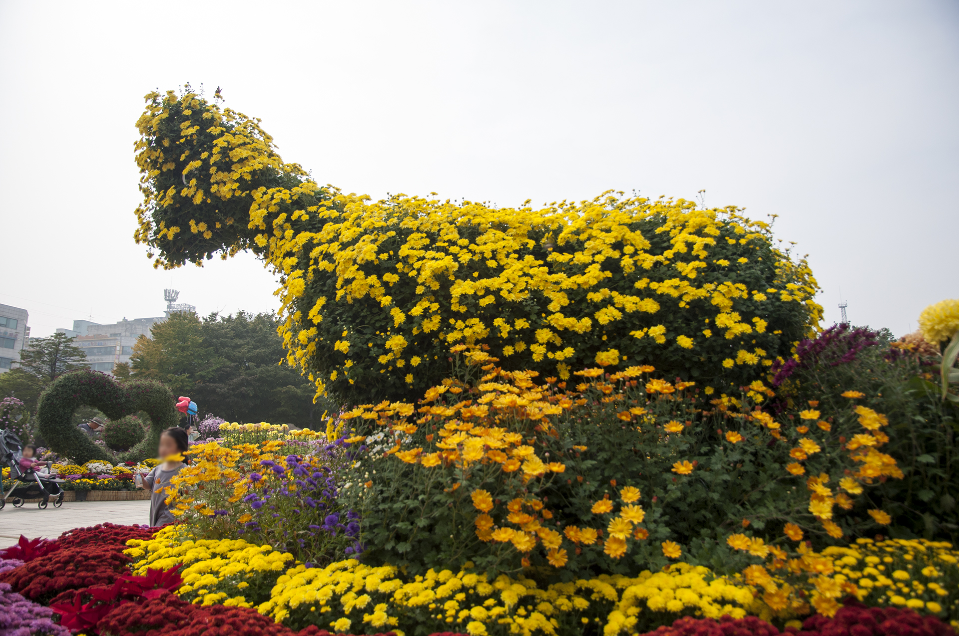 작년에는 계양꽃마루에 국화를 전시했었는데, 올해는 구청 광장에 국화와 야생화, 분재 등 15,000본을 전시하였다.