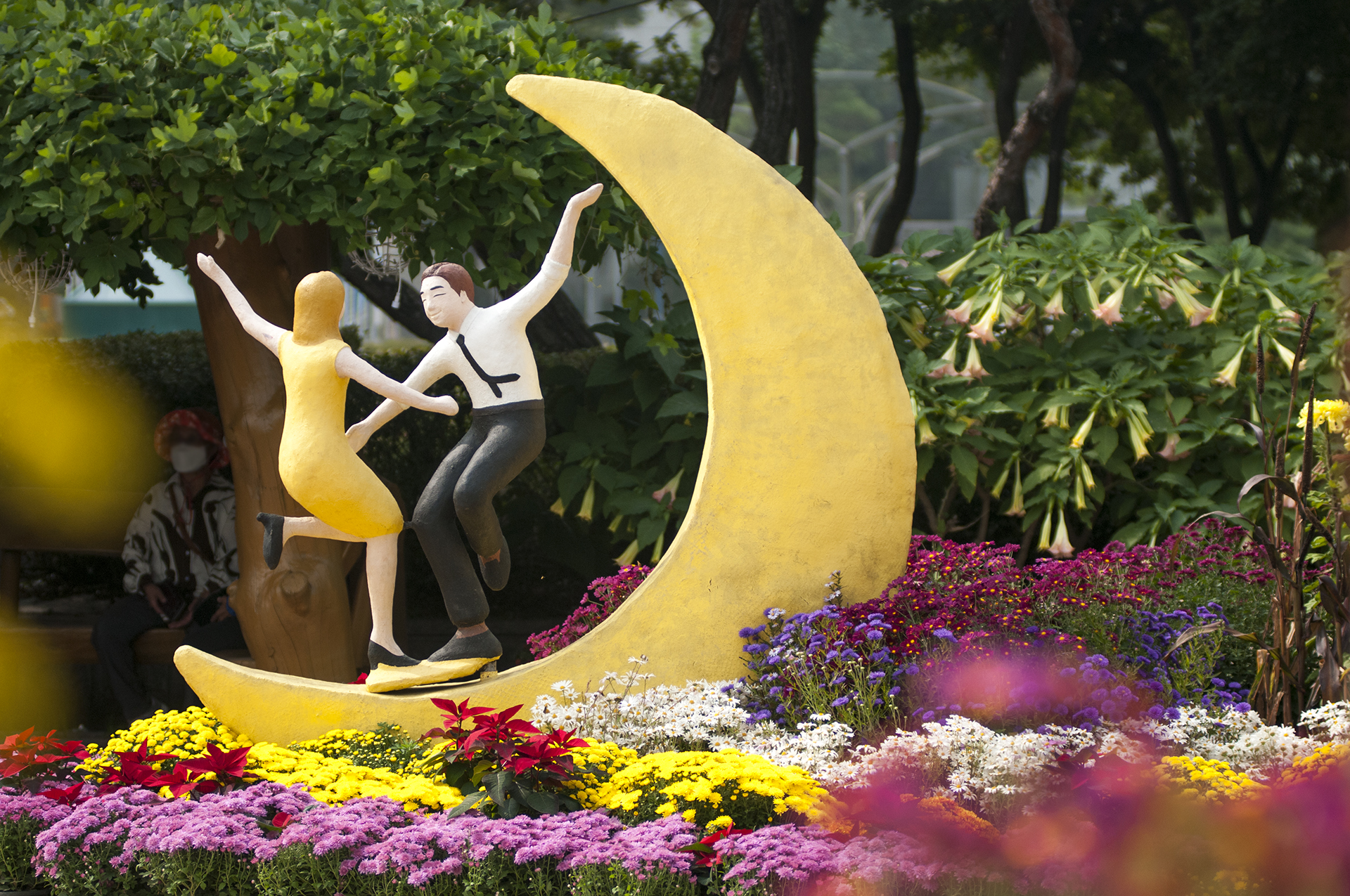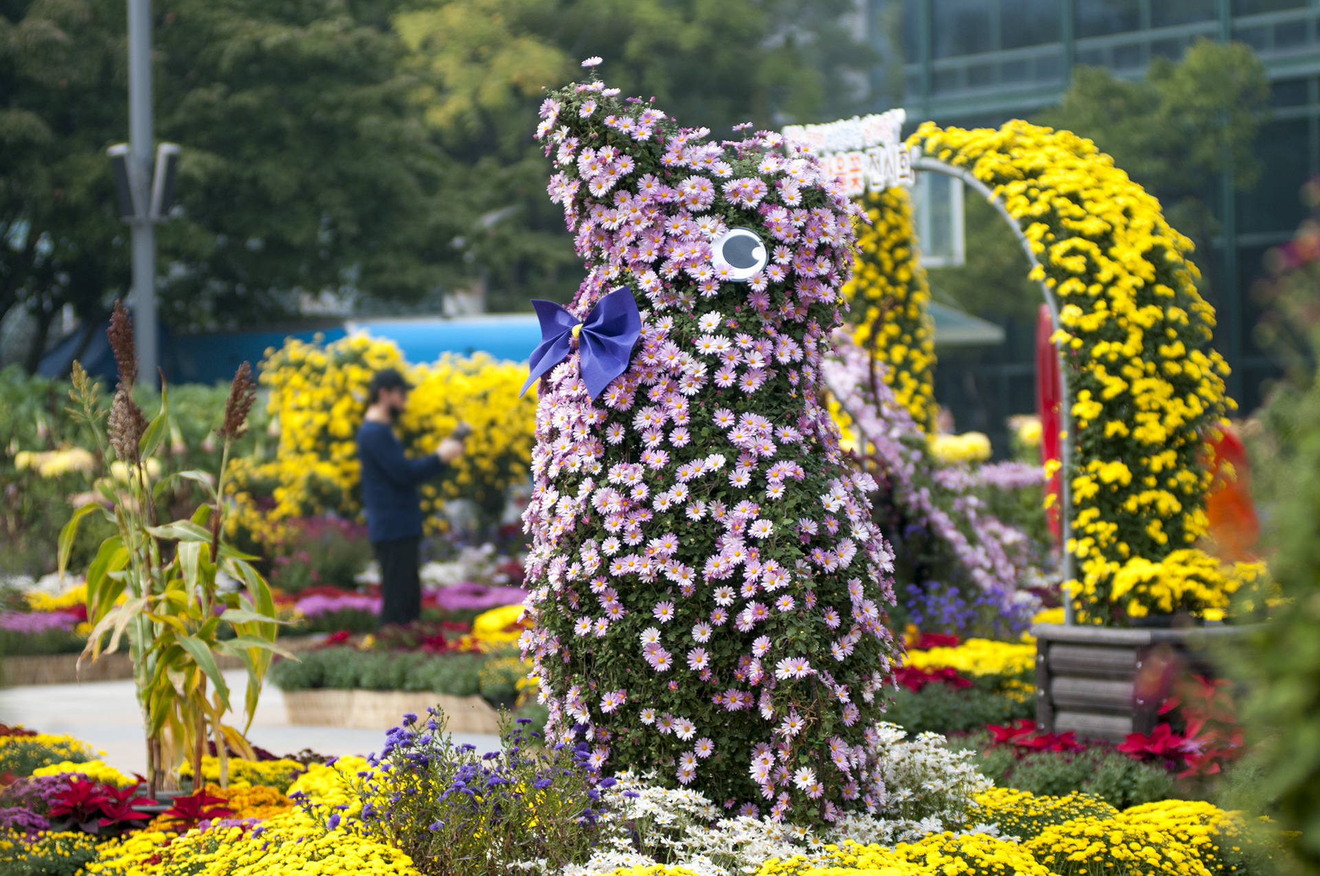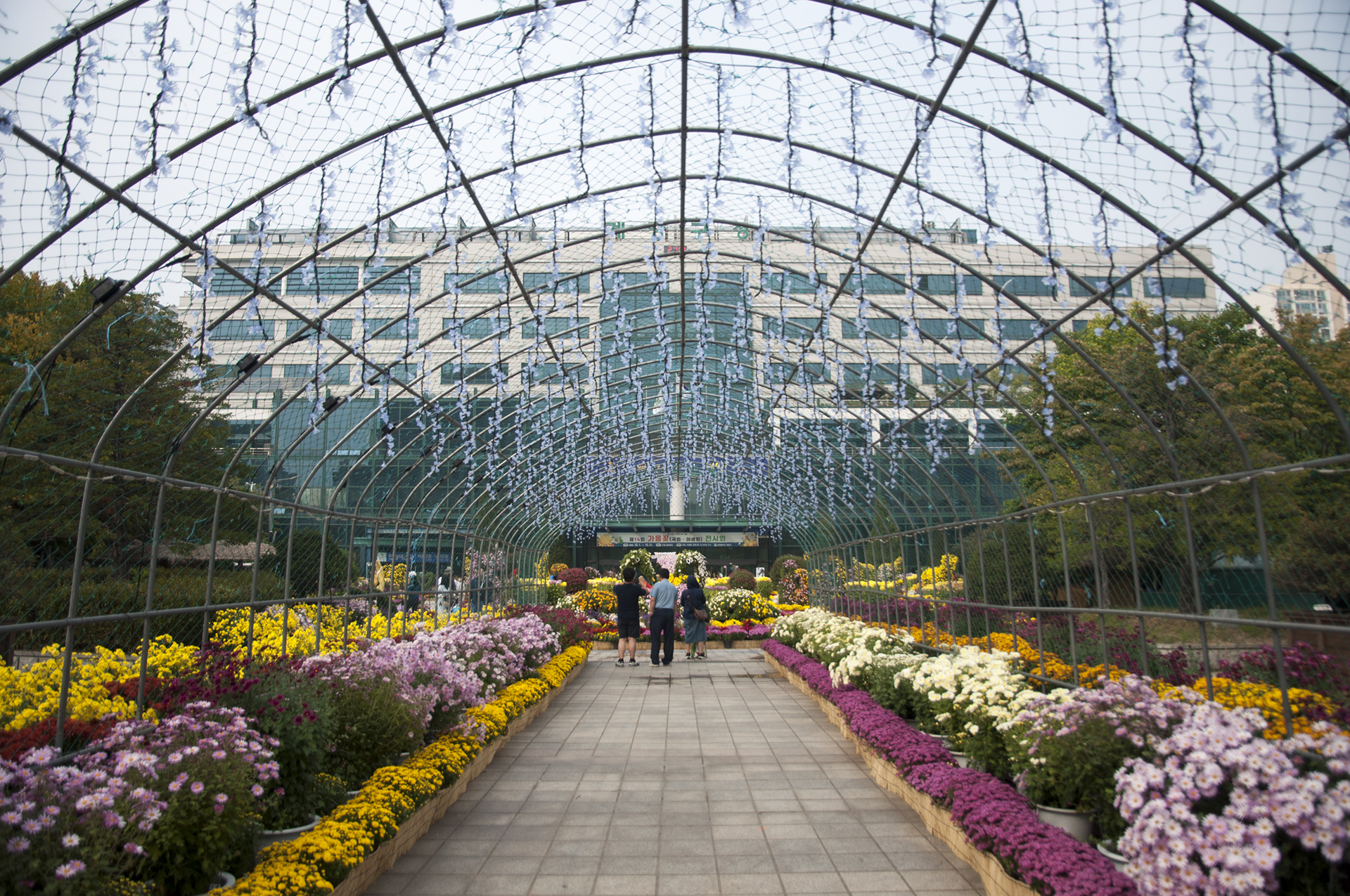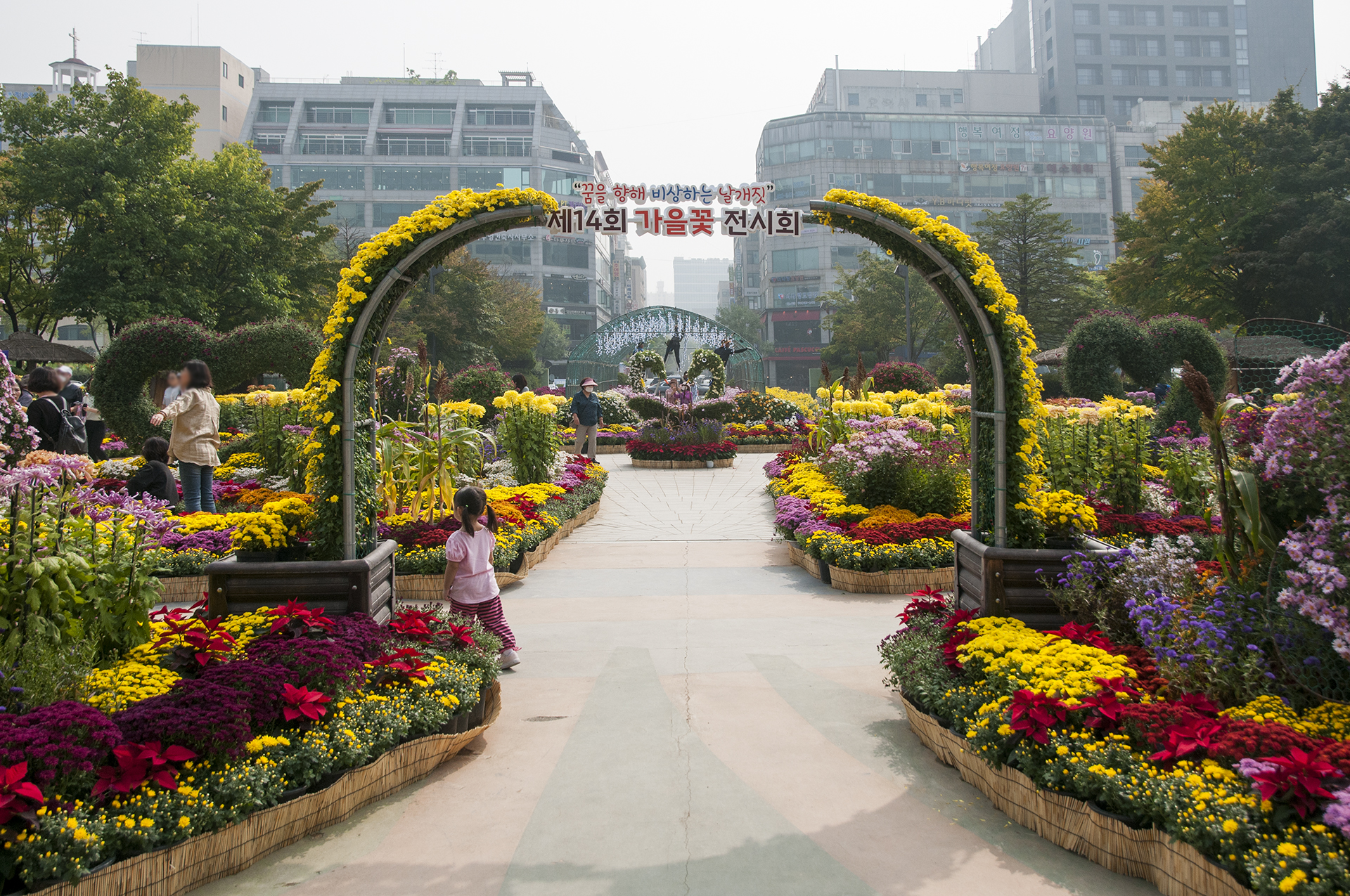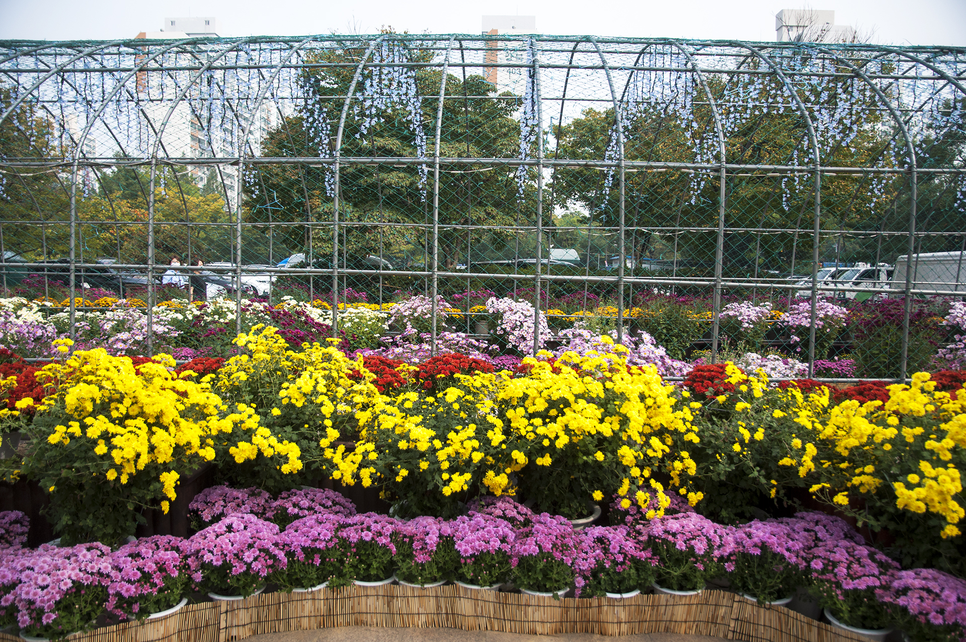 작년에는 계양꽃마루에 국화를 전시했었는데, 올해는 구청 광장에 국화와 야생화, 분재 등 15,000본을 전시하였다.
