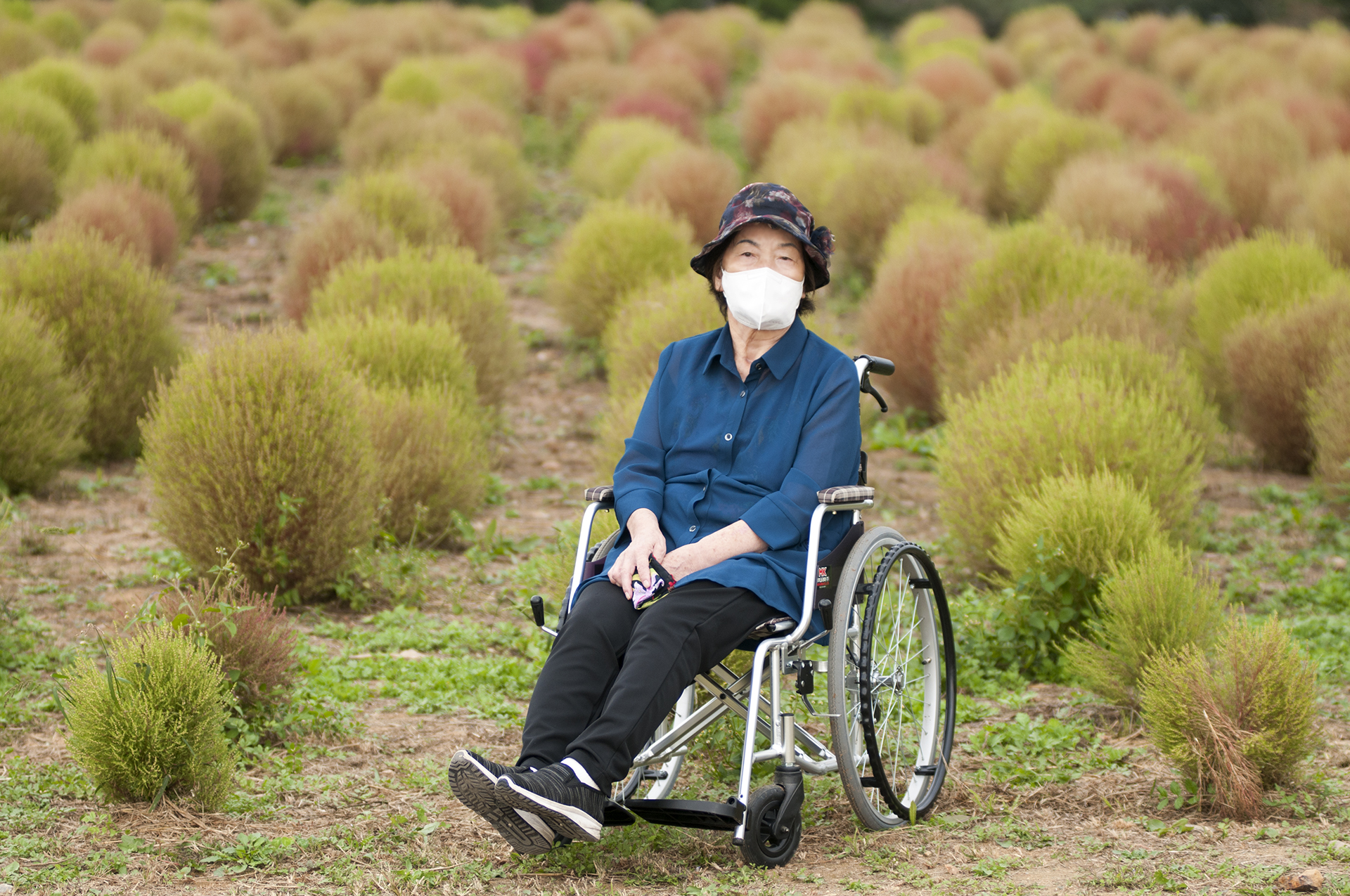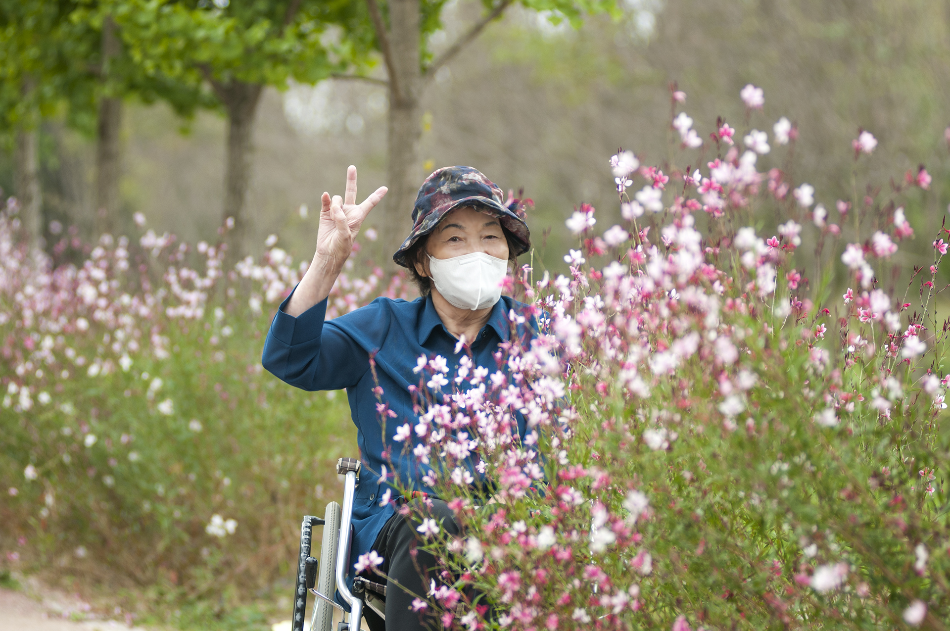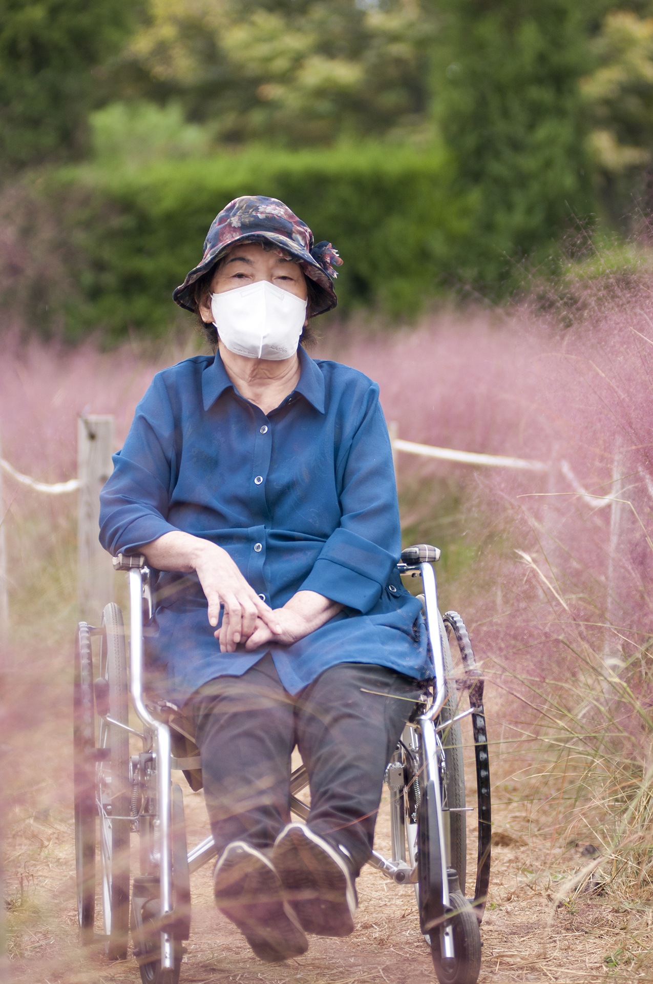 수술후 면역력때문에 외출해도 마스크를 절대 벗지 않았는데 예쁘게 한장 찍어달라 하신다.