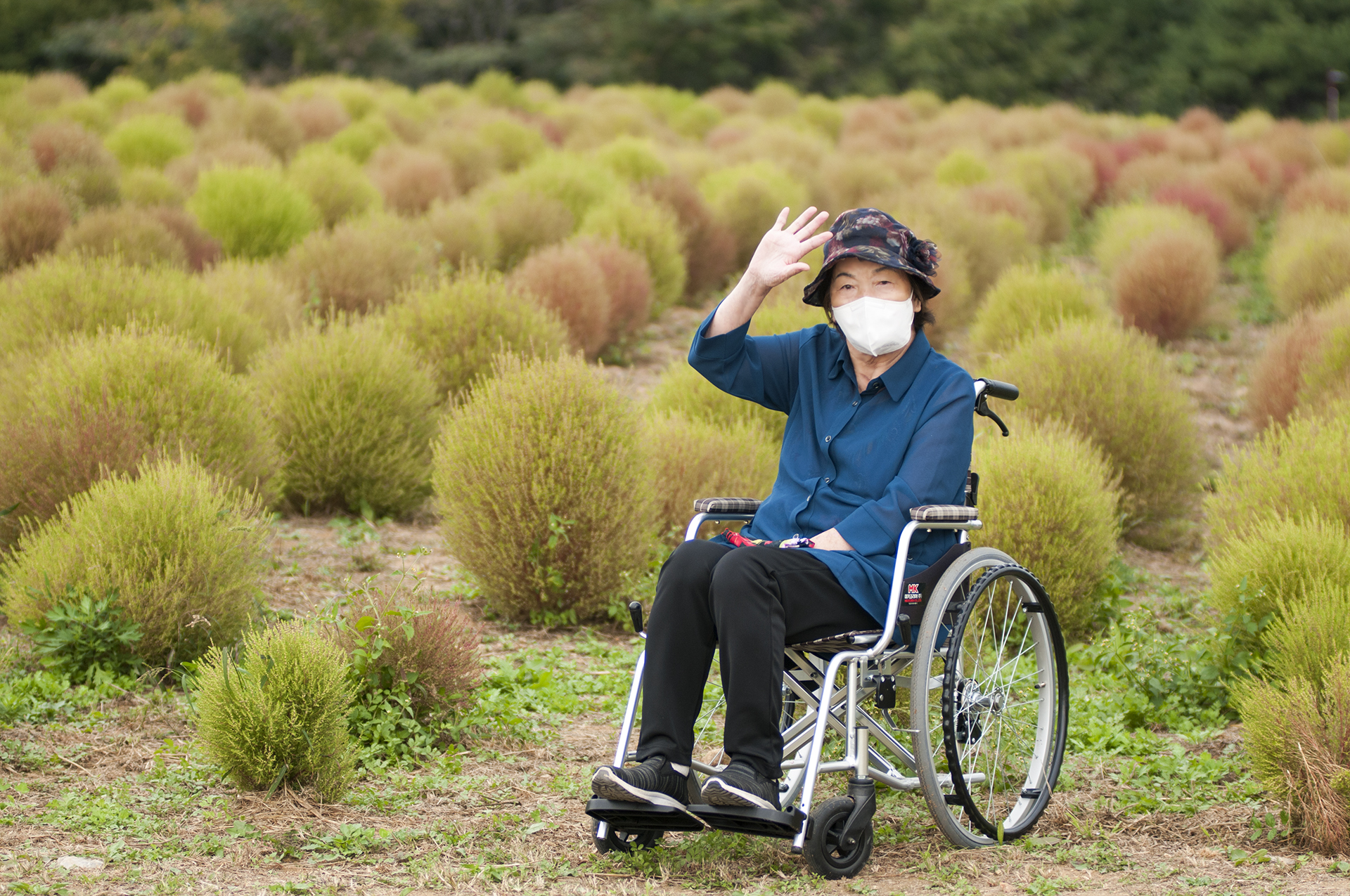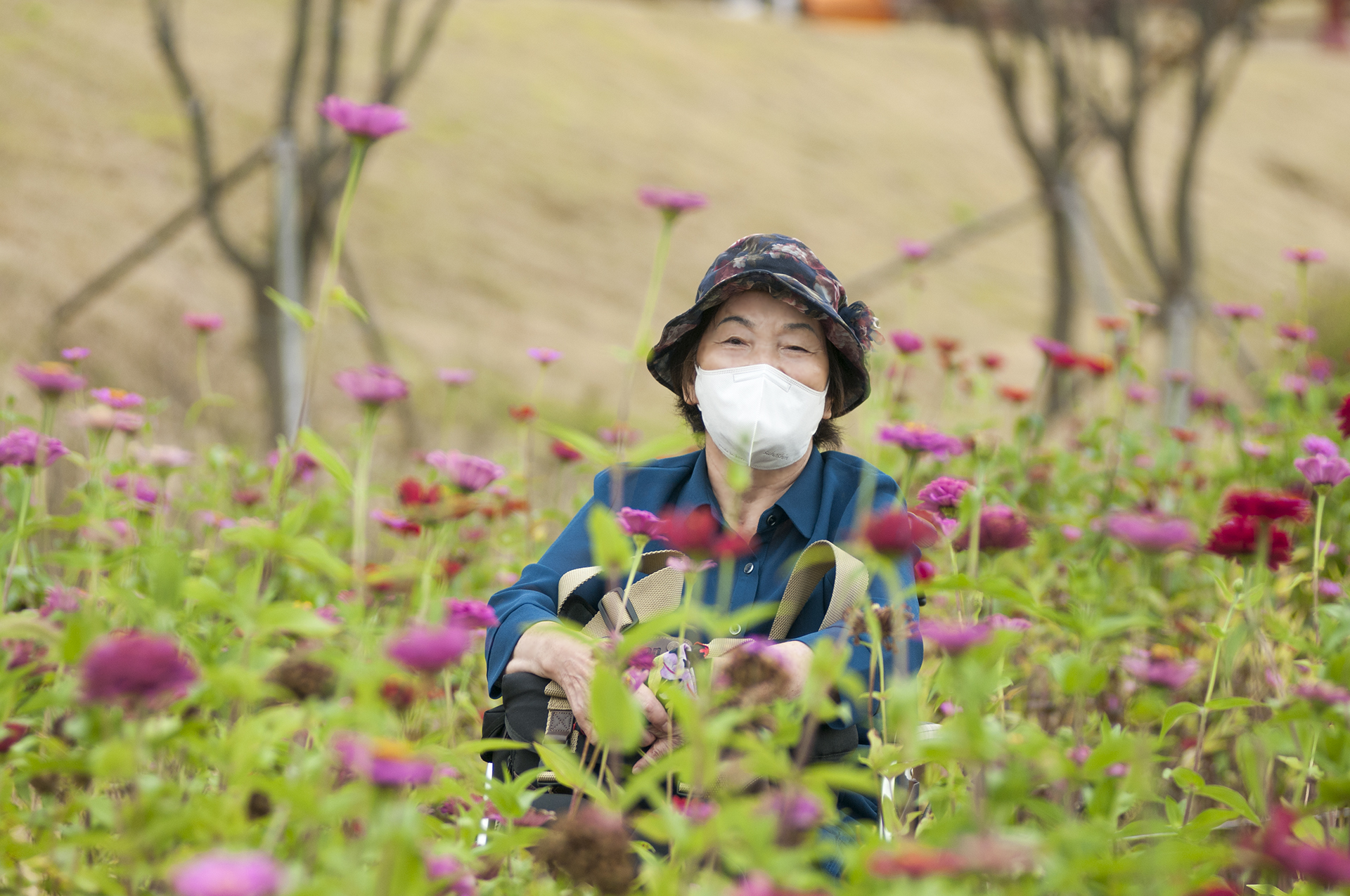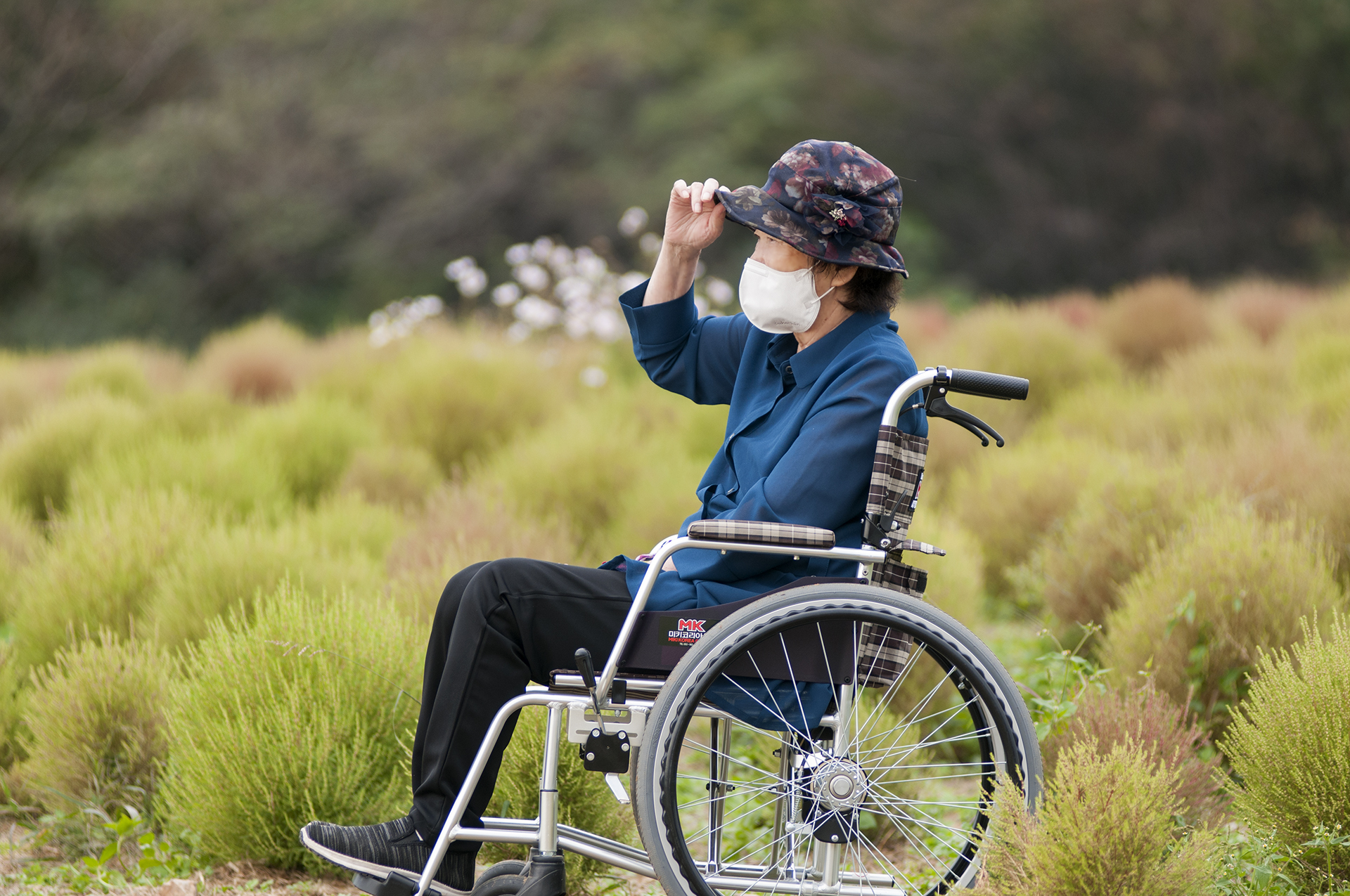 수술후 면역력때문에 외출해도 마스크를 절대 벗지 않았는데 예쁘게 한장 찍어달라 하신다.