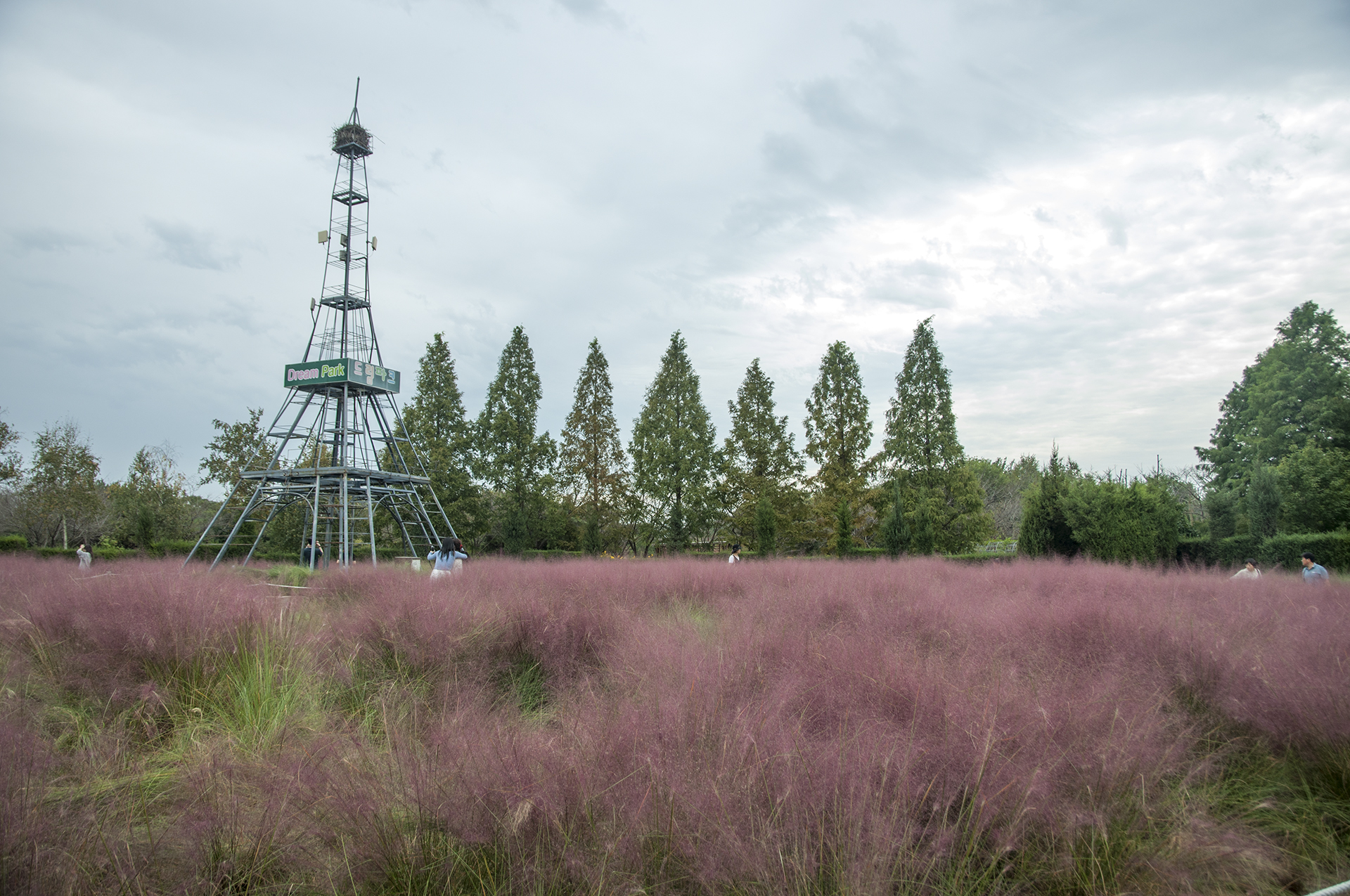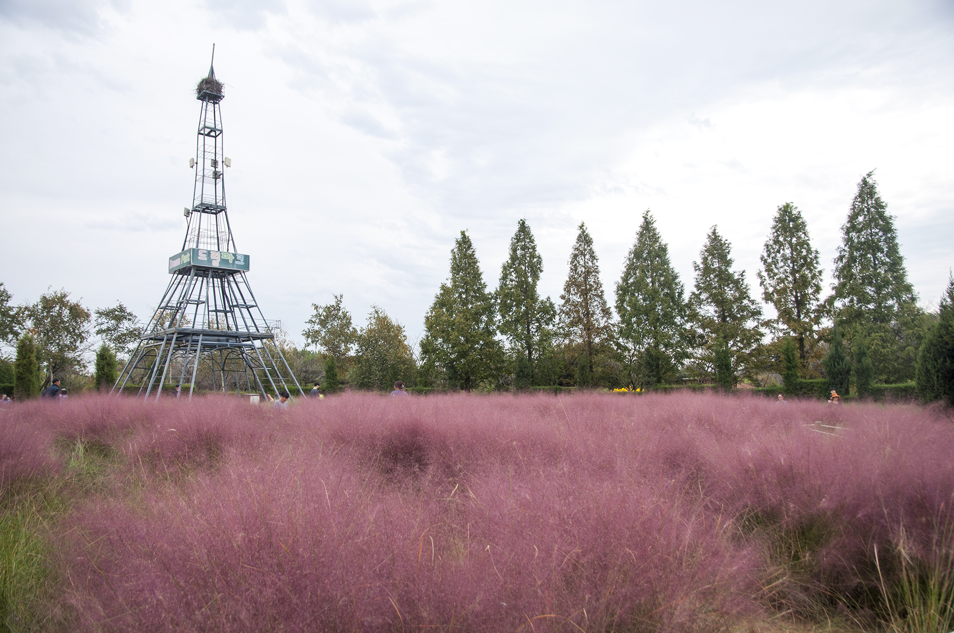마지막으로 들른 곳은 핑크뮬리원, 햇빛이 나지 않아 색감이 칙칙하기만 하다.