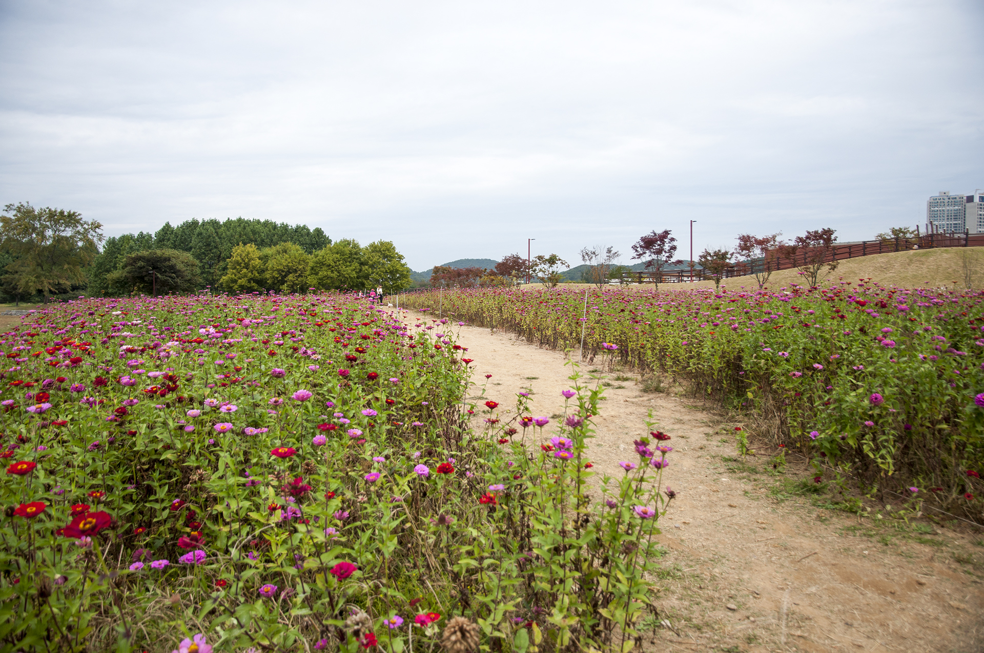 작년에는 이 길이 공사중이어서 수생식물원을 크게 돌아 입장했었는데, 이렇게 좋은 길이 백일홍 꽃밭으로 바로 이어진다.