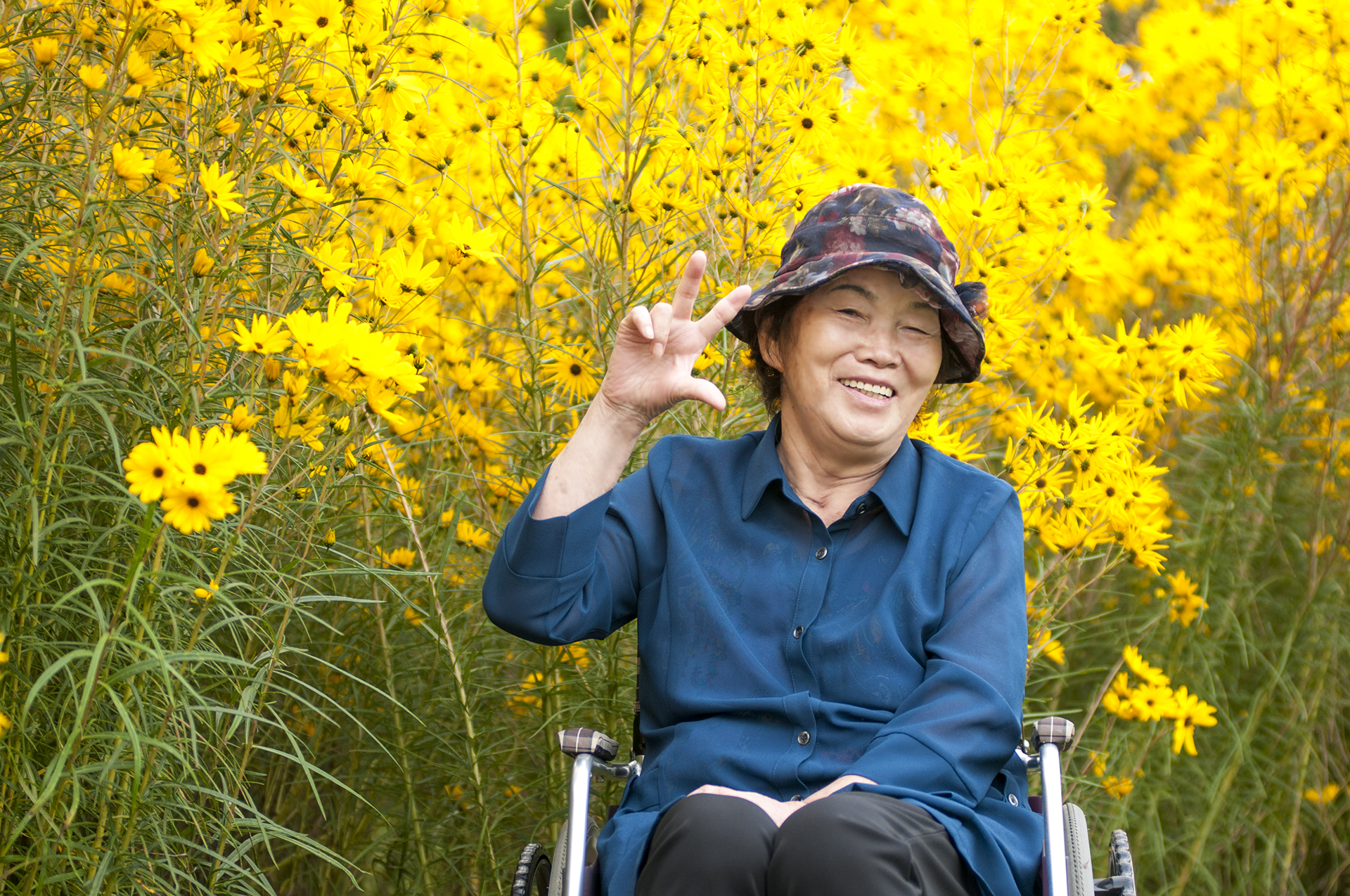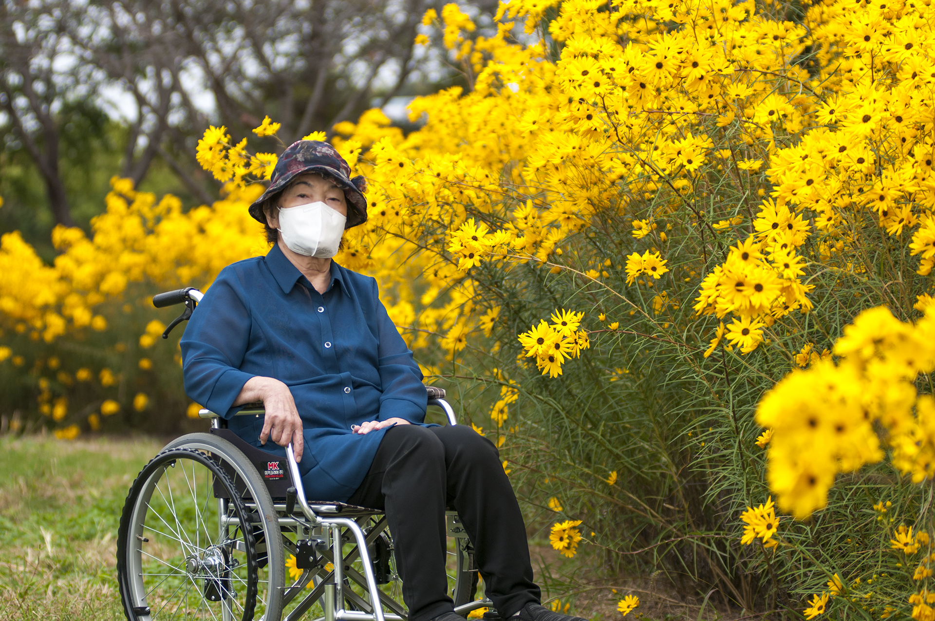 이곳까지 애기해바라기가 길게 이어져 있어 그쪽에서 바라본 프레임이 궁금했는데 휠체어 덕분에(?) 바로 포기하고,