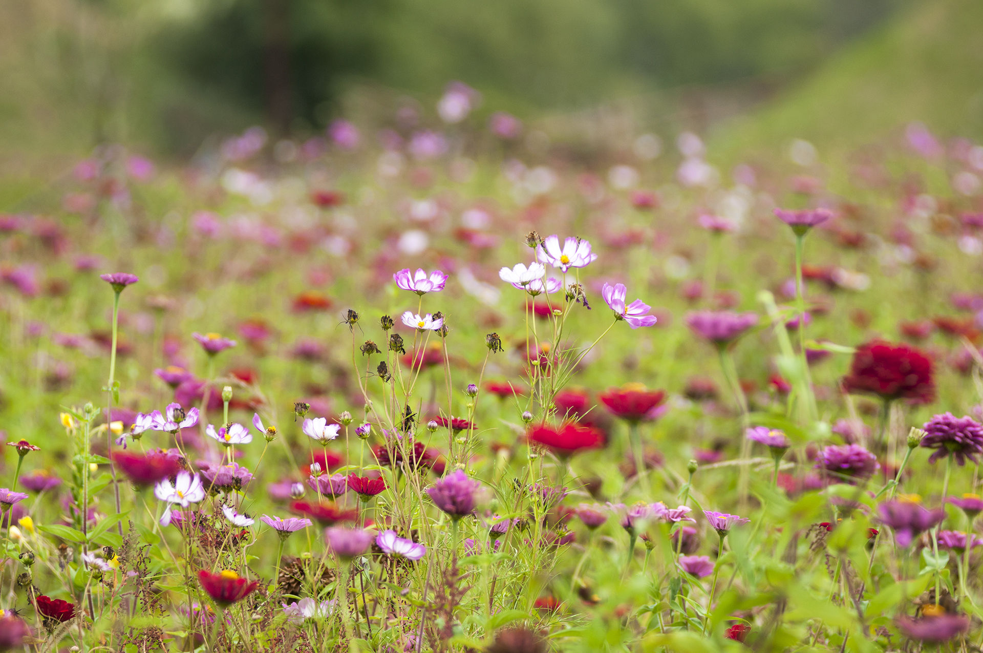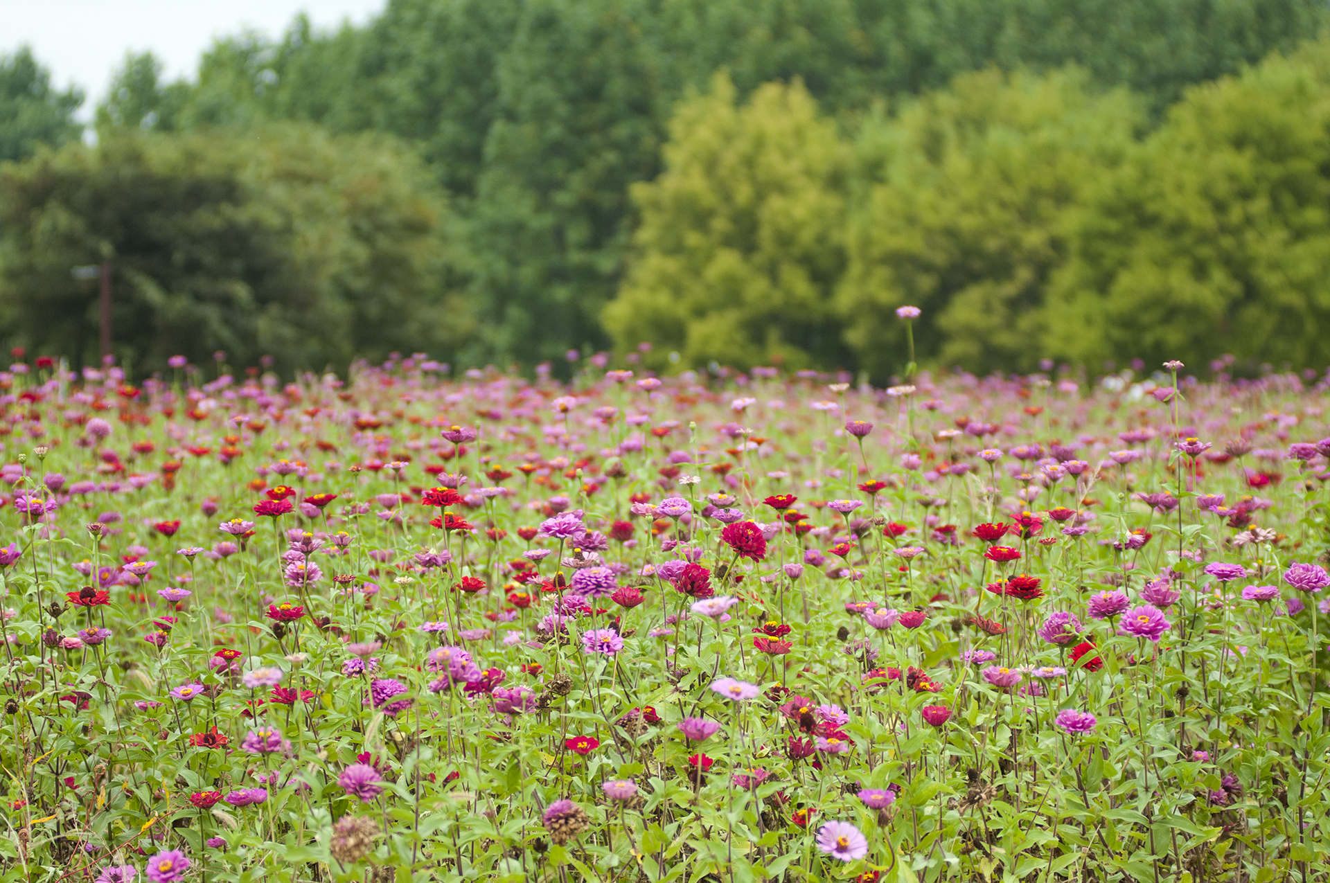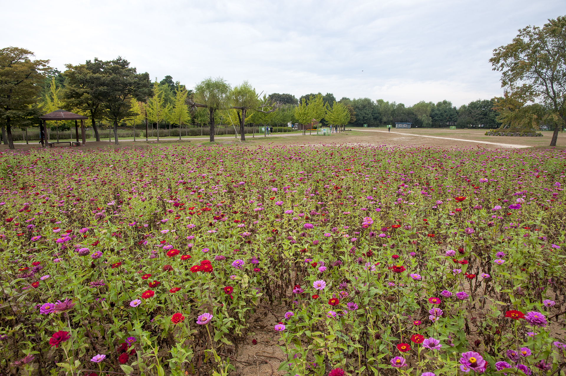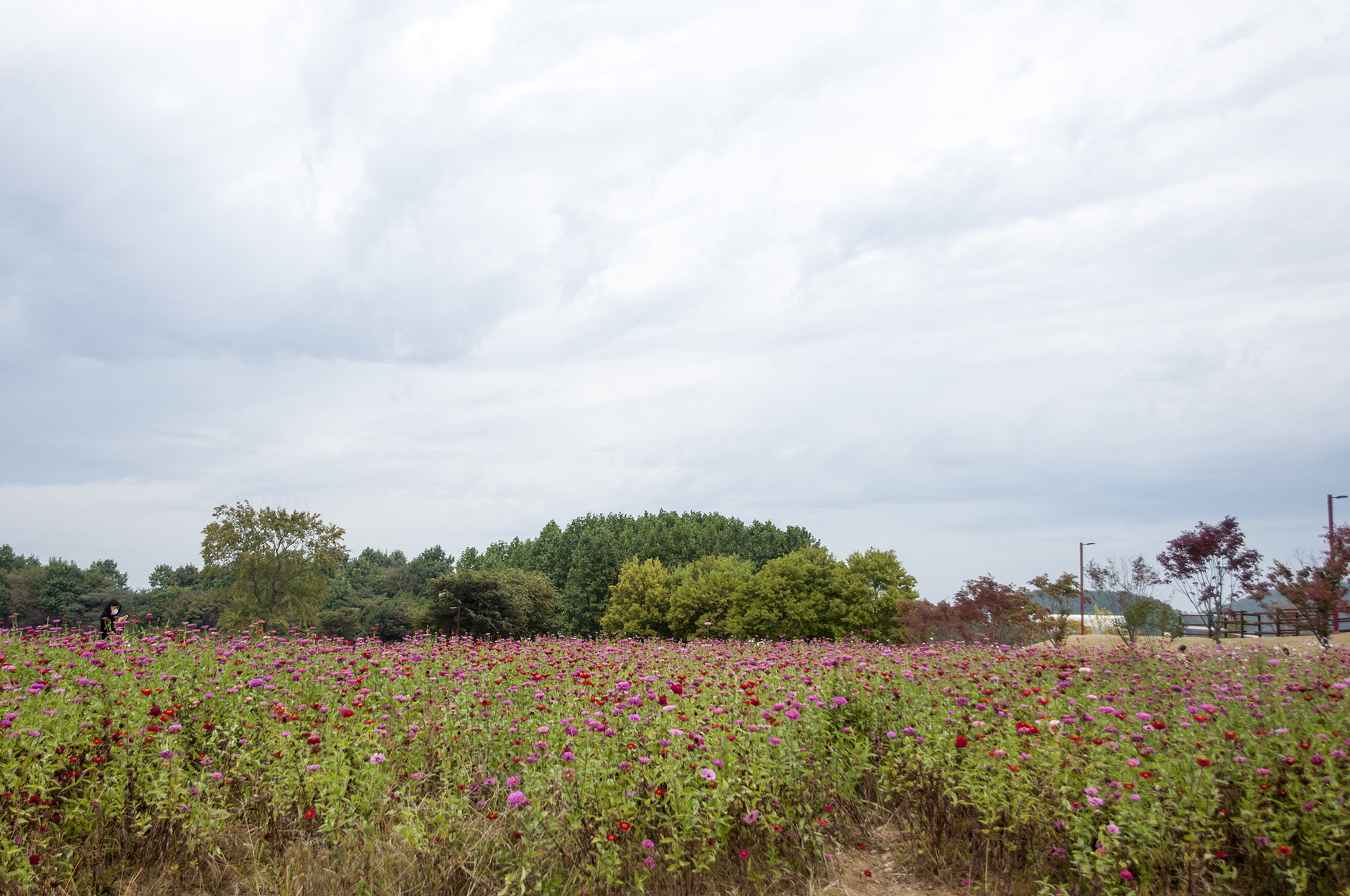 구름이 잔뜩 껴 해가 나지않아 아쉬운 백일홍 꽃밭의 풍경, 오후에는 비 예보가 있어 마냥 놀고 있을수만은 없다.