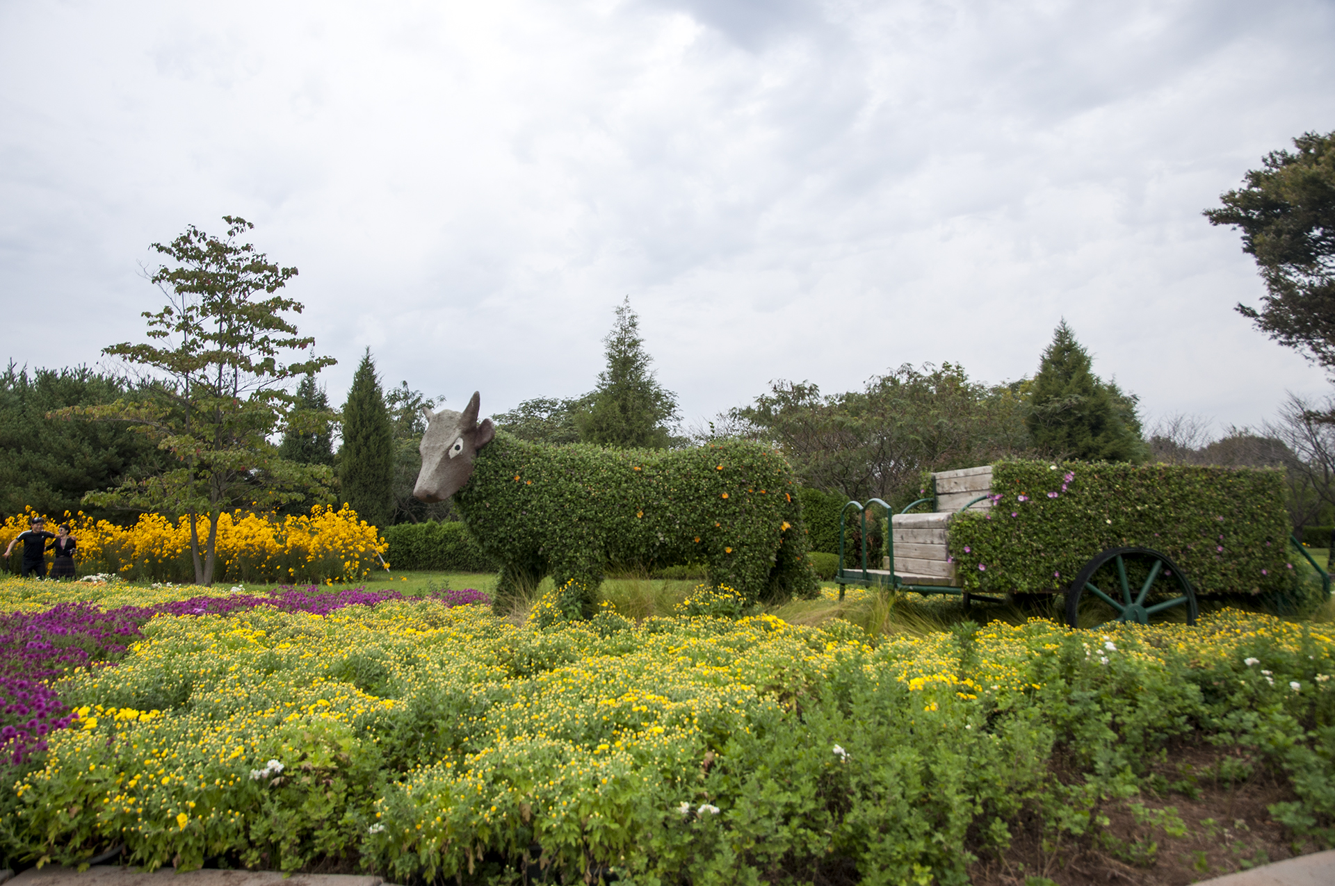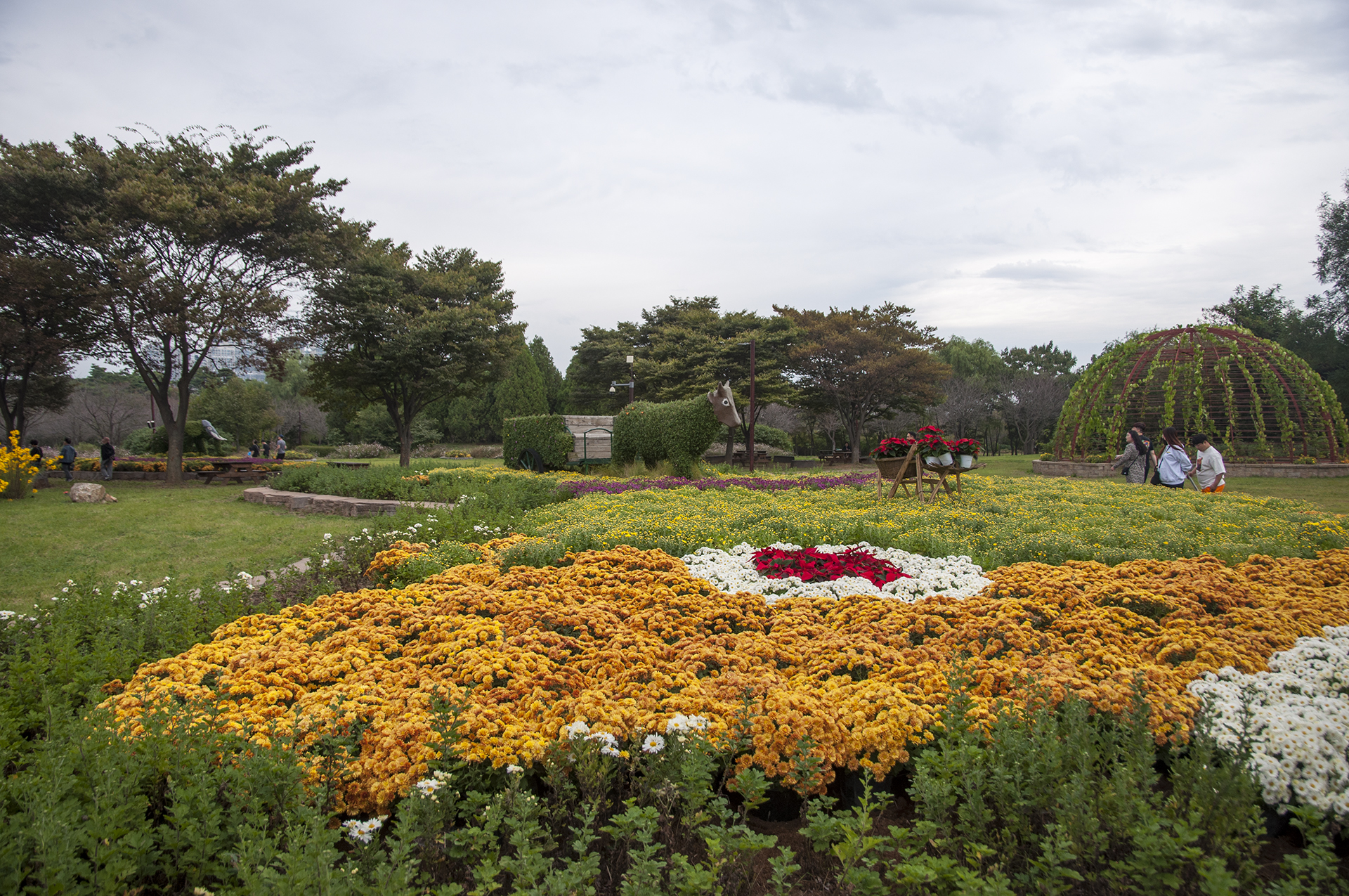 잠깐동안 내린 비가 그치고,링링각에서 조금더 걸어 국화작품 전시회가 열리는 곳으로 걷다보면 이곳에도 온통 노란빛 투성이다.
