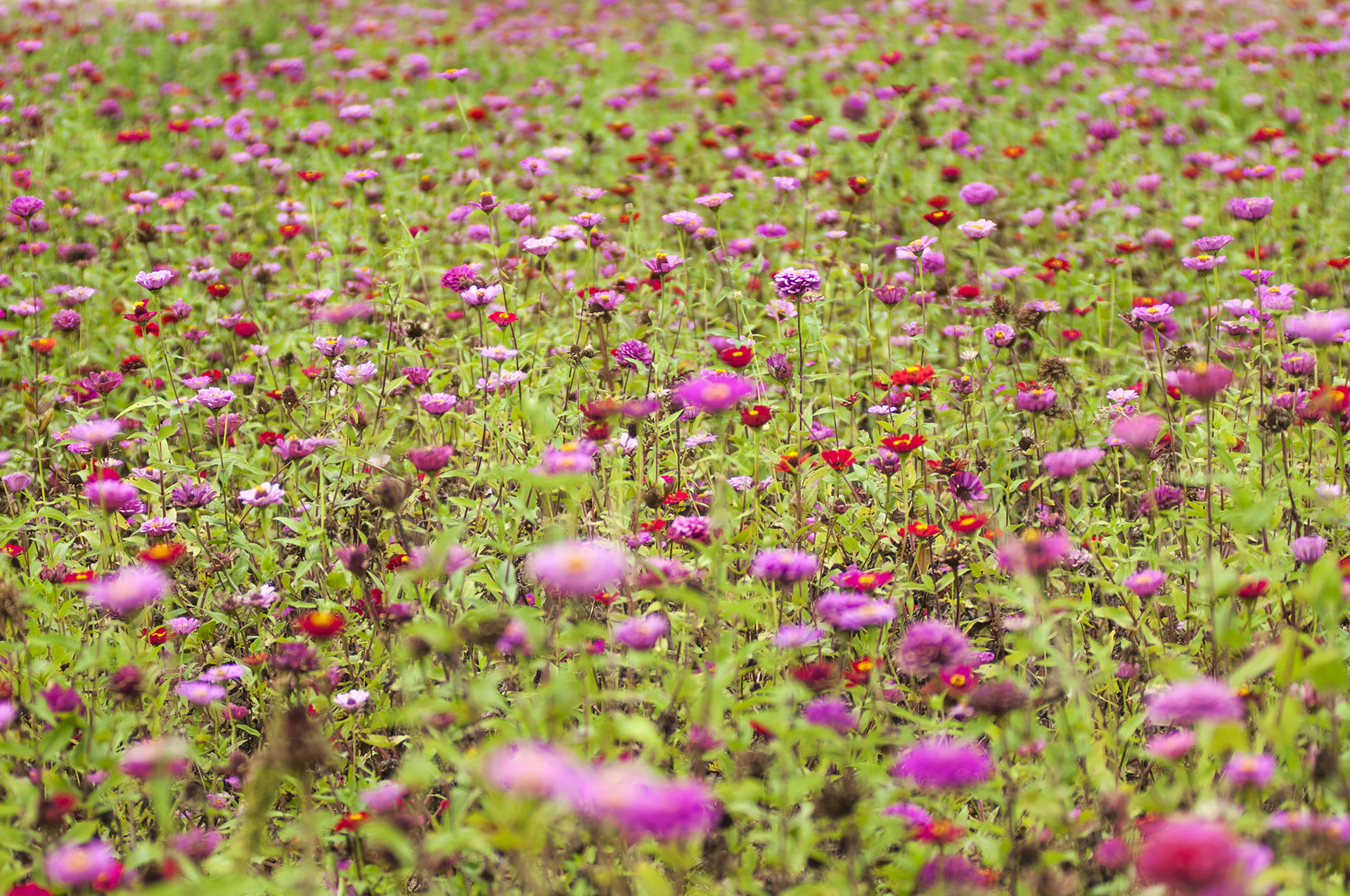 다양한 색깔의 백일홍이 이미 만개한 상태다.