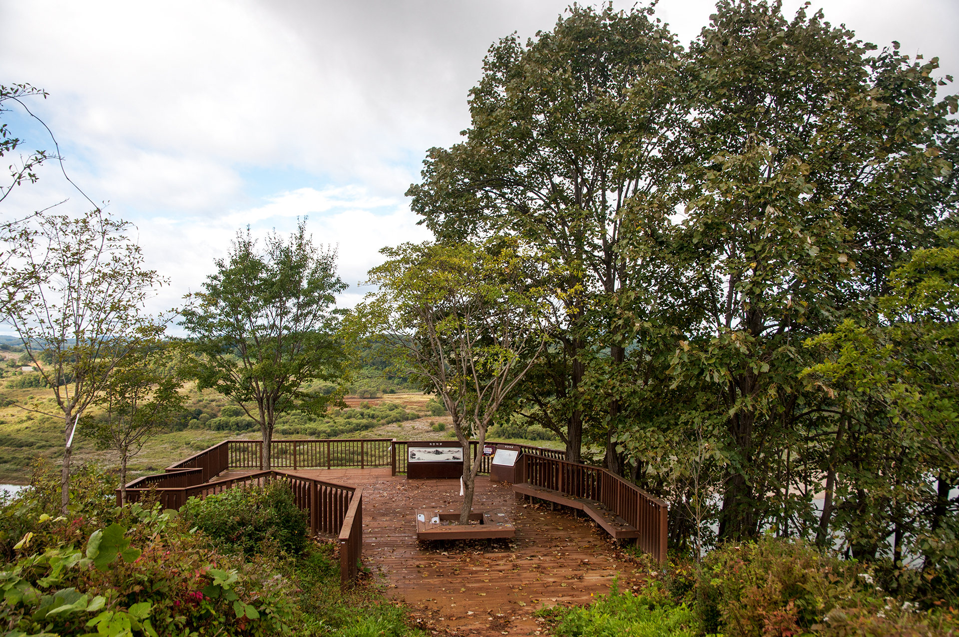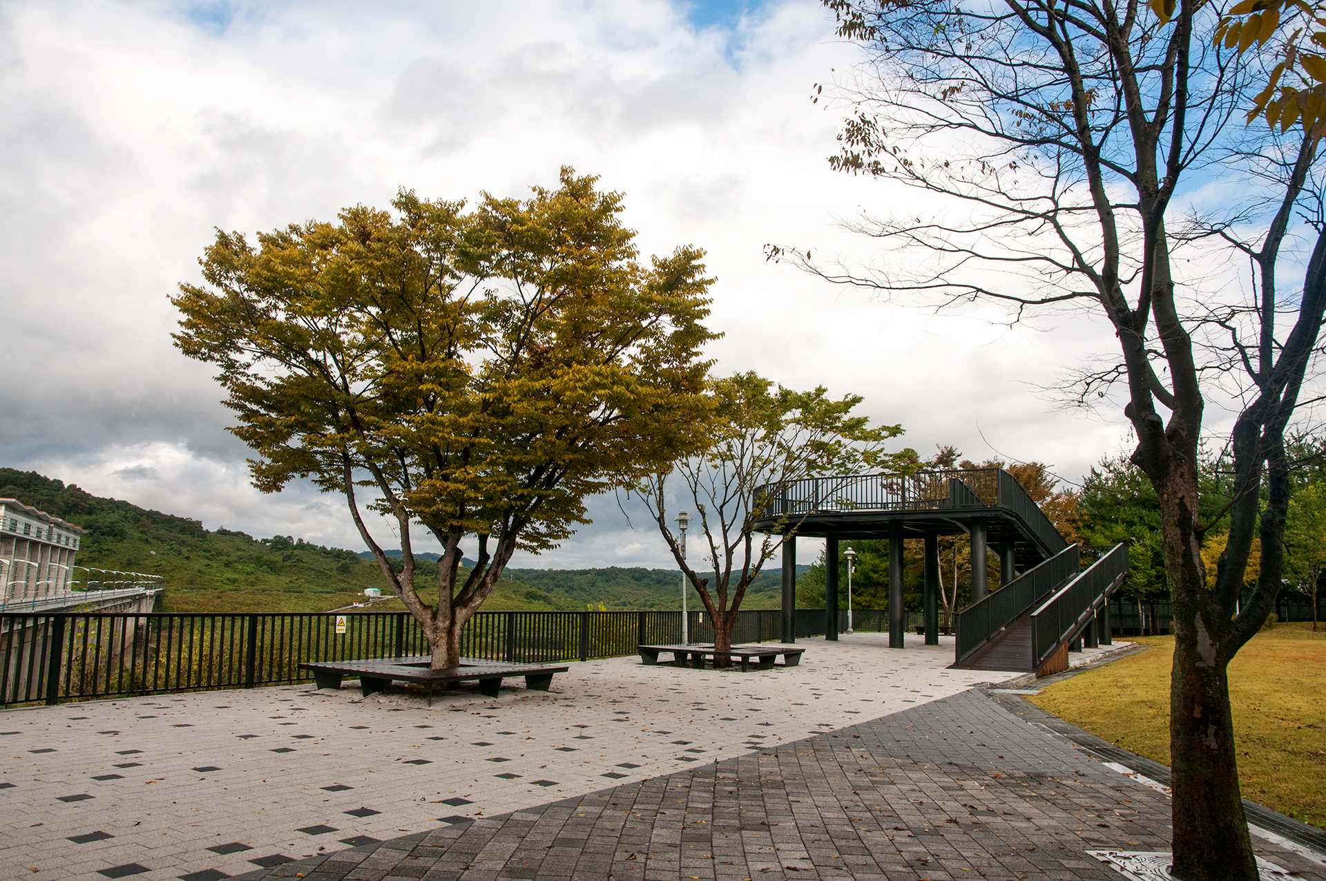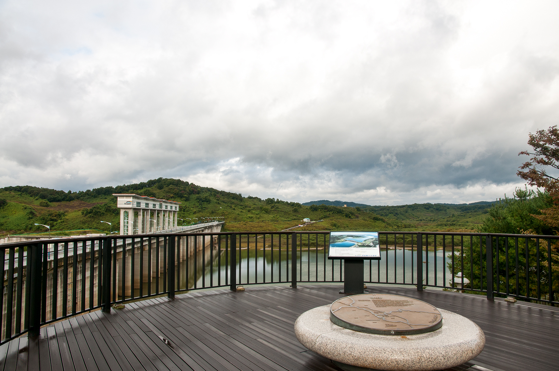 출발전 비가 내렸다 그쳤다를 반복할때 잠시 짬을 내 주변을 둘러보았다. 두루미 조형물 안쪽으로 군남댐을 조망할수 있는 전망대가 있어 올라가 본다.