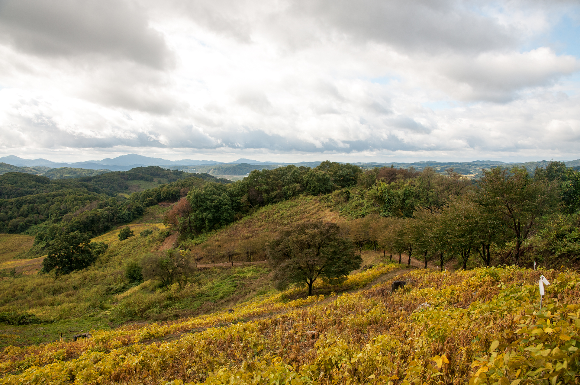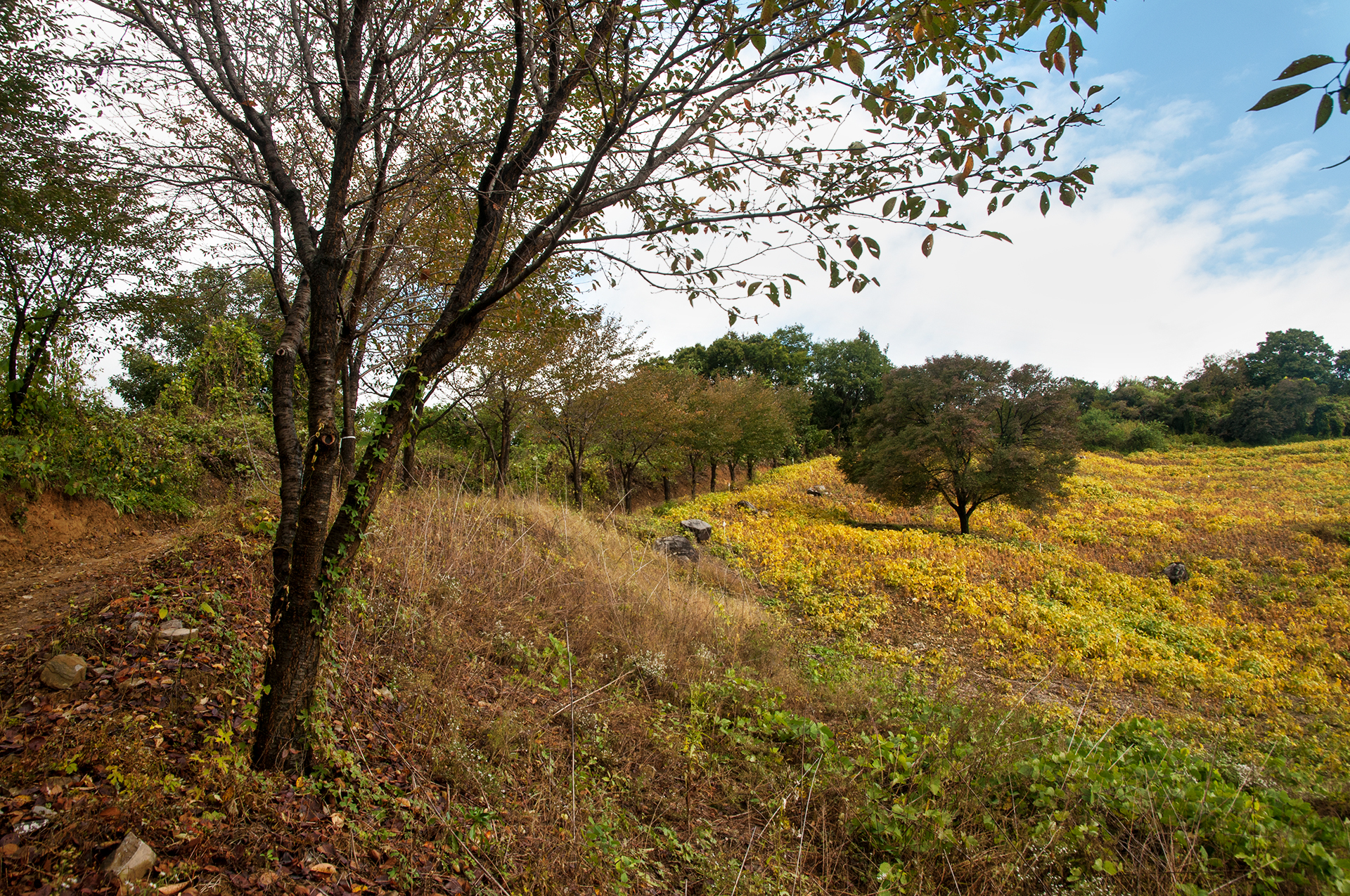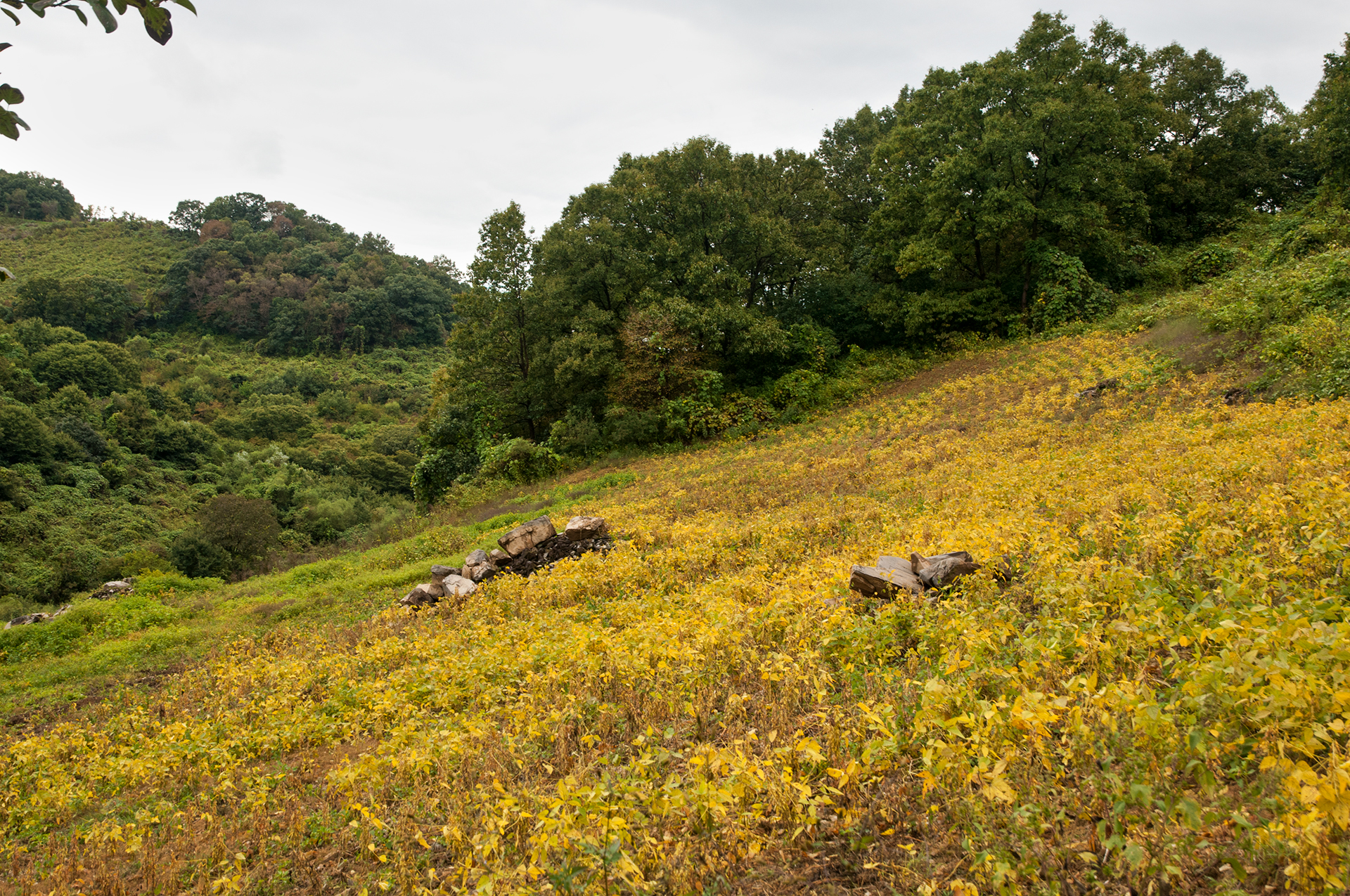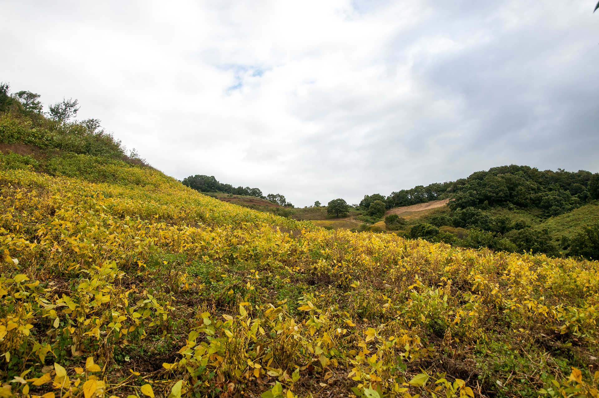 산비탈에도 콩밭이 개간되어 있다. 군데군데 저 돌무더기는 뭘까 궁금하기도 하고,,,