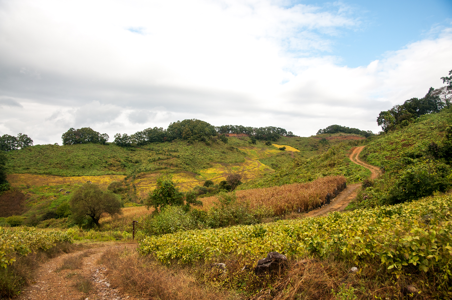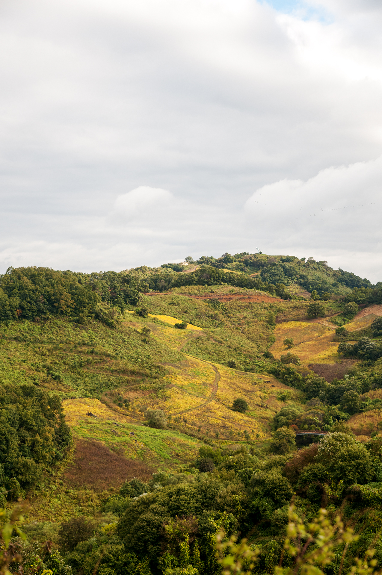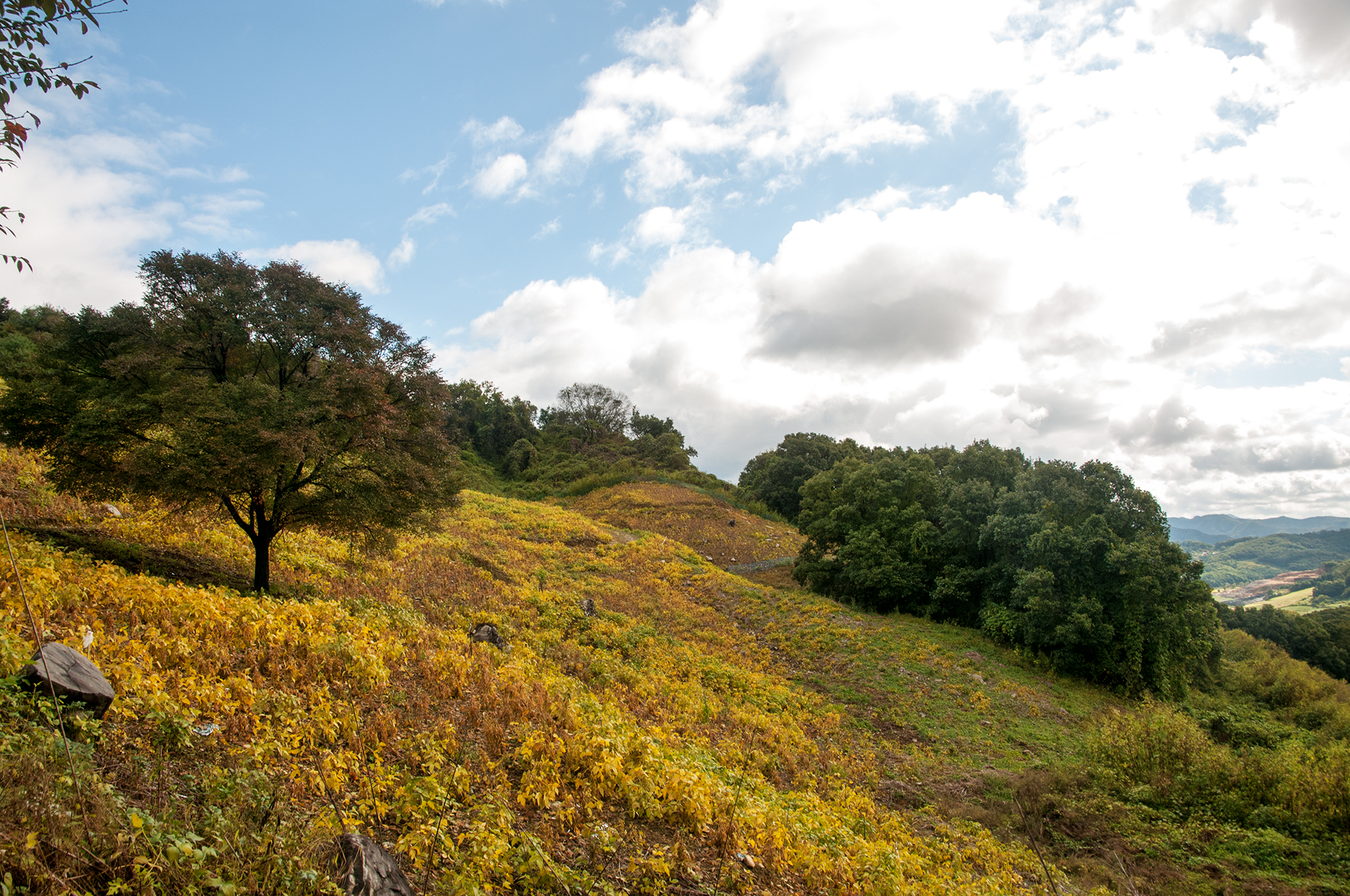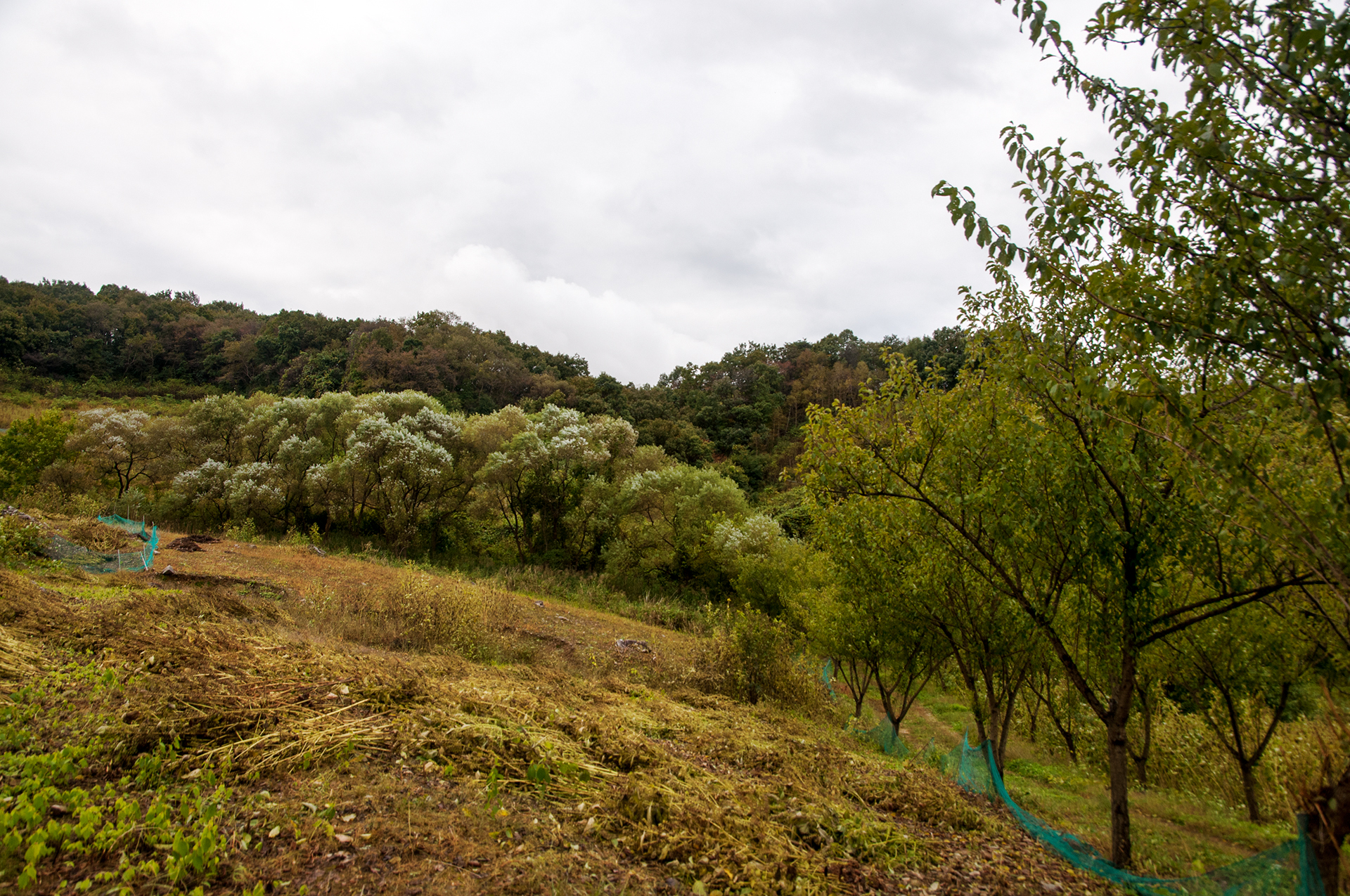 산비탈에도 콩밭이 개간되어 있다. 군데군데 저 돌무더기는 뭘까 궁금하기도 하고,,,