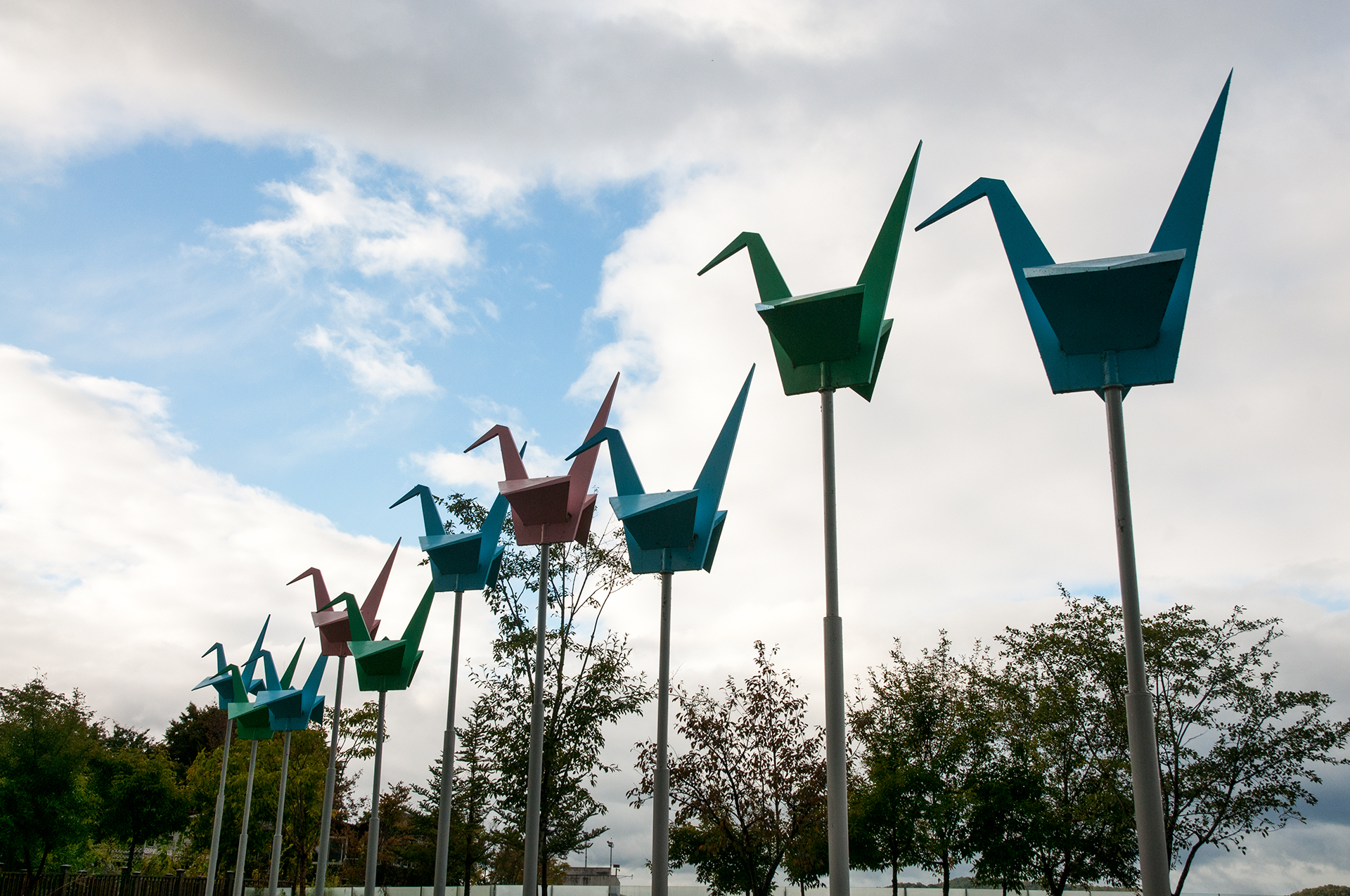 누구나 한번쯤은 종이로 접어봤을 종이학 조형물도 있다.