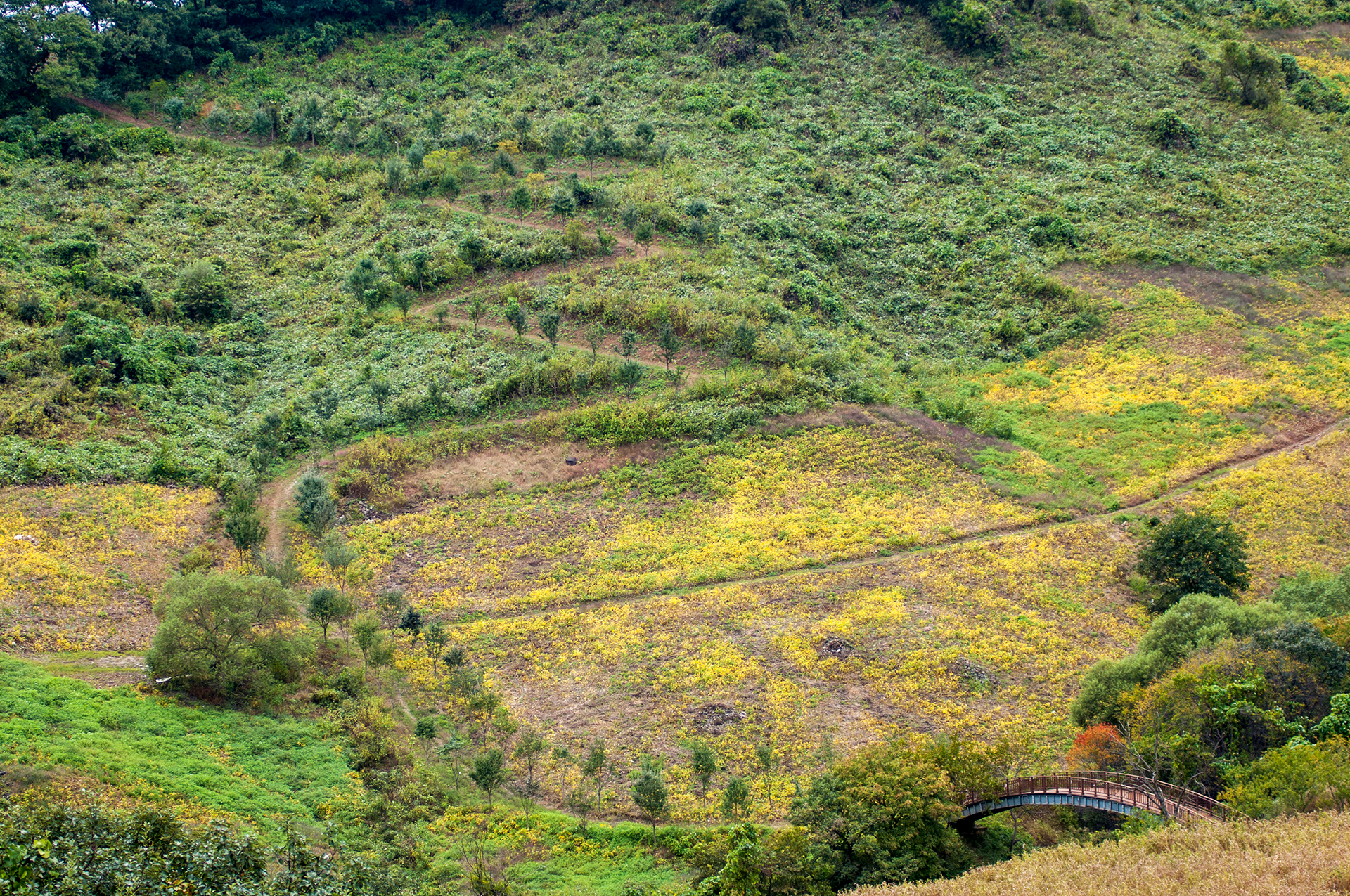 예쁜 구름다리를 지나 지그재그로 올라가는 길도 여느 농촌의 풍경 그대로 평화로워 보이며 아름답다.