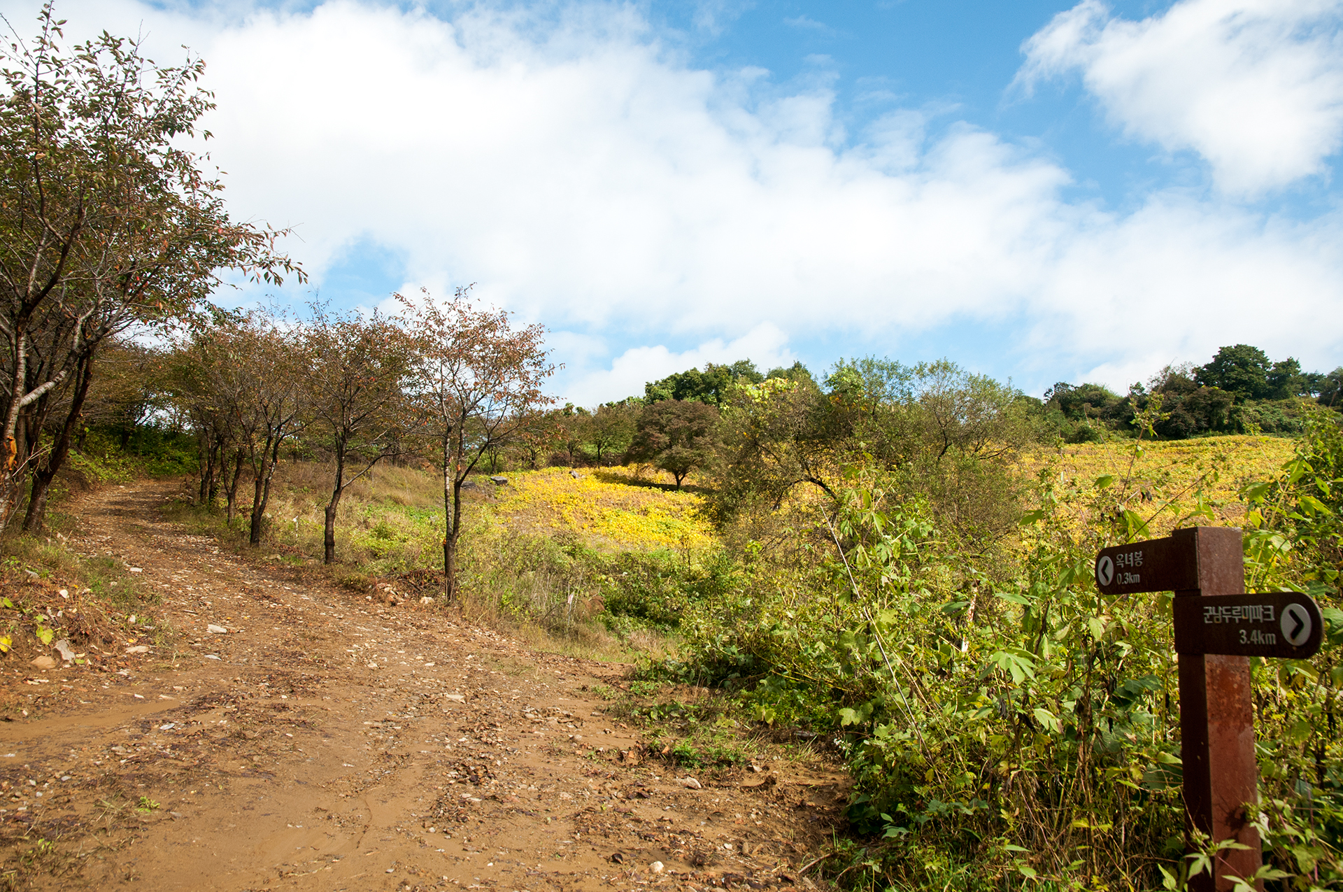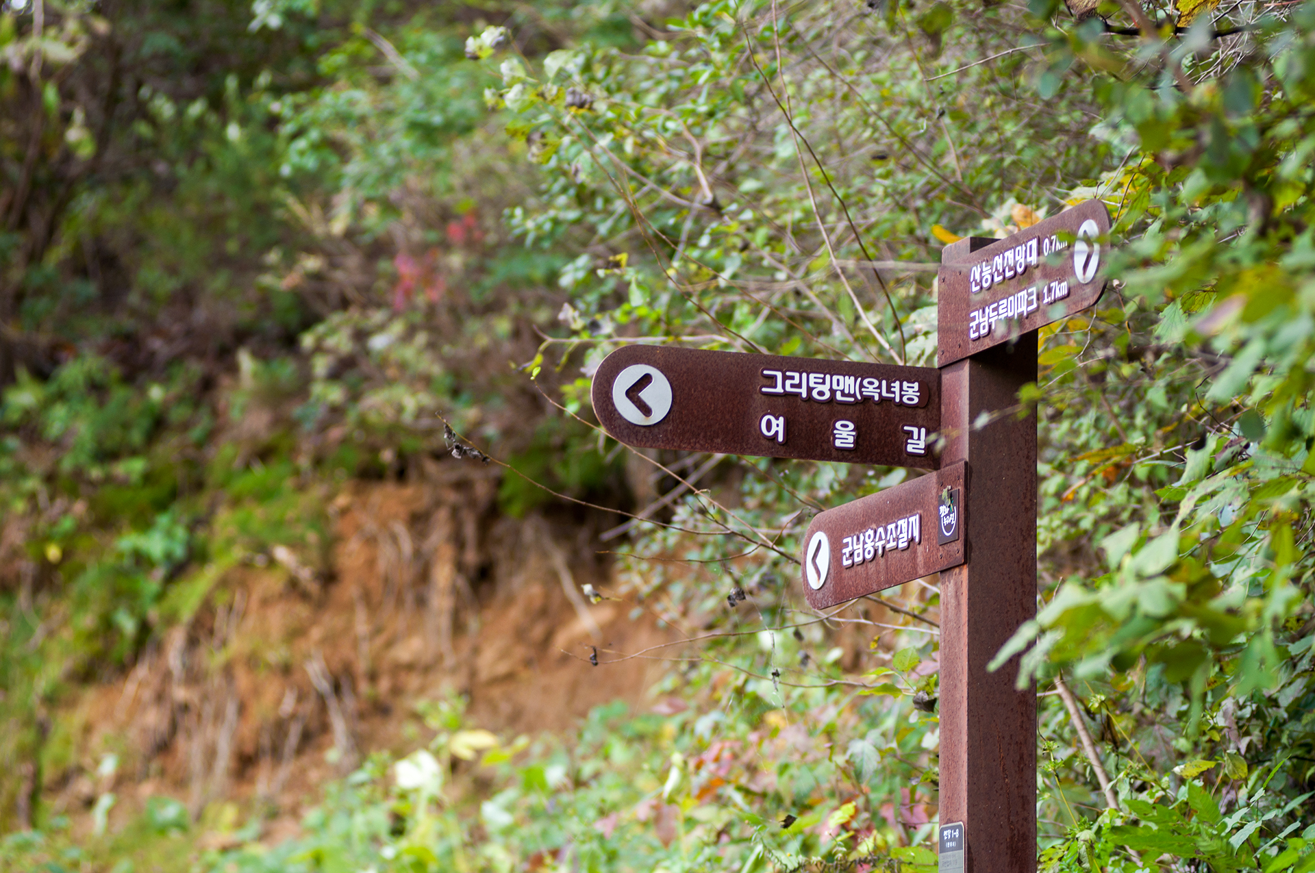 이정표가 잘되어 있어 처음부터 옥녀봉이나 그리팅맨 이정표를 따라가기만 하면 된다.