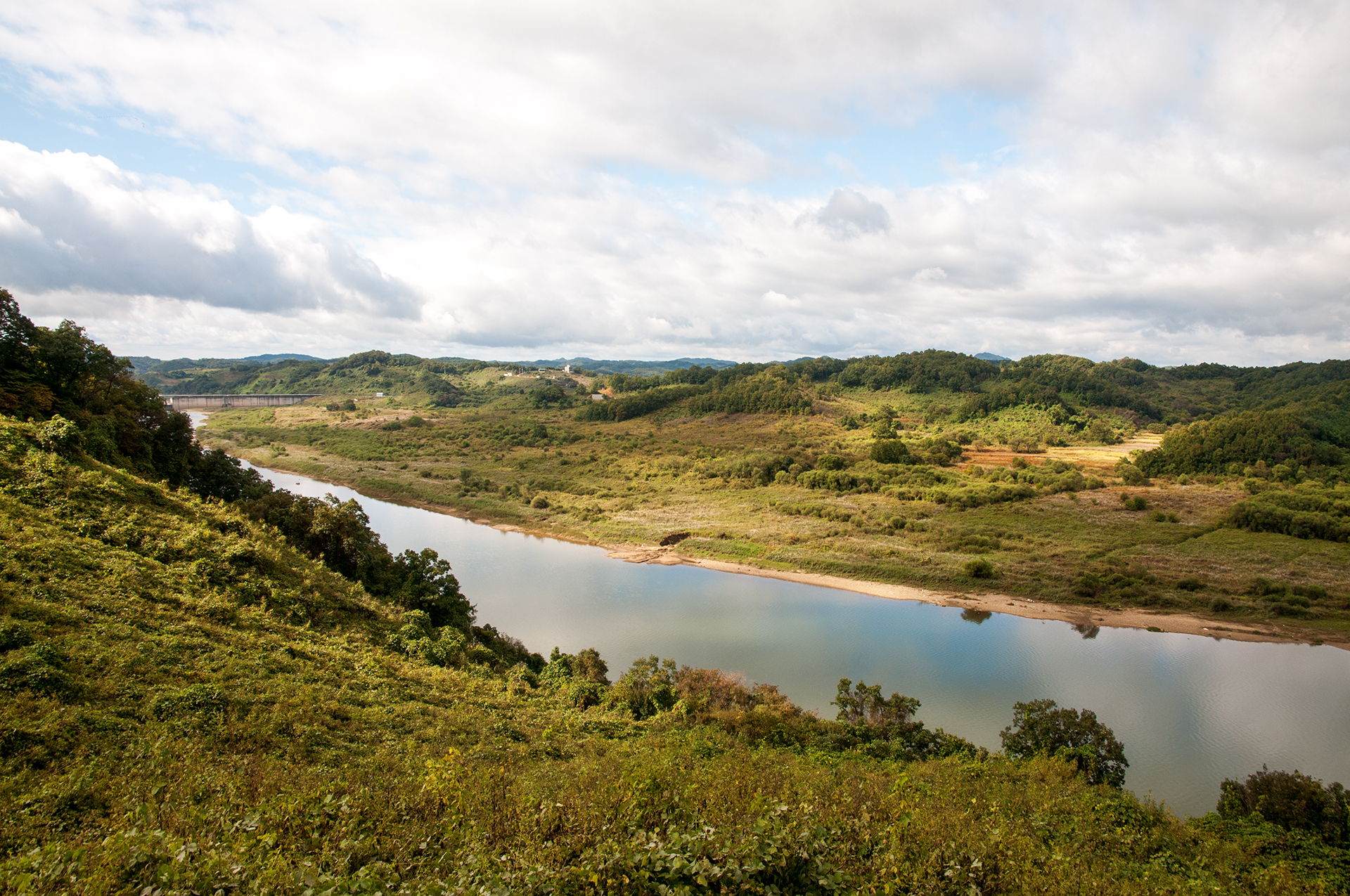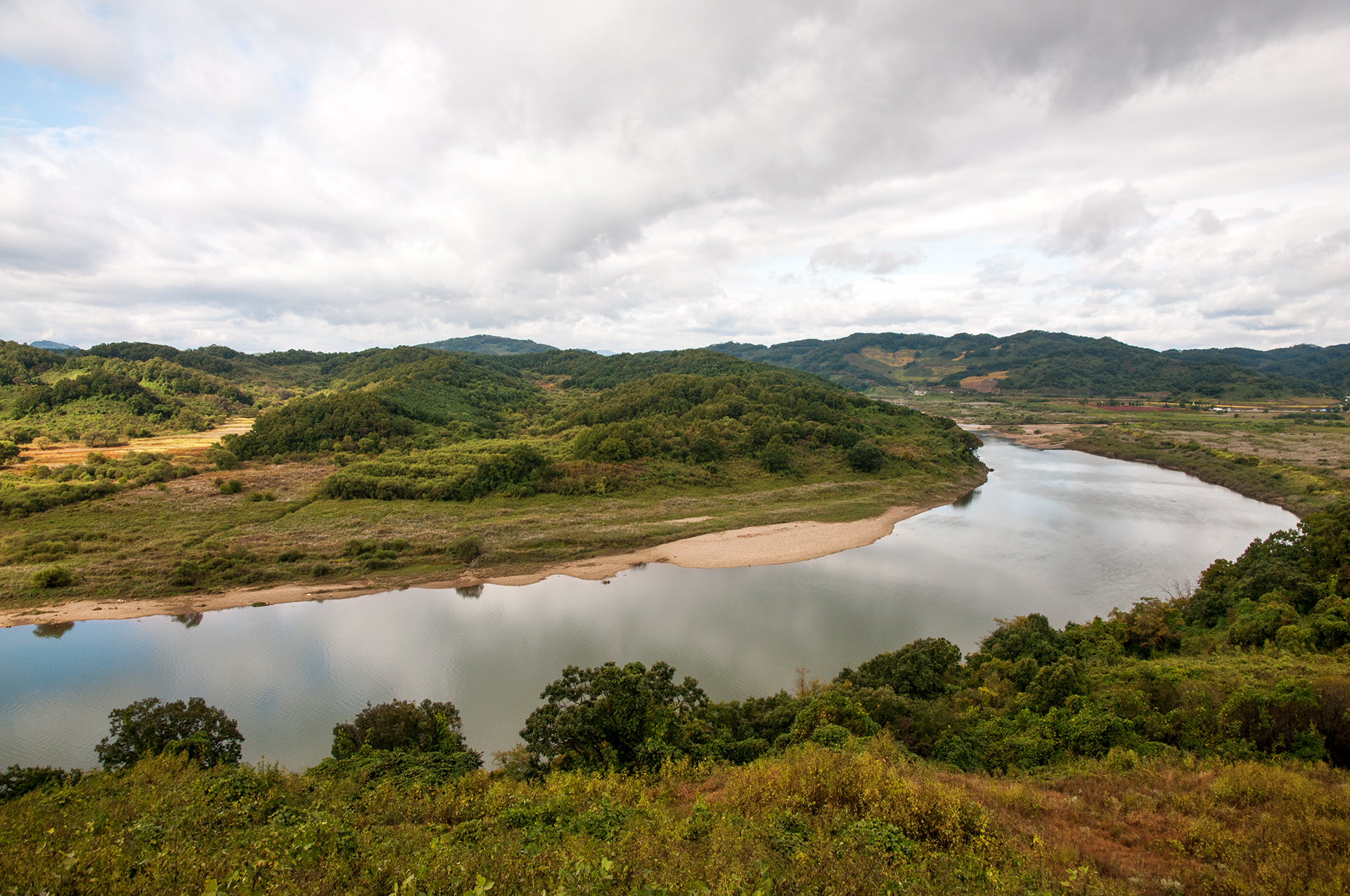 크게 휘돌아가는 임진강과 개안마루의 풍경,
