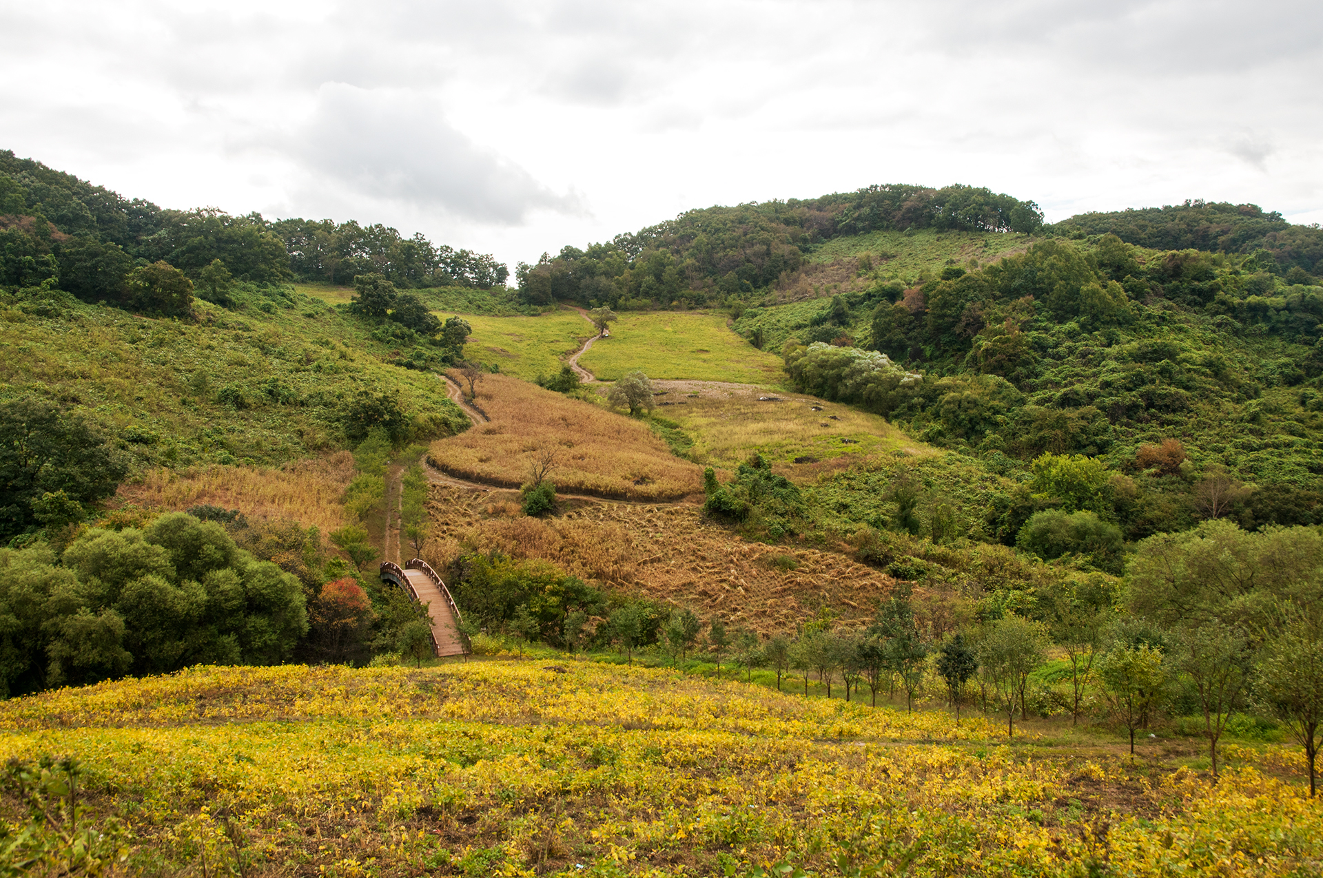 두루미테마파크 - 산능선전망대 - 여울길 - 개안마루 - 그리팅맨(옥녀봉) - 현무암지대 - 개안마루 - 두루미테마파크 (거리 8.7km)