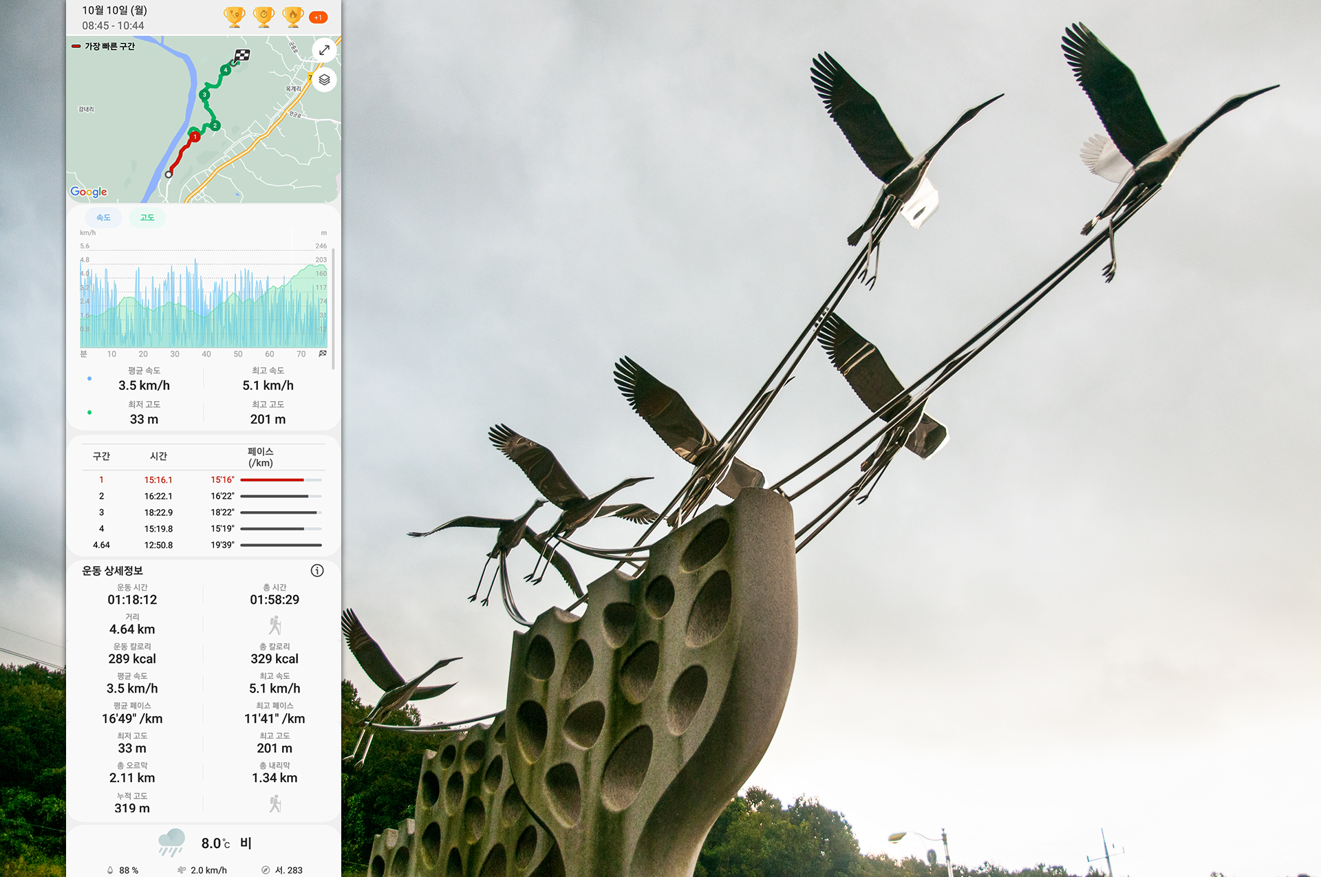 * 운동정보를 보니 실제 걸은 거리는 옥녀봉까지 편도 4.64km로 1시간58분 소요 (휴식, 촬영시간 포함)