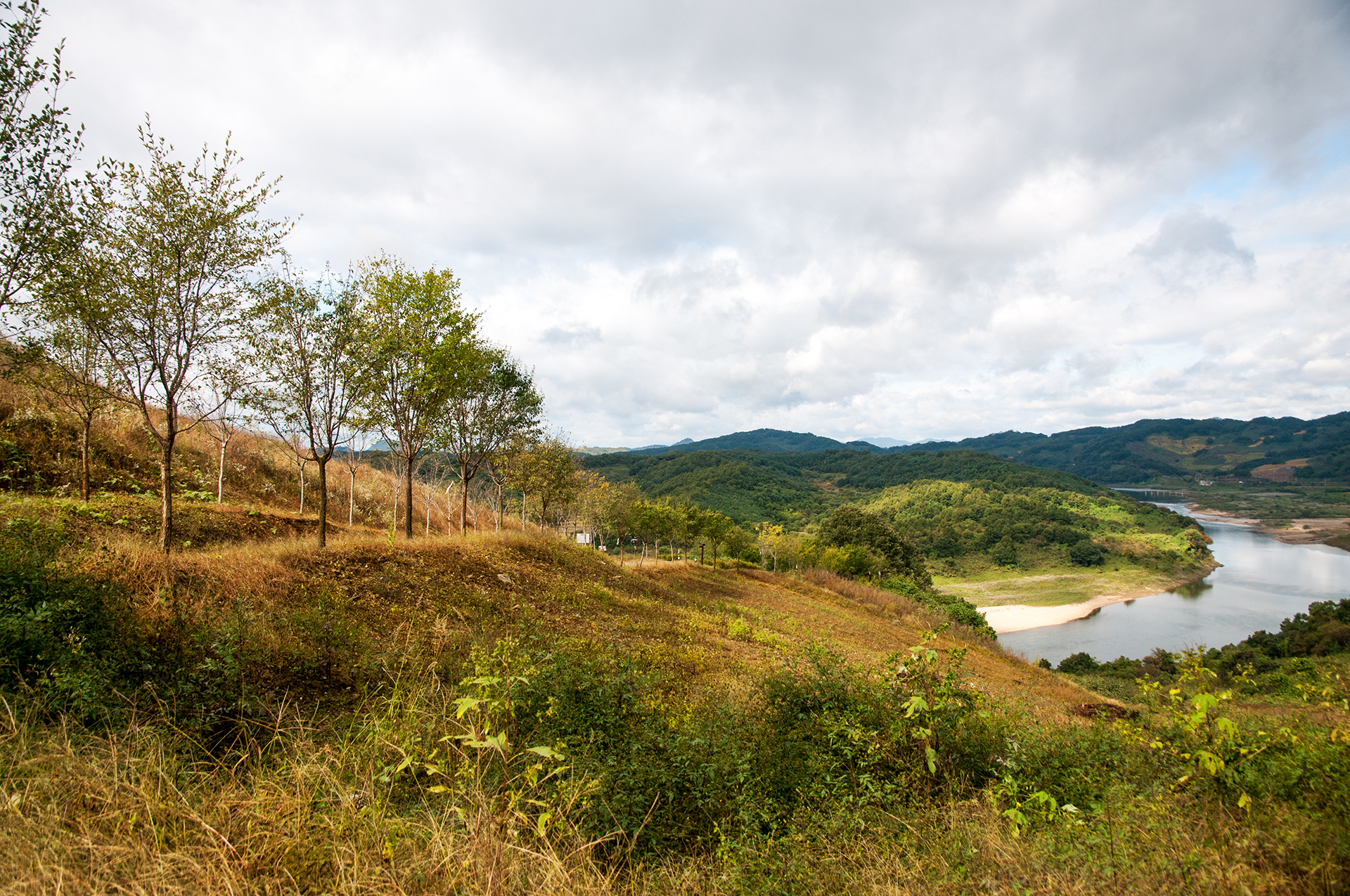 이 풍경을 보기 위해서는 애써 올라온 산을 다시 길을 따라 내려가게 된다. 어느새 하늘은 많이 맑아졌고, 강물은 유리처럼 잔잔하기만 하다.