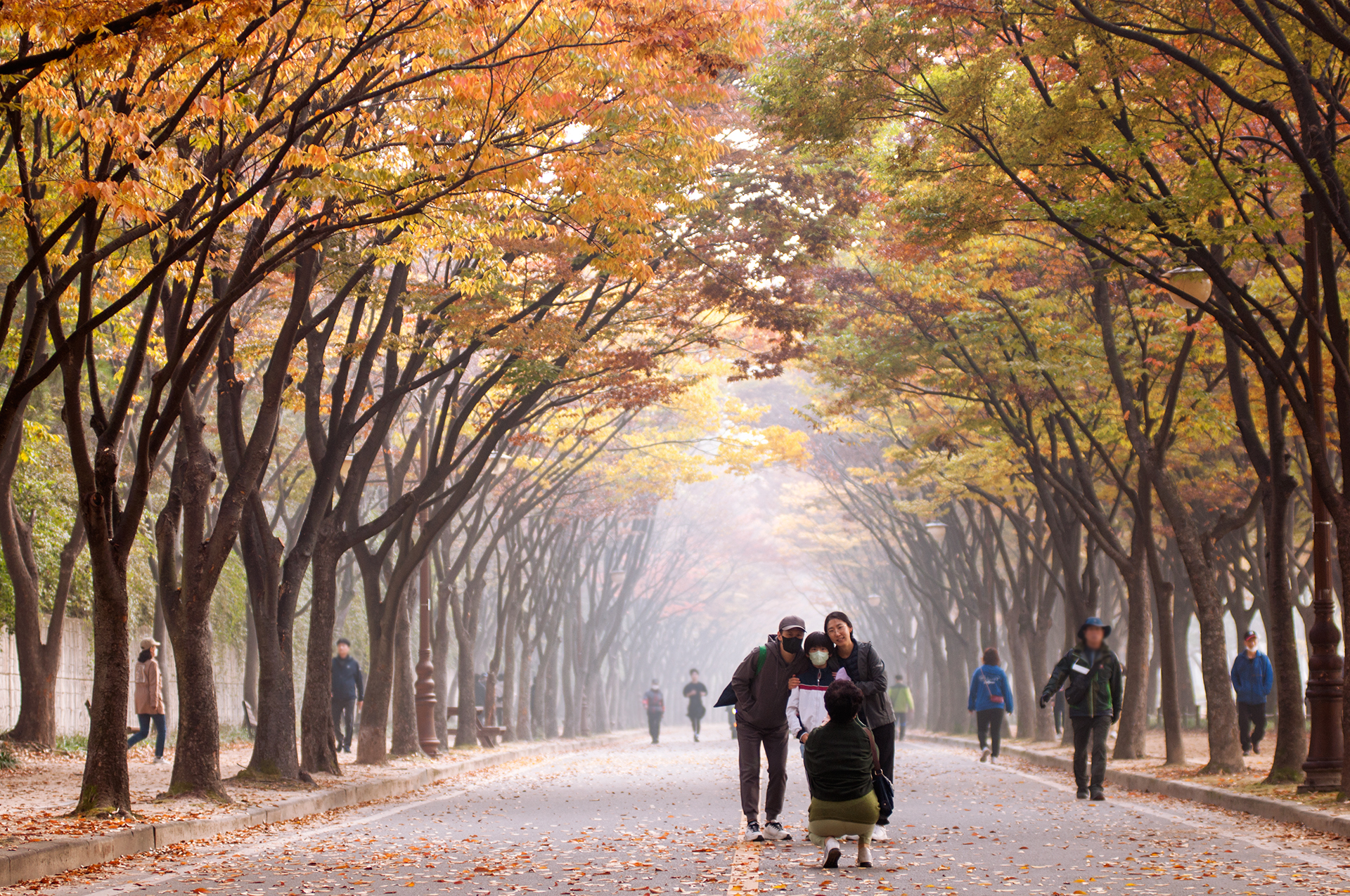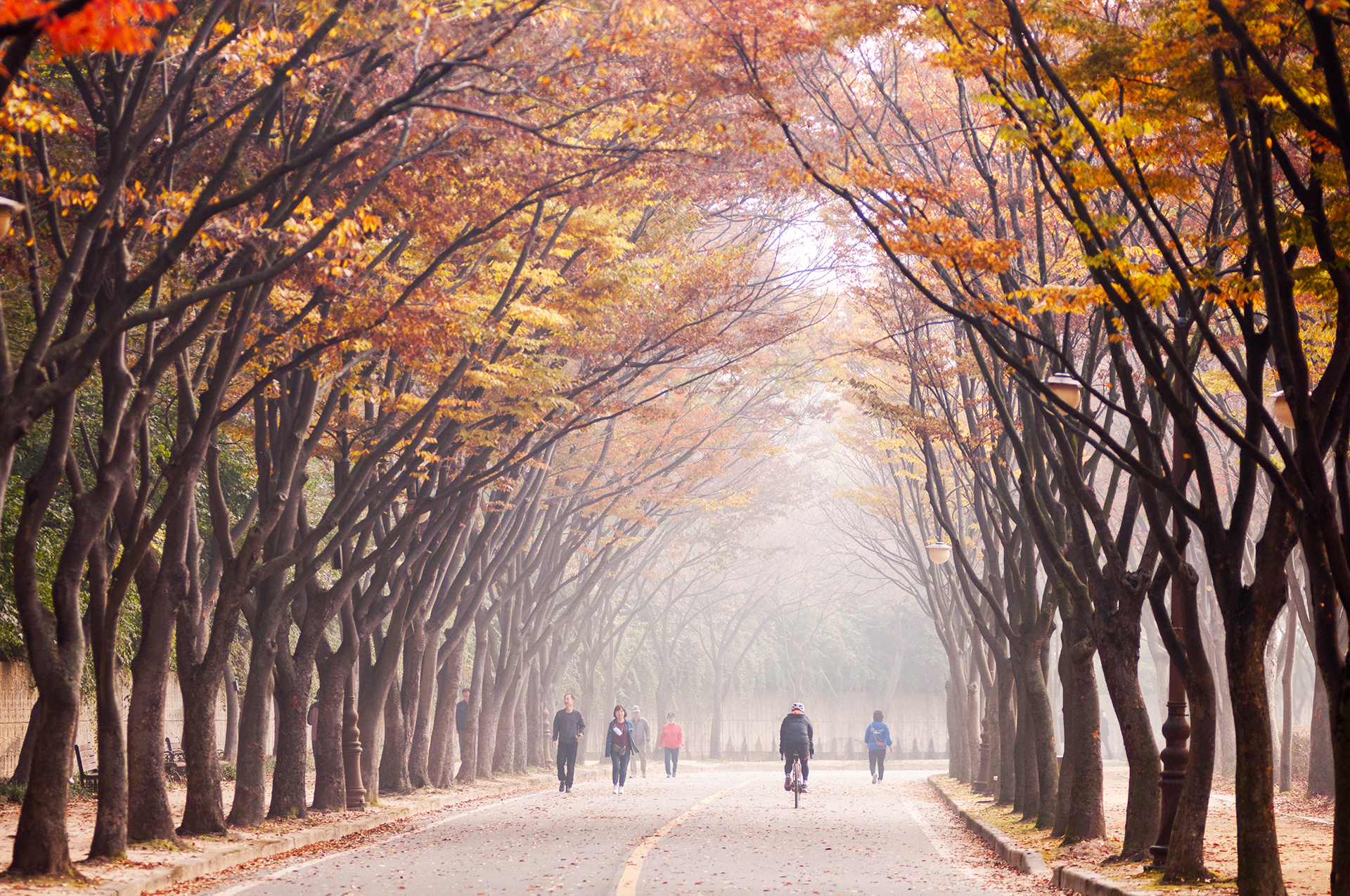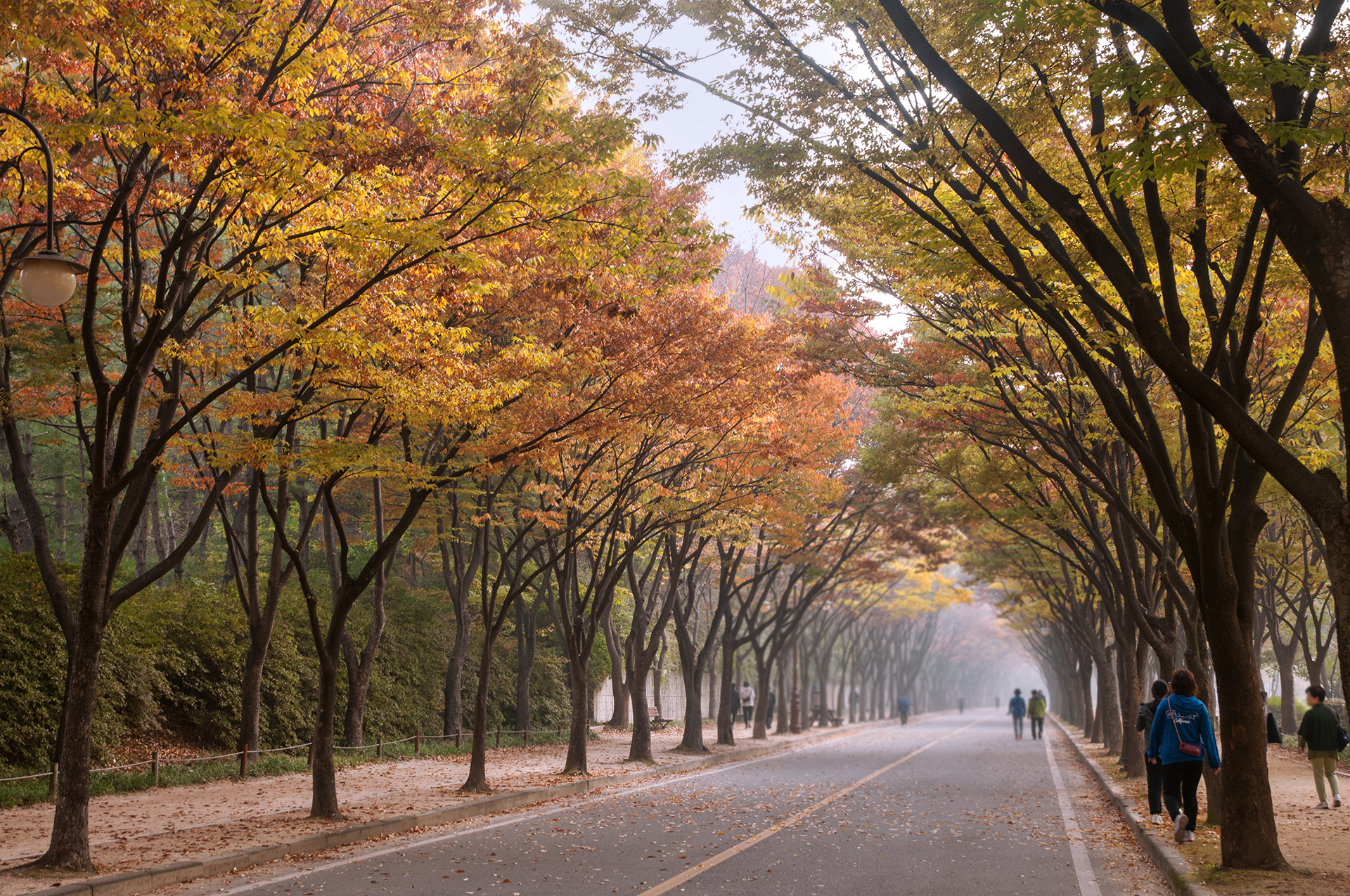 느티나무길은 인천 단풍 최고의 명소로 불릴만큼 유명한 곳이다.