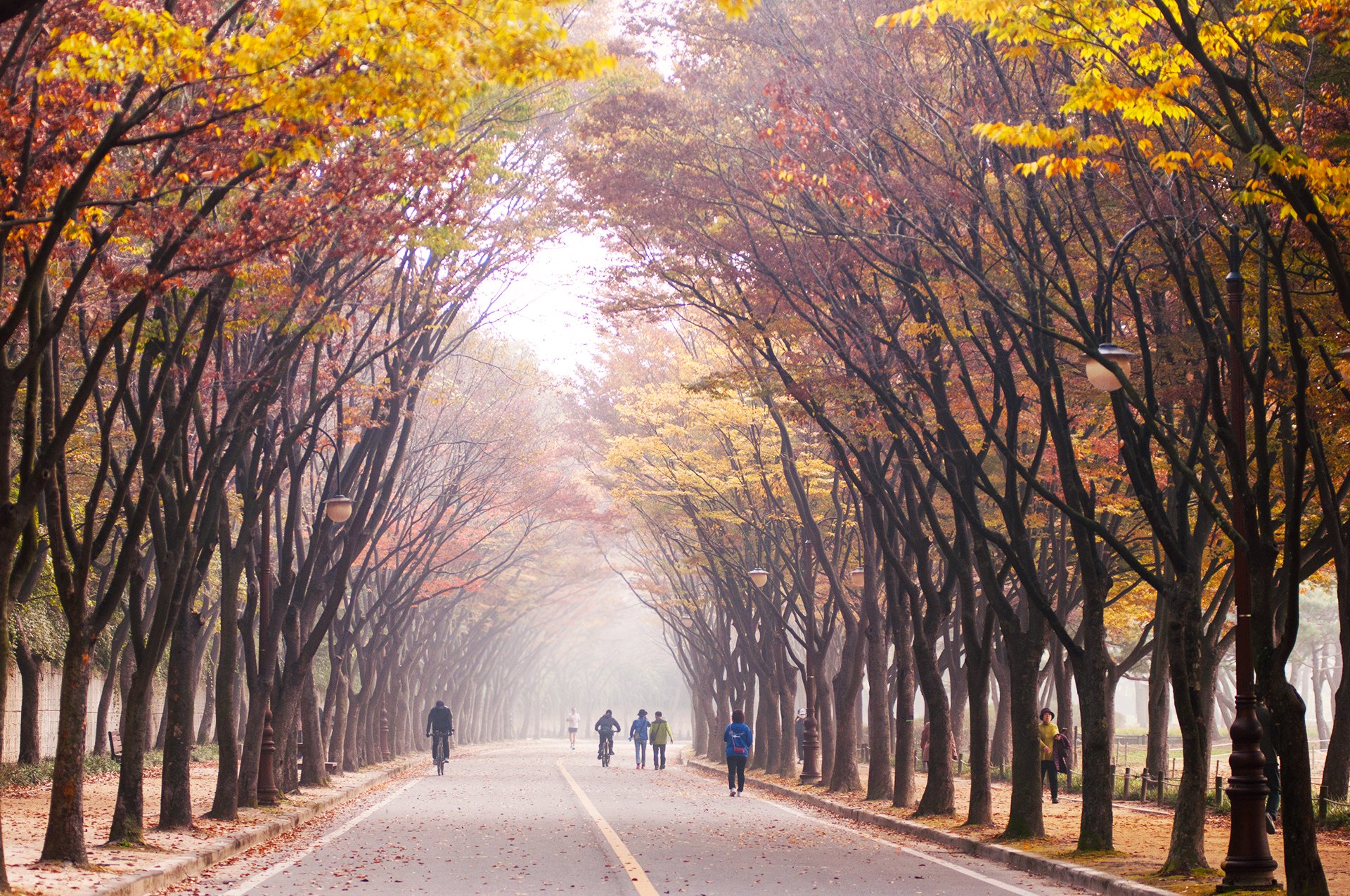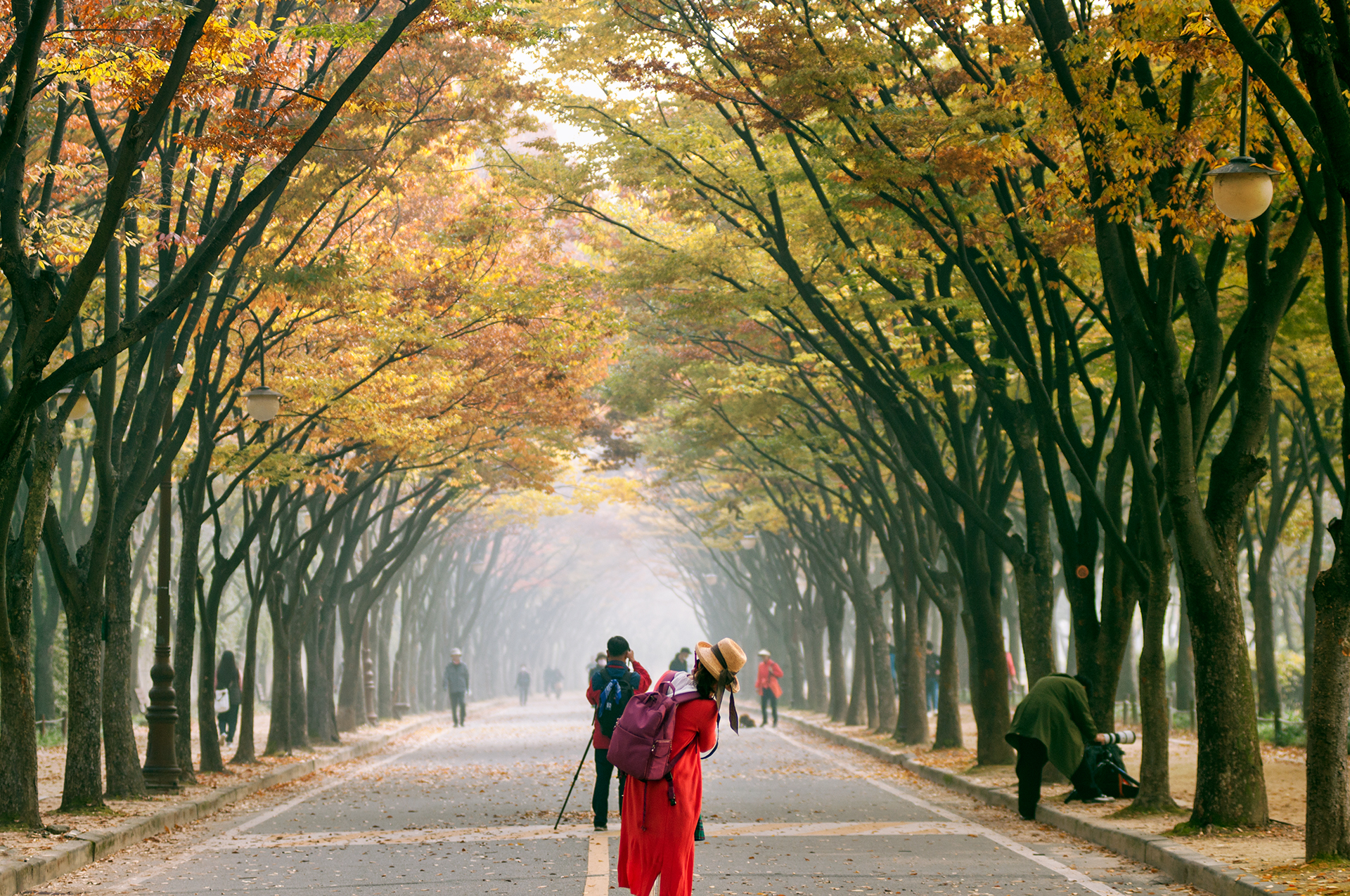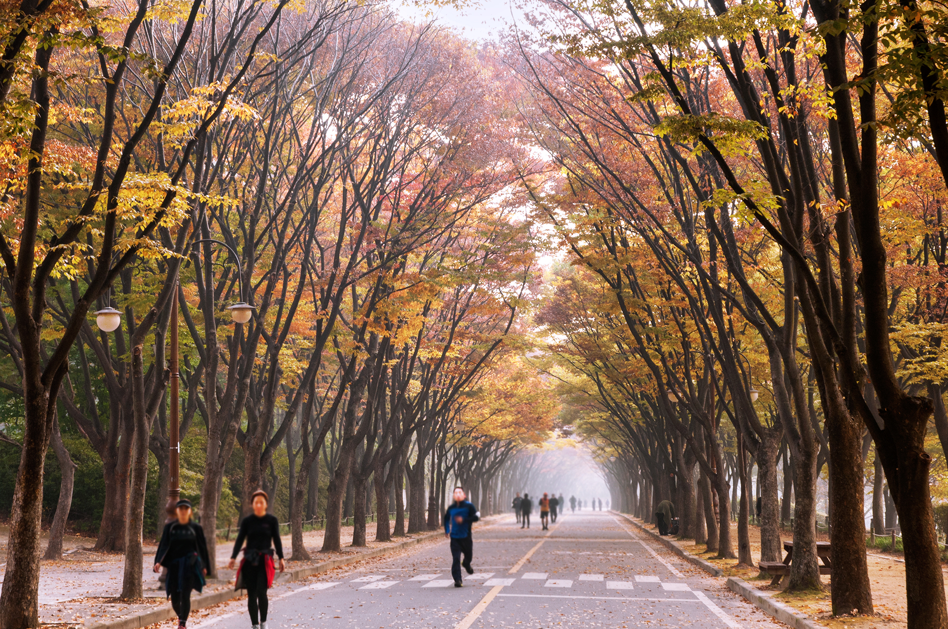 느티나무길은 인천 단풍 최고의 명소로 불릴만큼 유명한 곳이다.