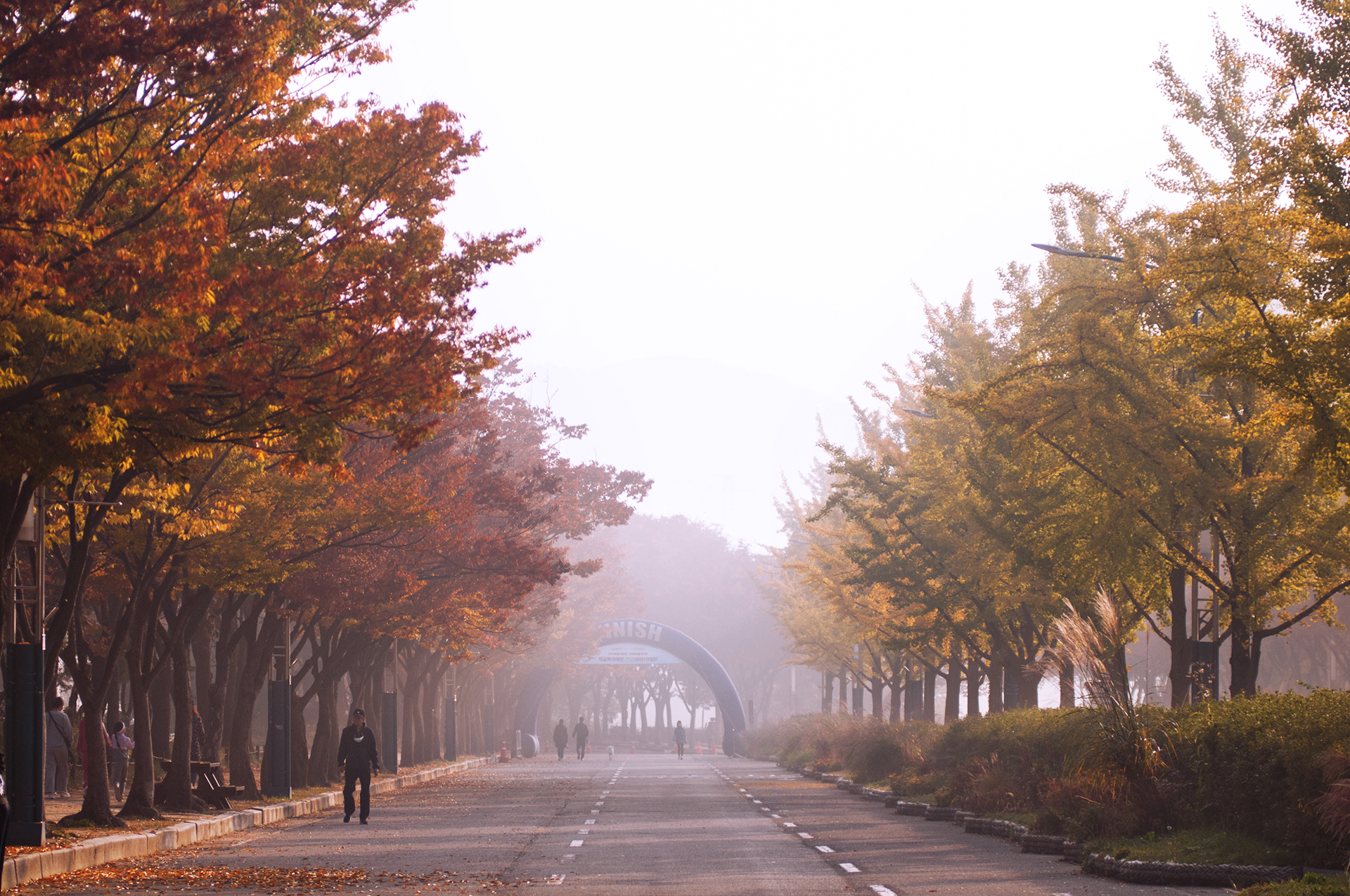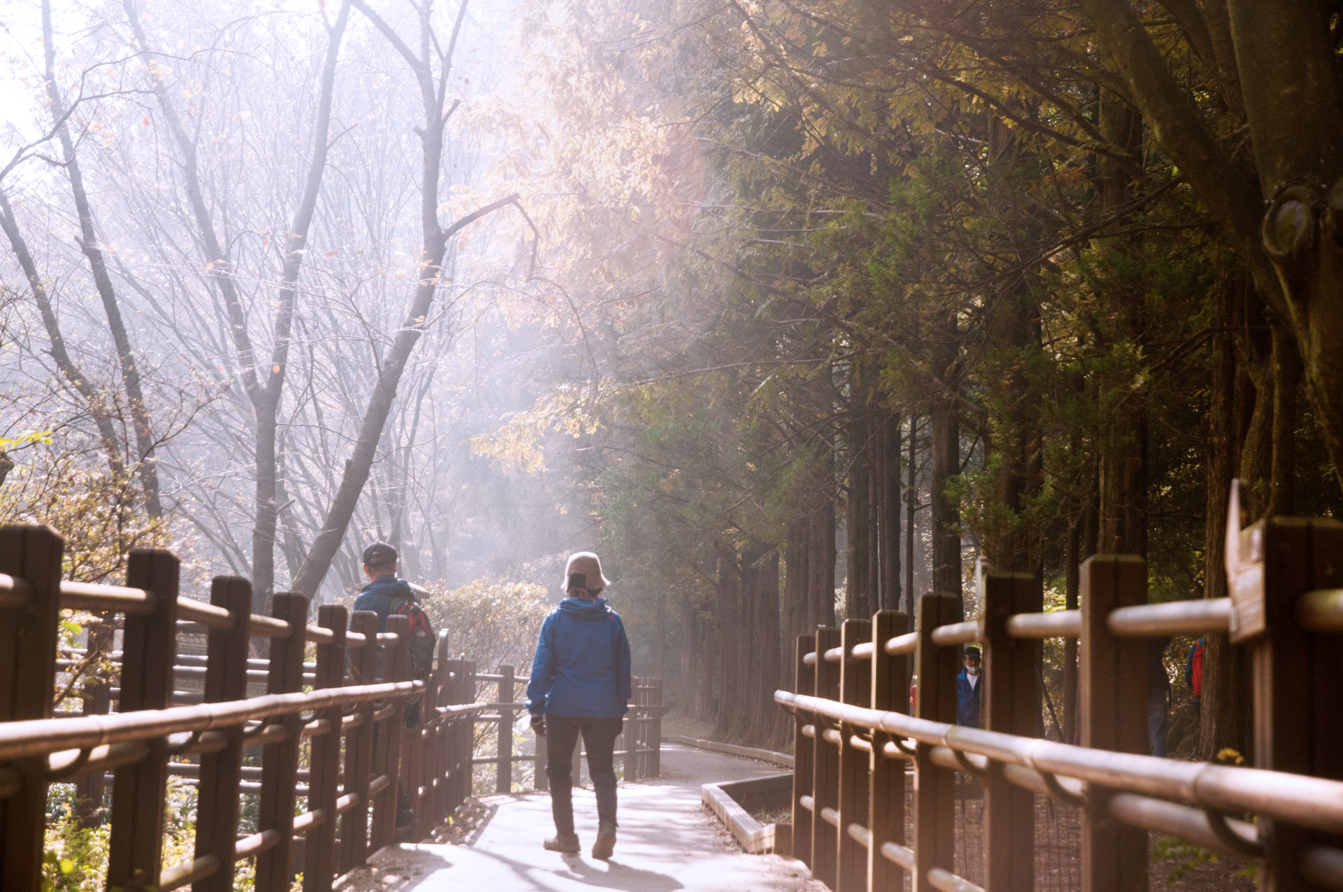 거기에 안개까지 합쳐지니 신비감마저 더해지고, 어느 계절이나 걷기 좋은 아침 산책길인건 분명하다.