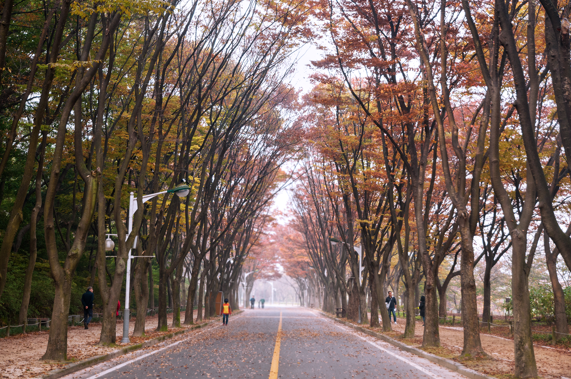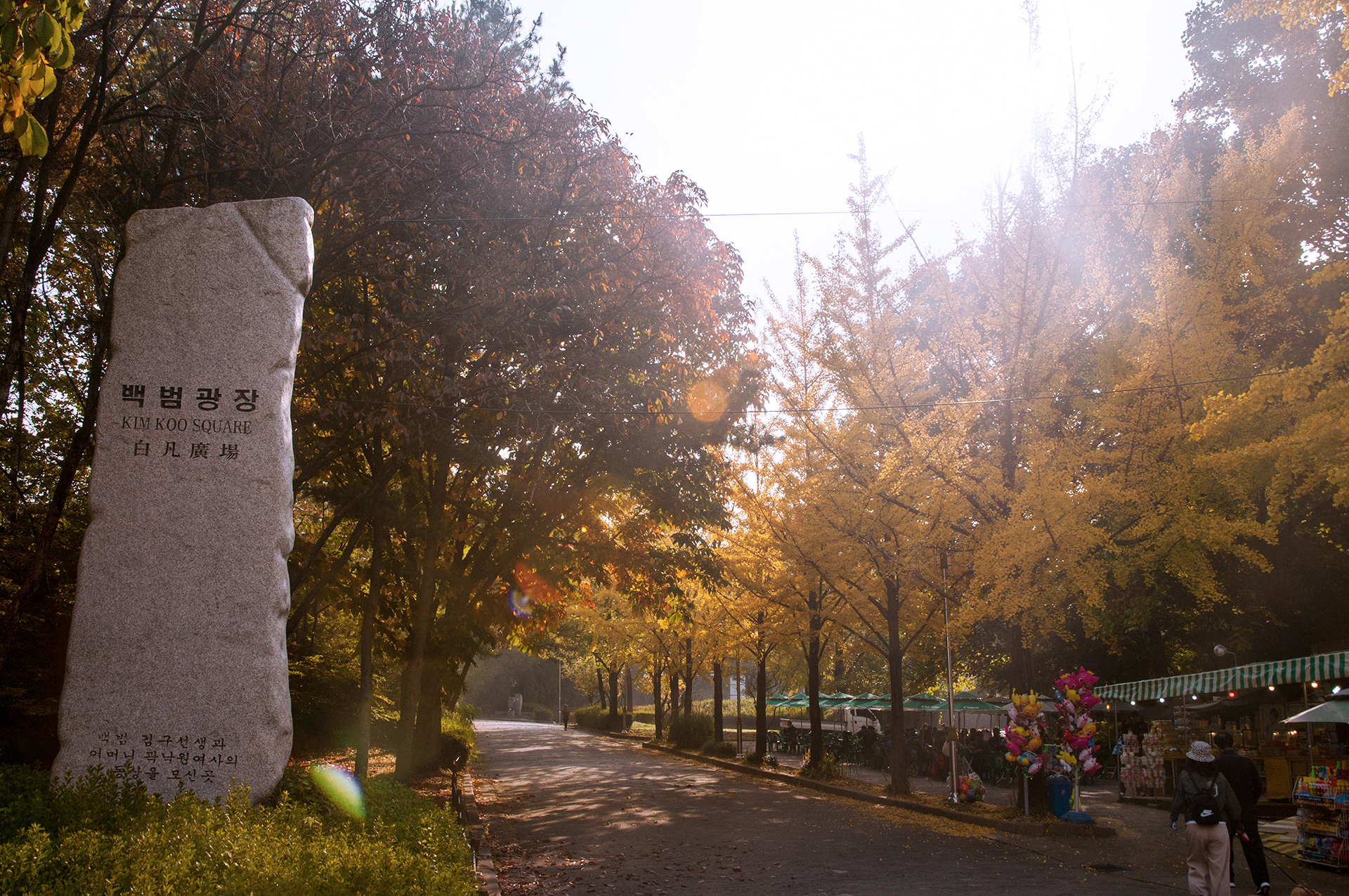 백범광장 부근의 메타세콰이어길 풍경을 보기 위해 이동하는 중.