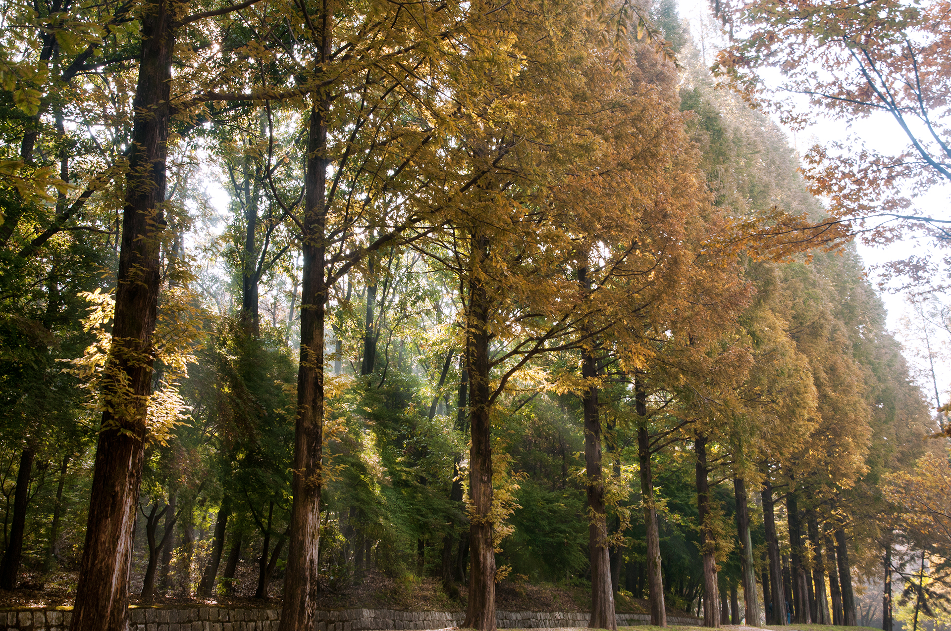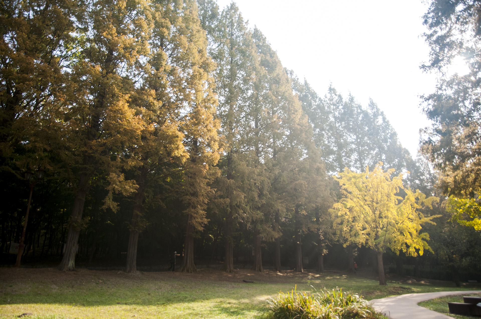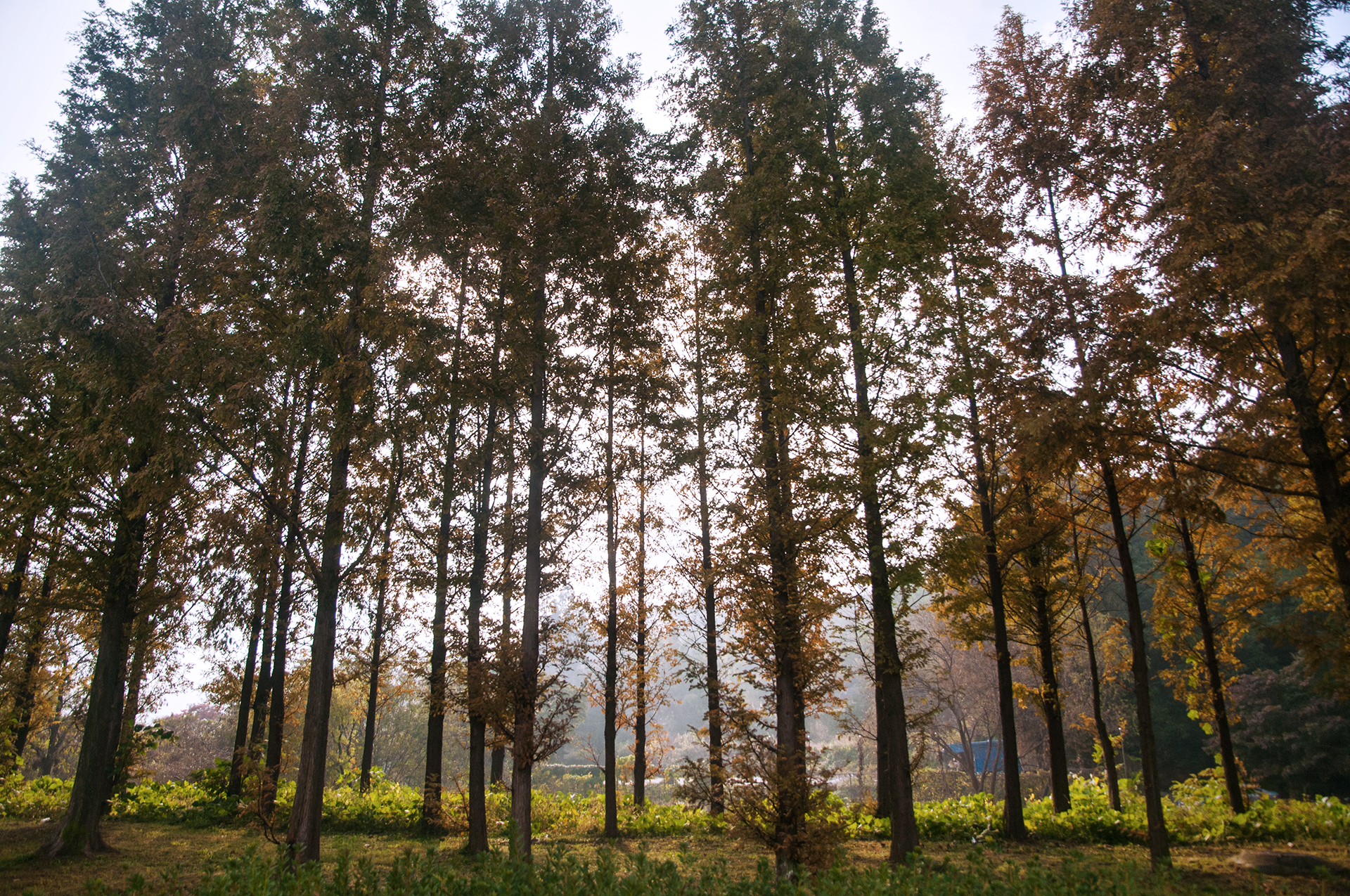어울정원 뒷쪽 메타세콰이어도 아직 물이 제대로 들지는 않았다.
