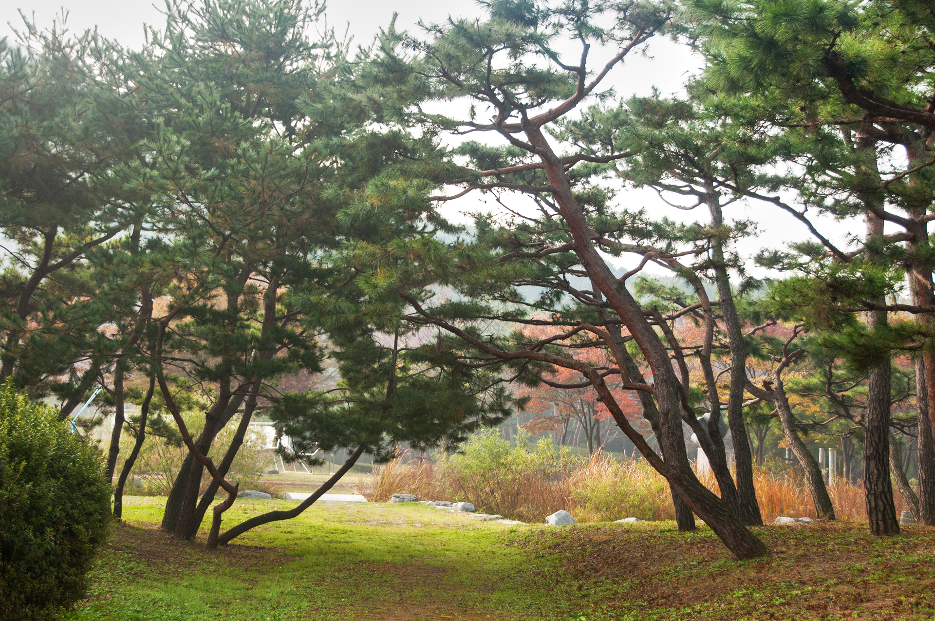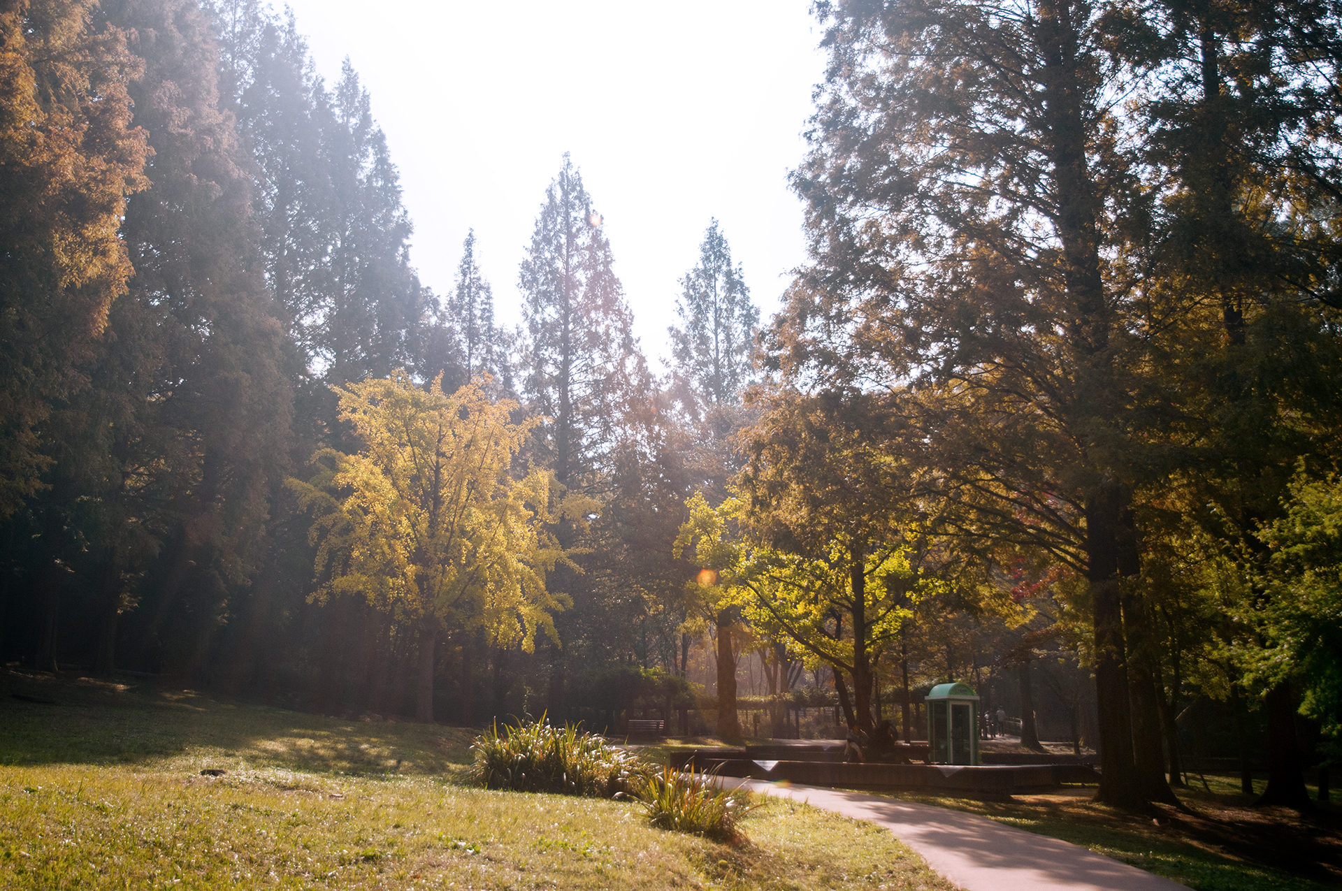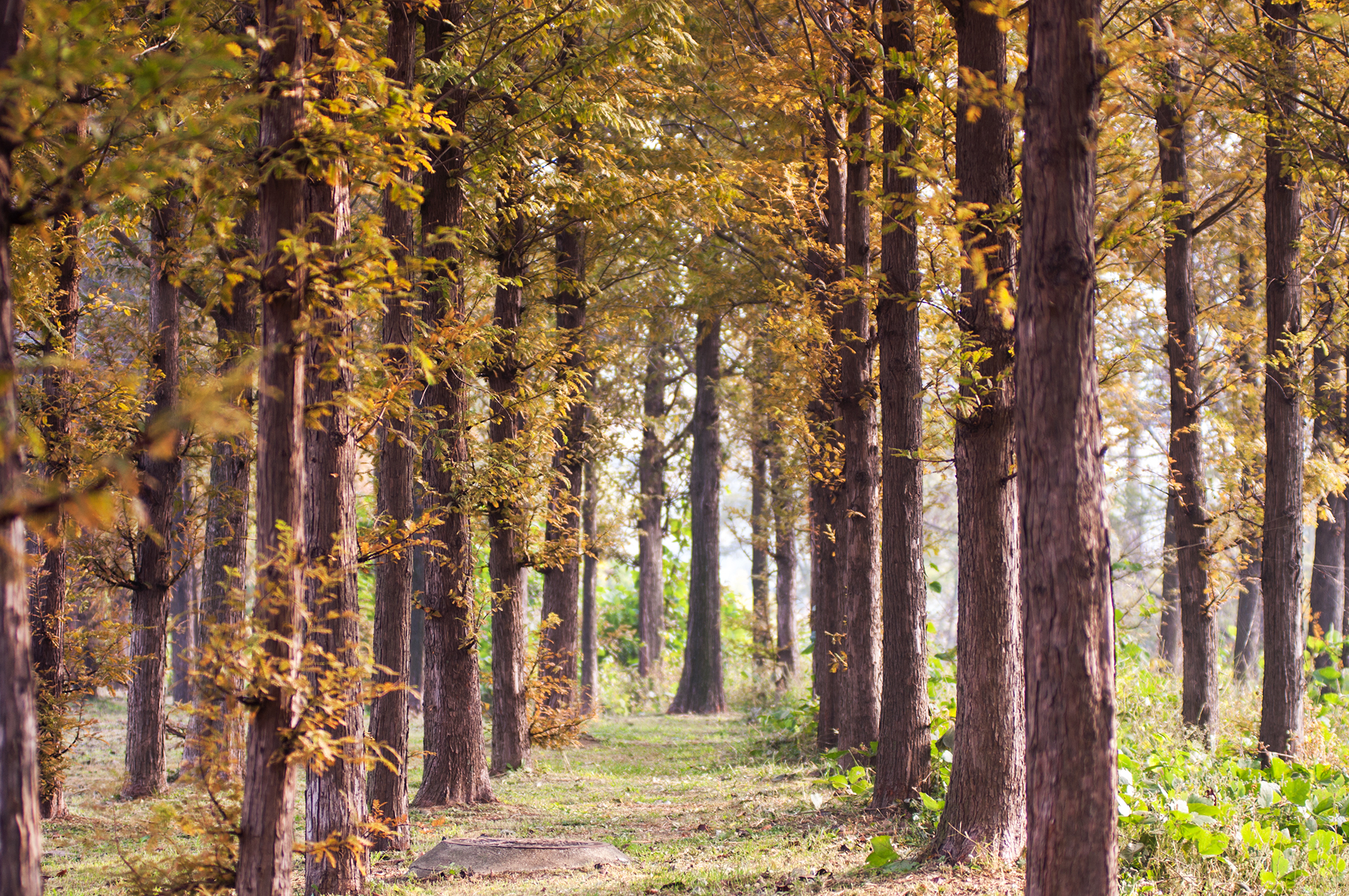 어울정원 뒷쪽 메타세콰이어도 아직 물이 제대로 들지는 않았다.