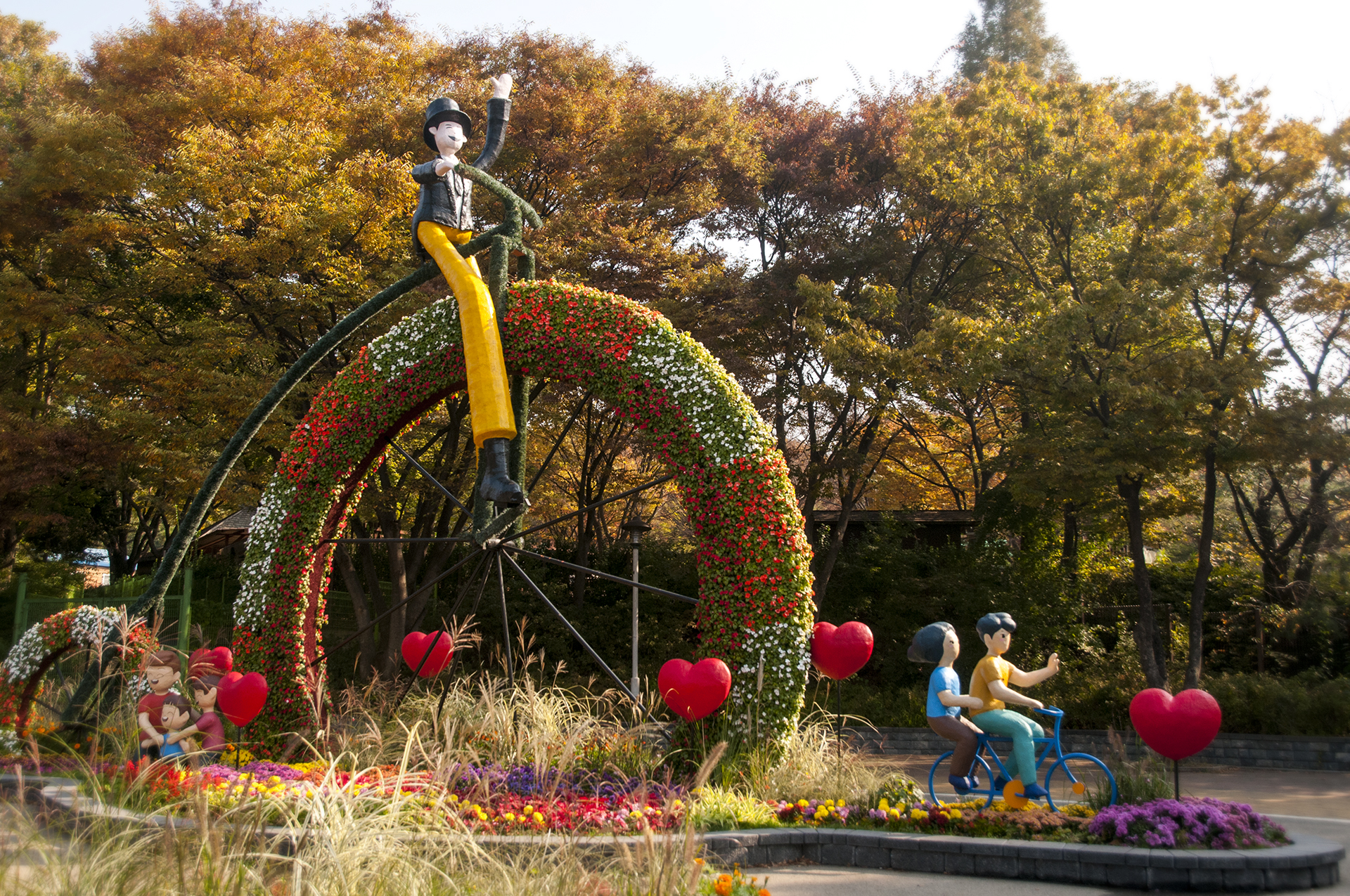 국화와 가을꽃 만송이로 만들어진 키다리 아저씨는 이달 말까지 전시된다고 한다.