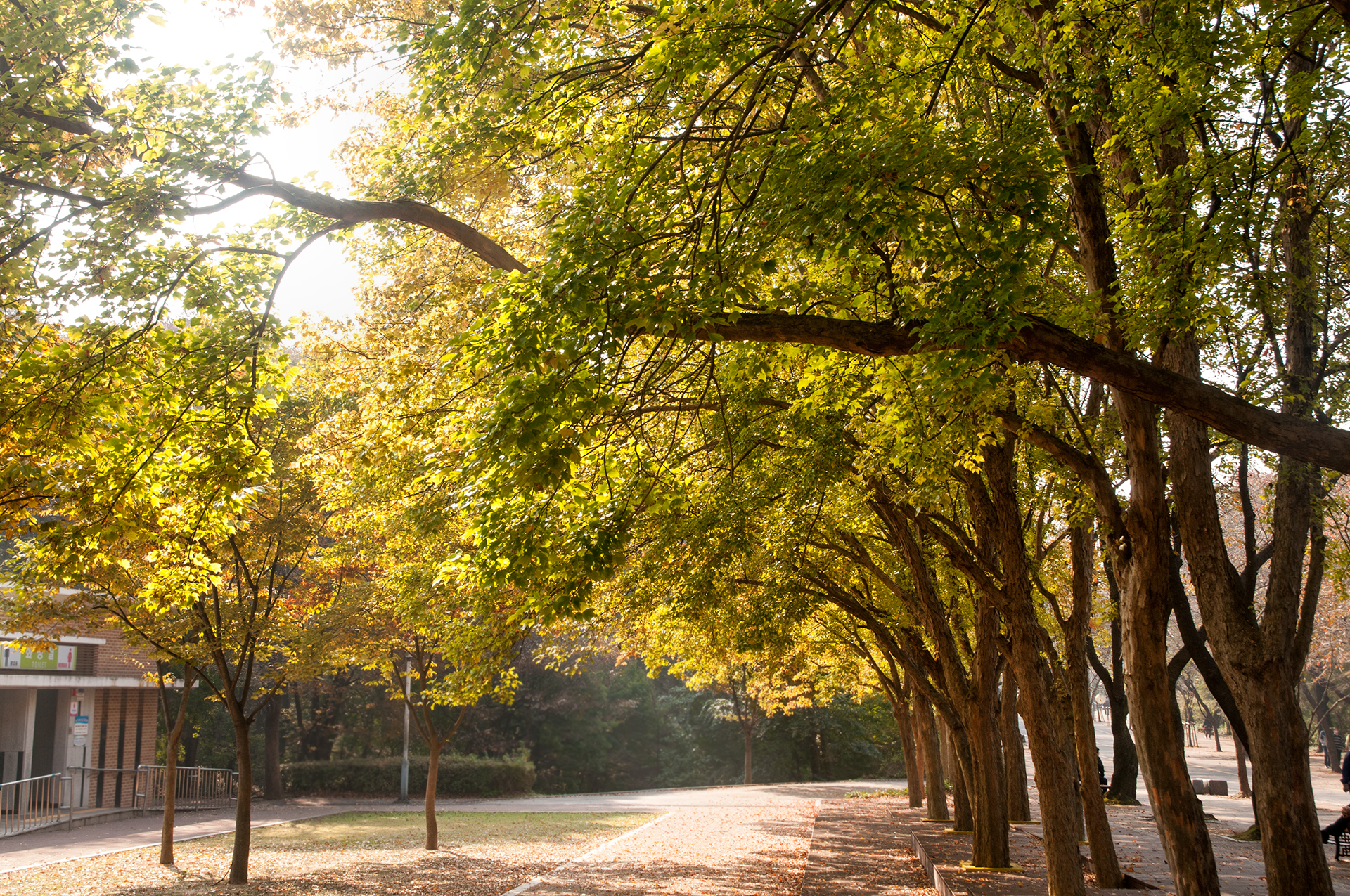 단풍이 절정을 보이는 것도 있고, 이미 낙엽으로 다 떨구고 앙상한 가지만 남은 것도 있고, 아직 초록초록한 나무들도 있다.