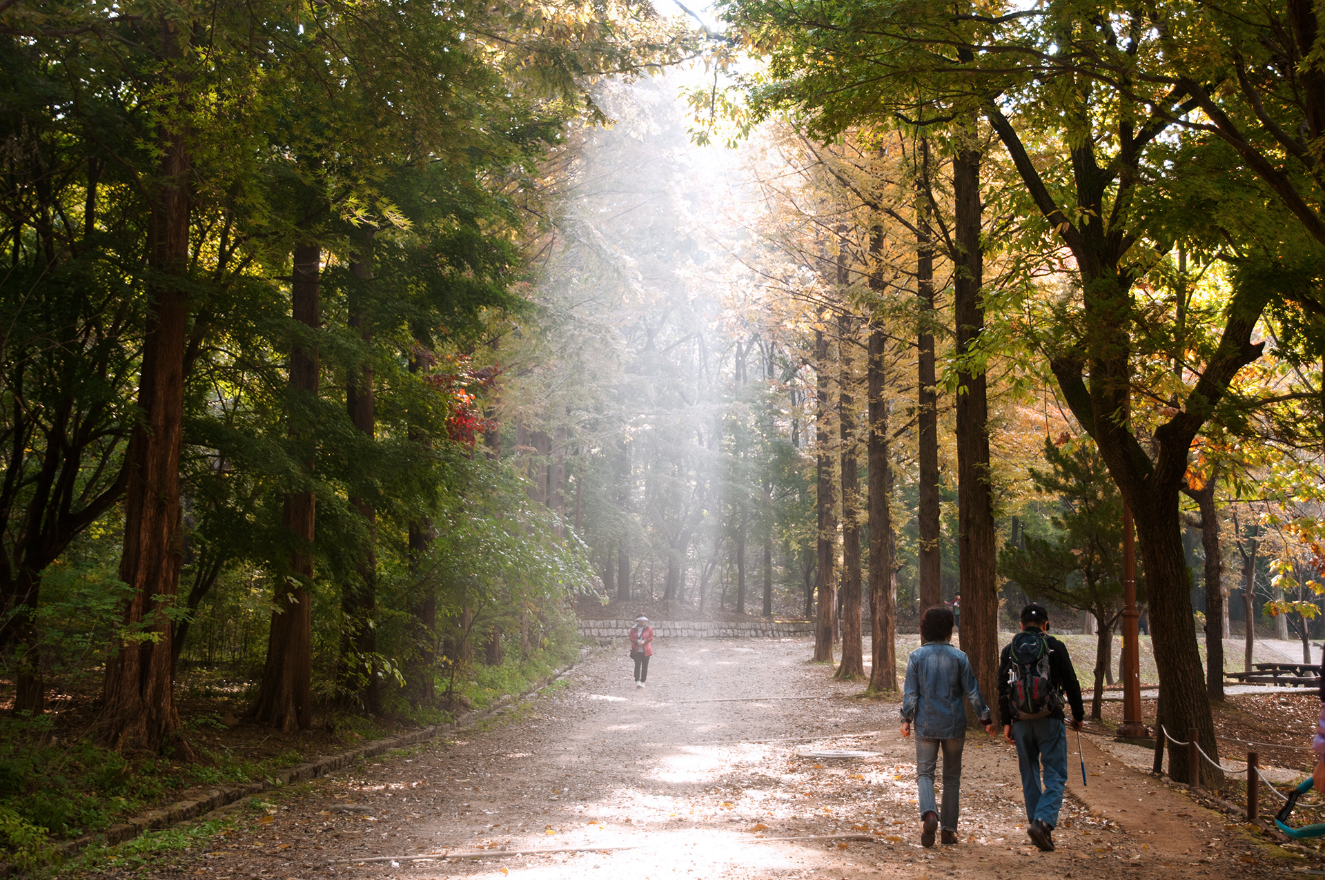 메타세콰이어길에 들어서니 멋진 빛내림이 연출되고 있다.