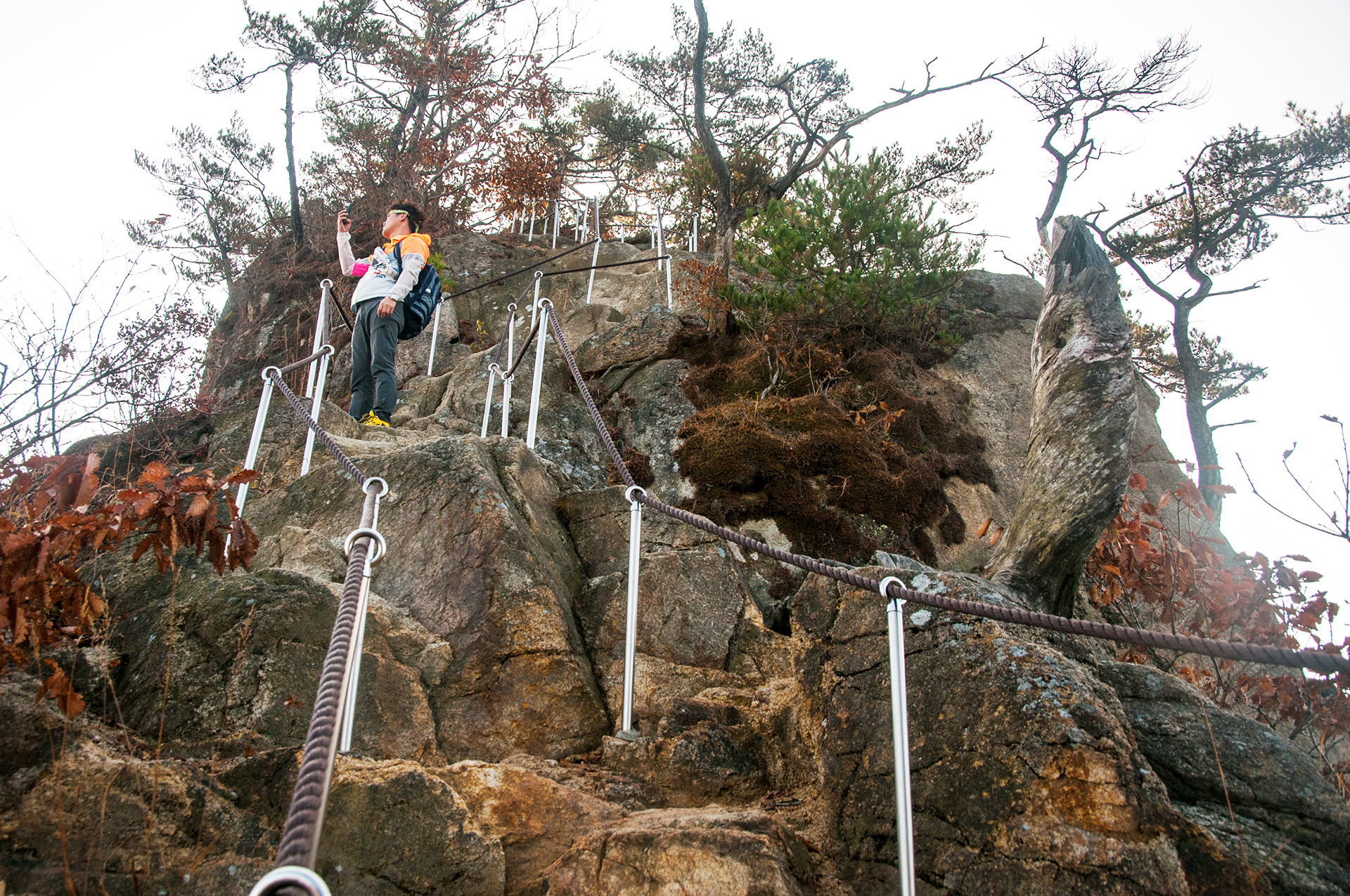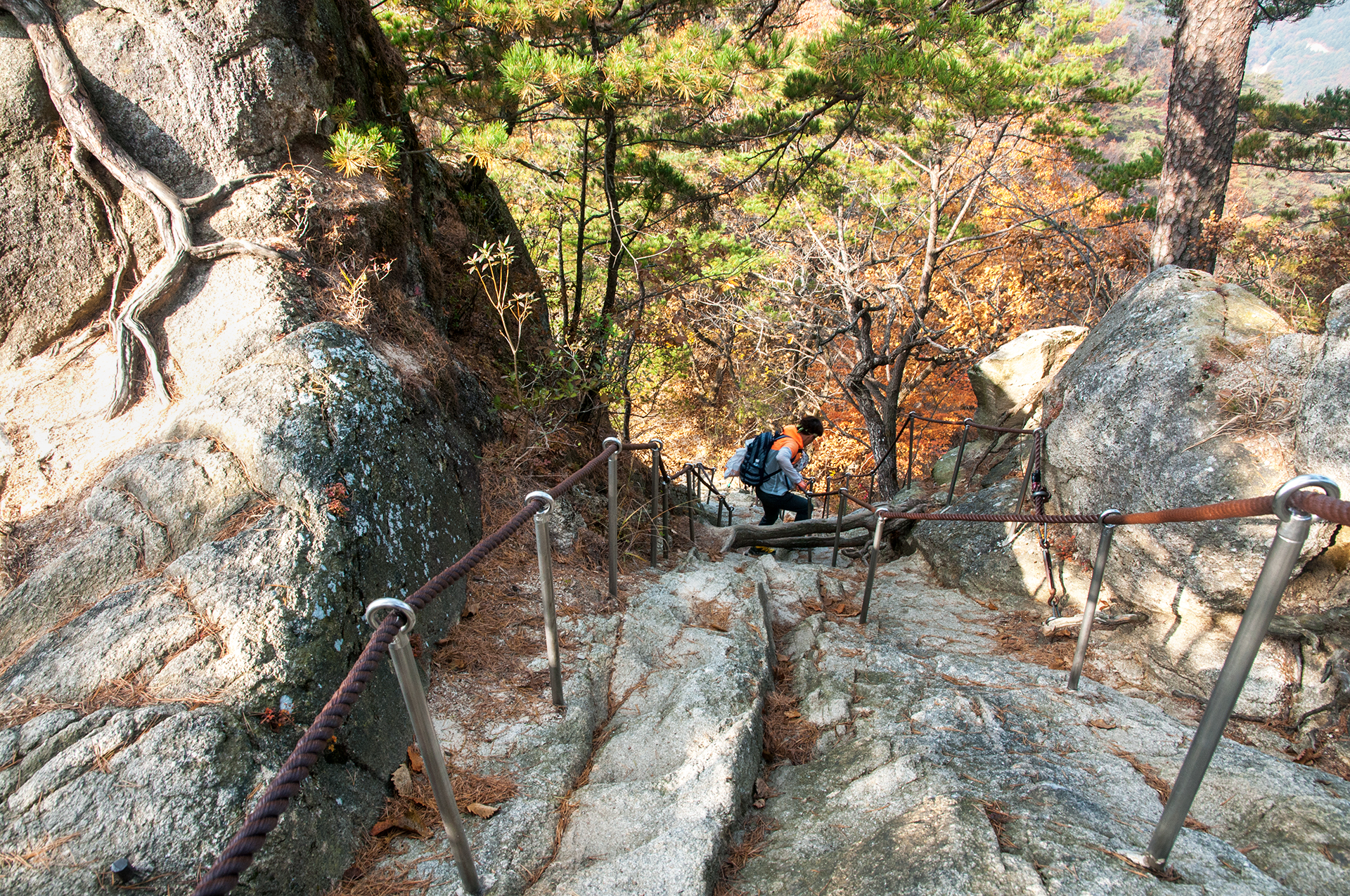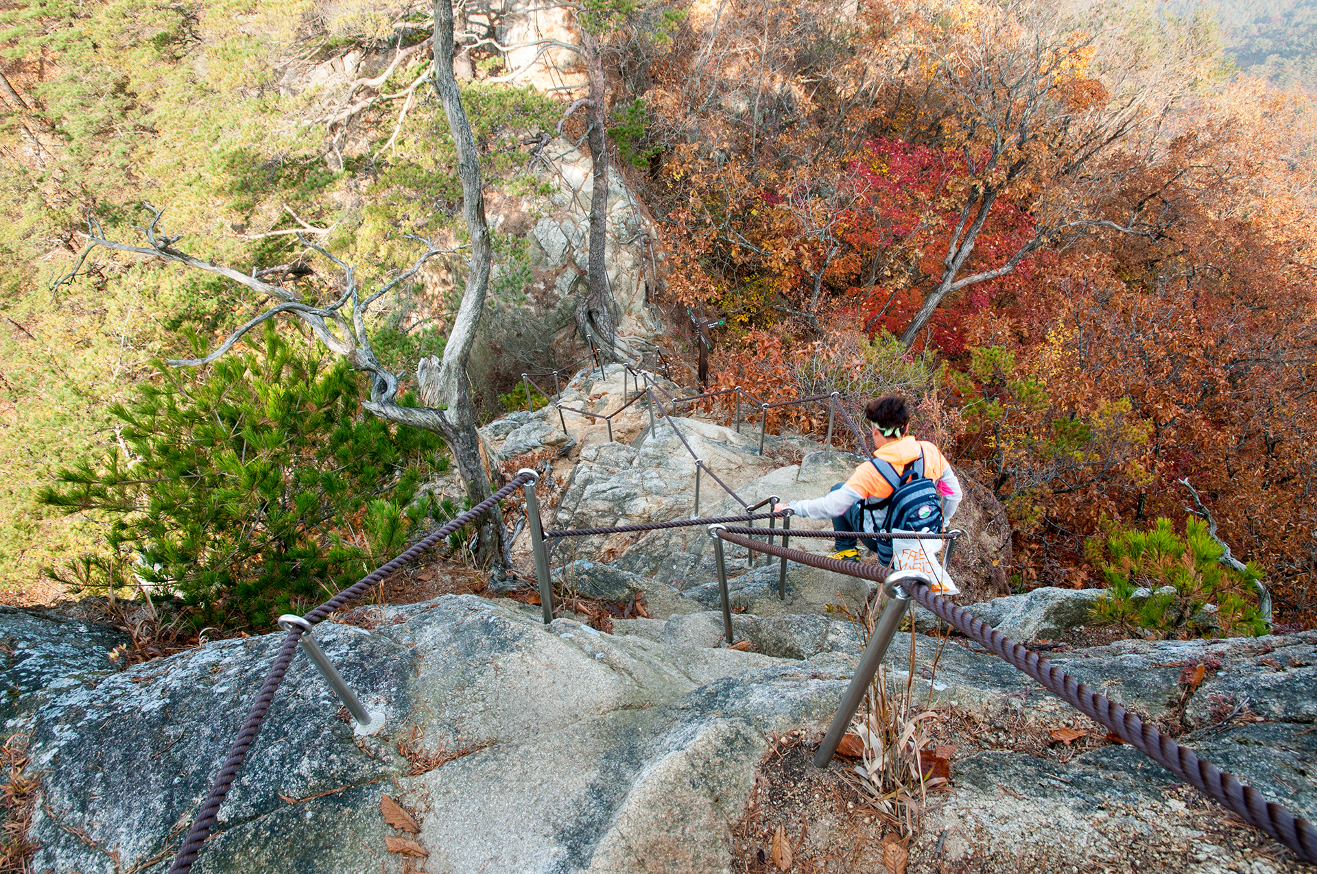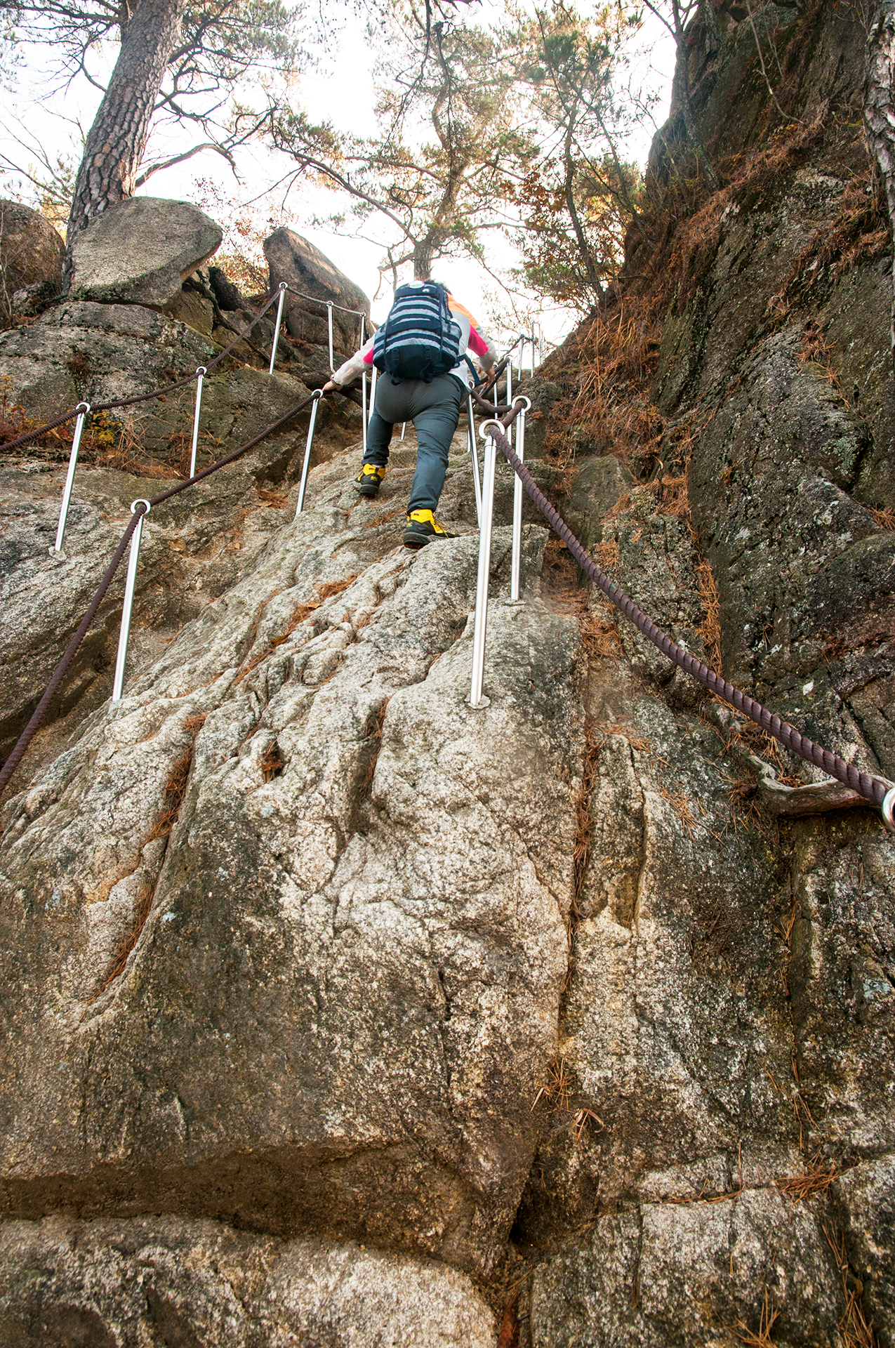 산객들이 많은 시간대에는 정체되는 구간일 수도 있다. 발을 안전하게 디딜 수 있는 암벽이라 생각보다 위험하지는 않다.