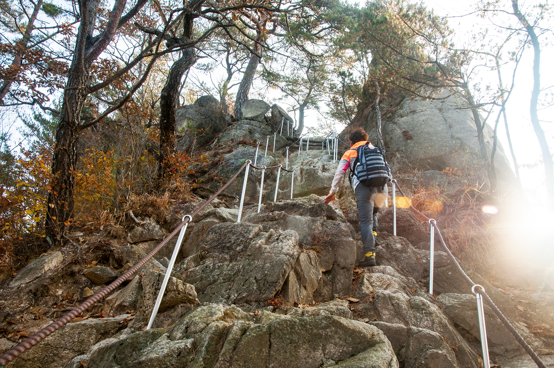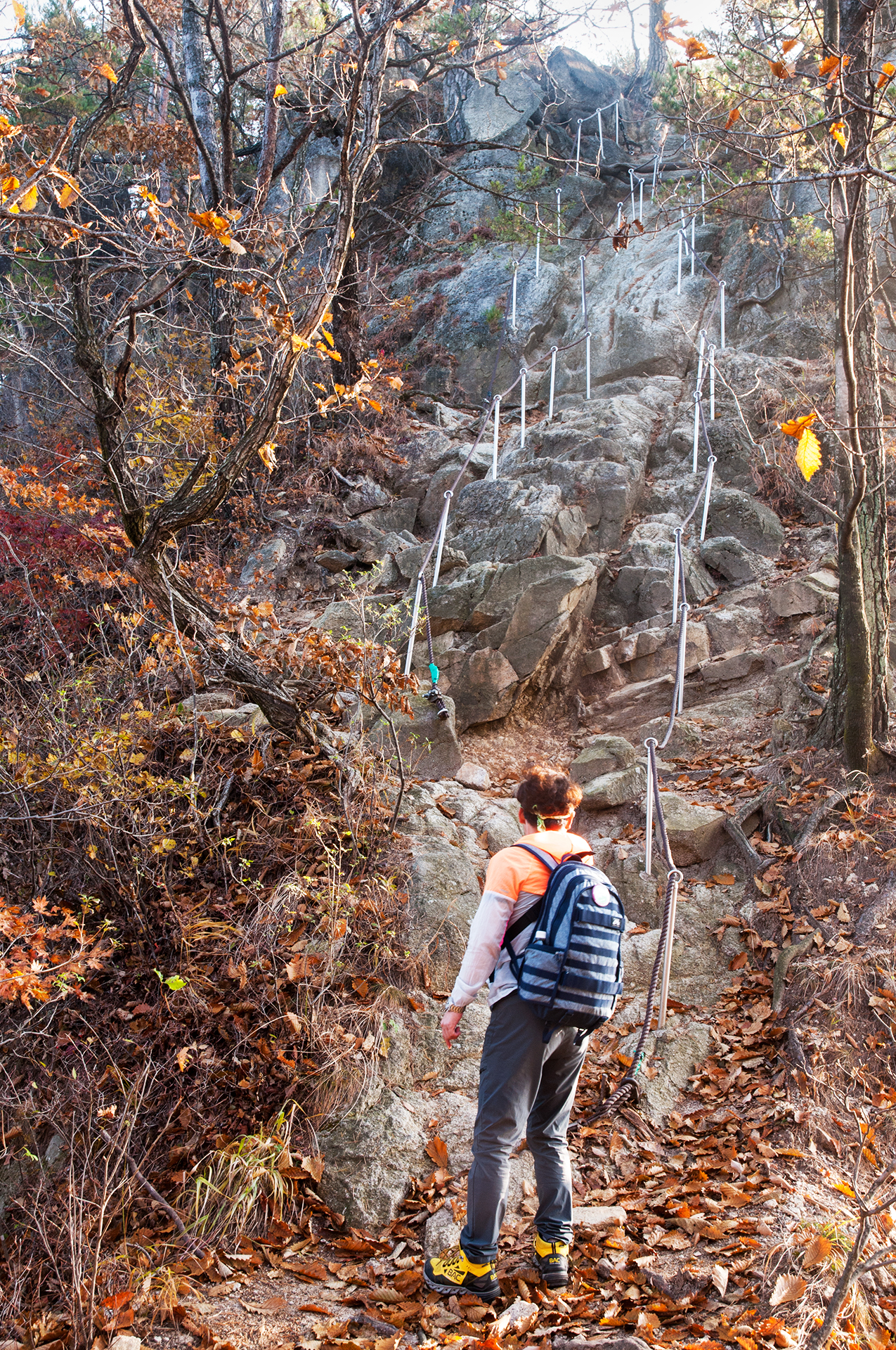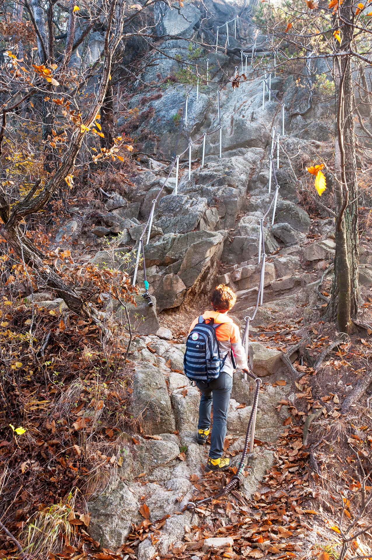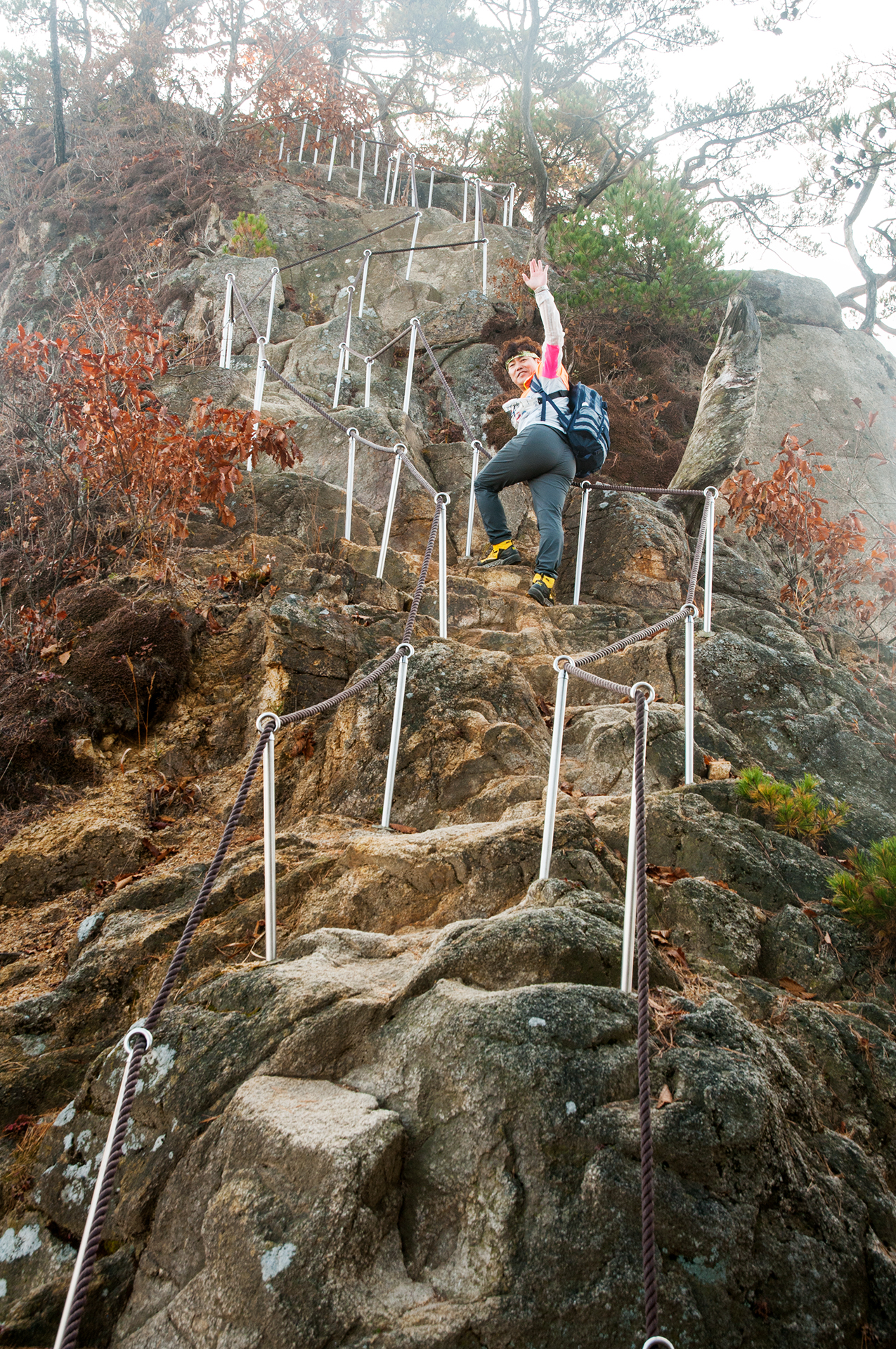 산객들이 많은 시간대에는 정체되는 구간일 수도 있다. 발을 안전하게 디딜 수 있는 암벽이라 생각보다 위험하지는 않다.