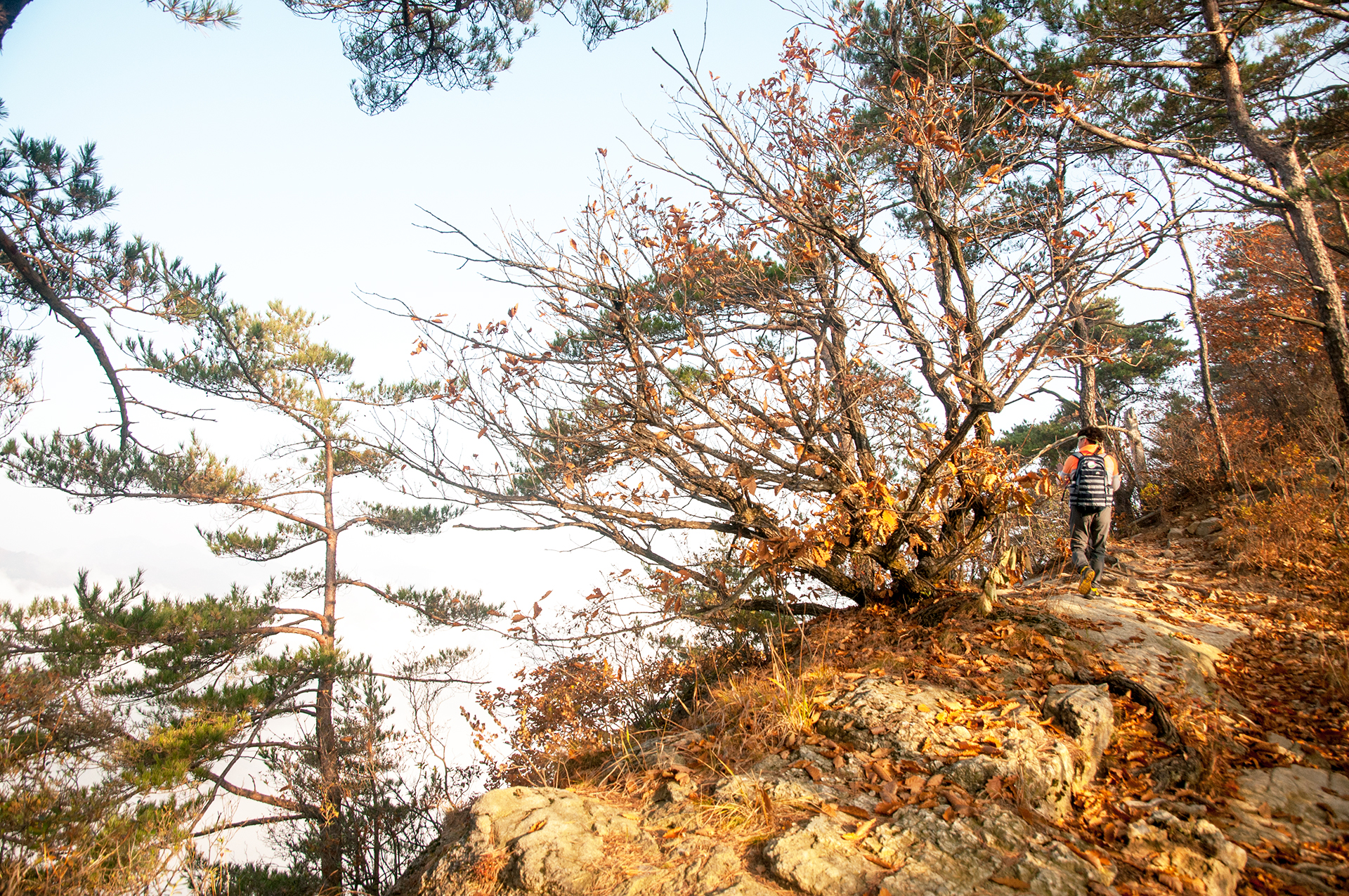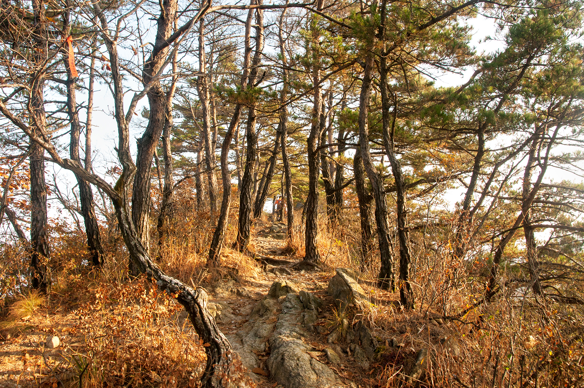 어느새 상수리나무가 사라지고 소나무가 대부분인 등산로를 걷고 있다.
