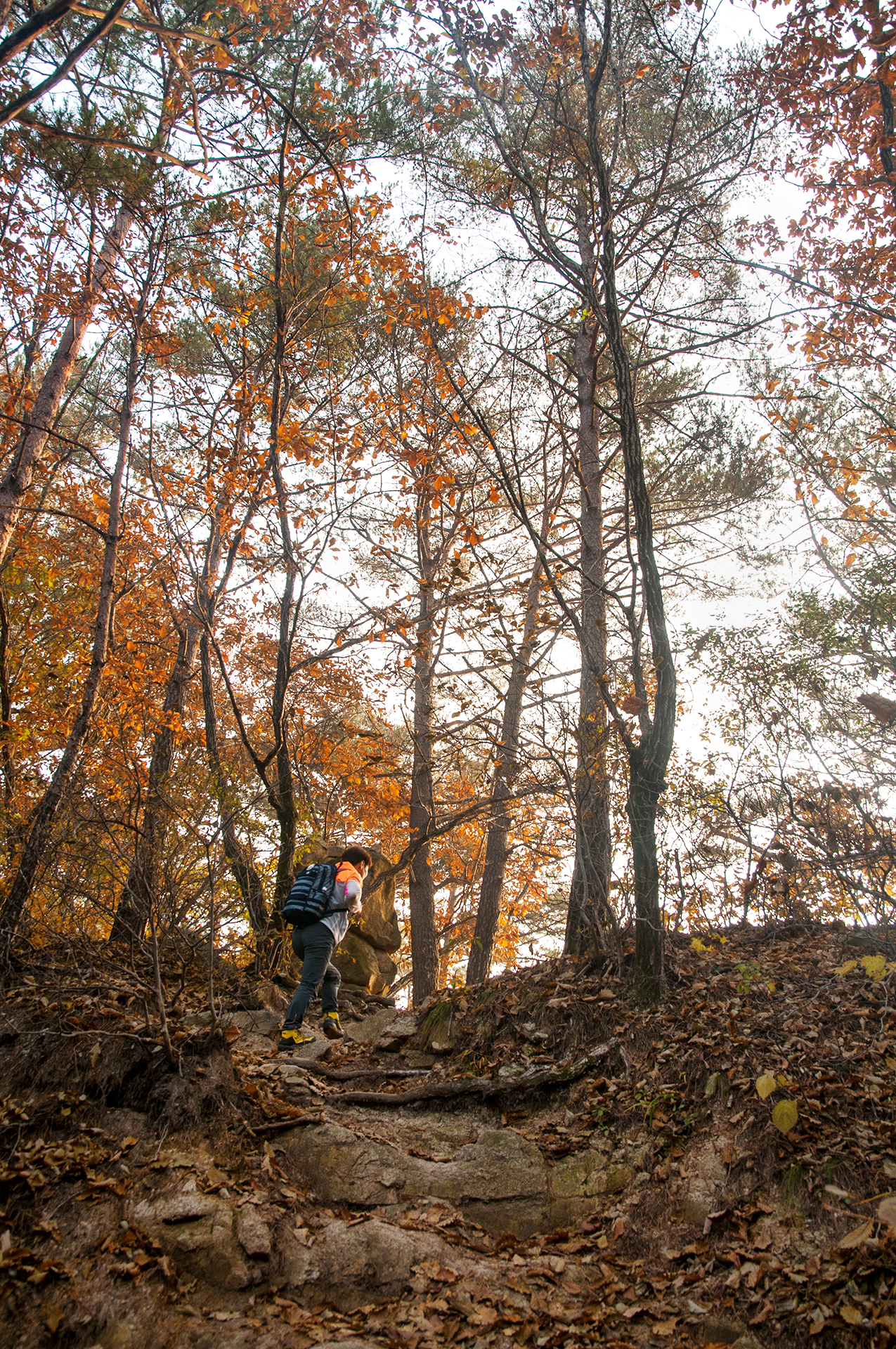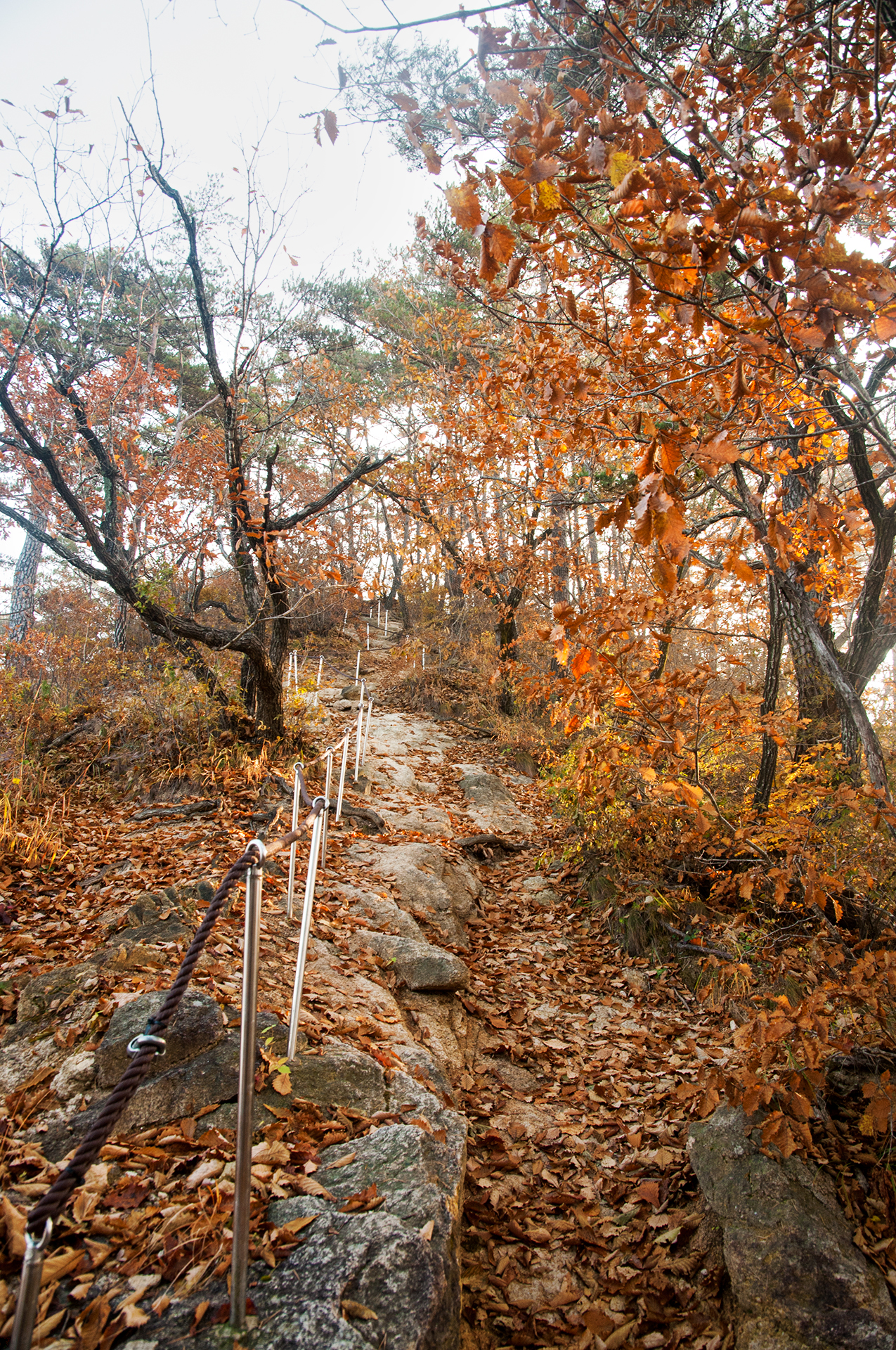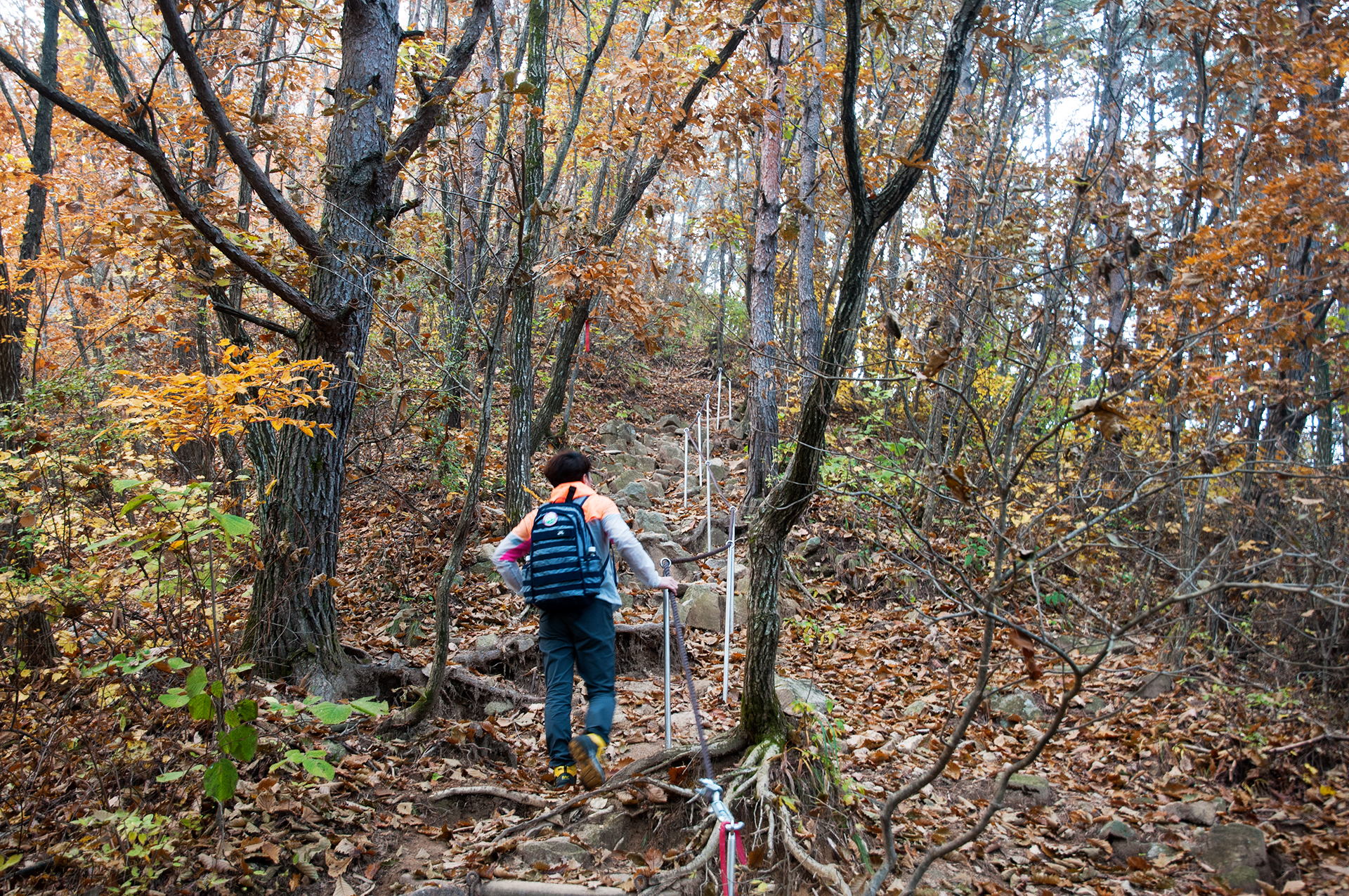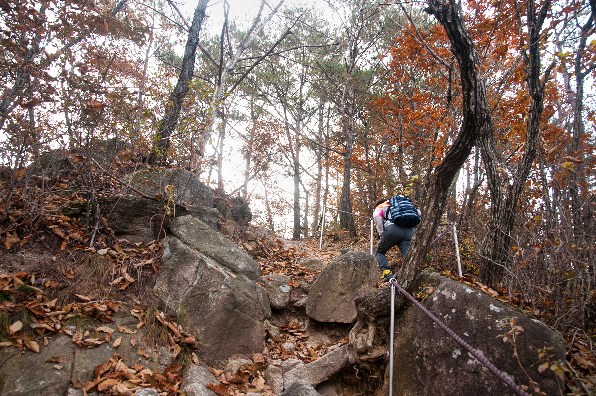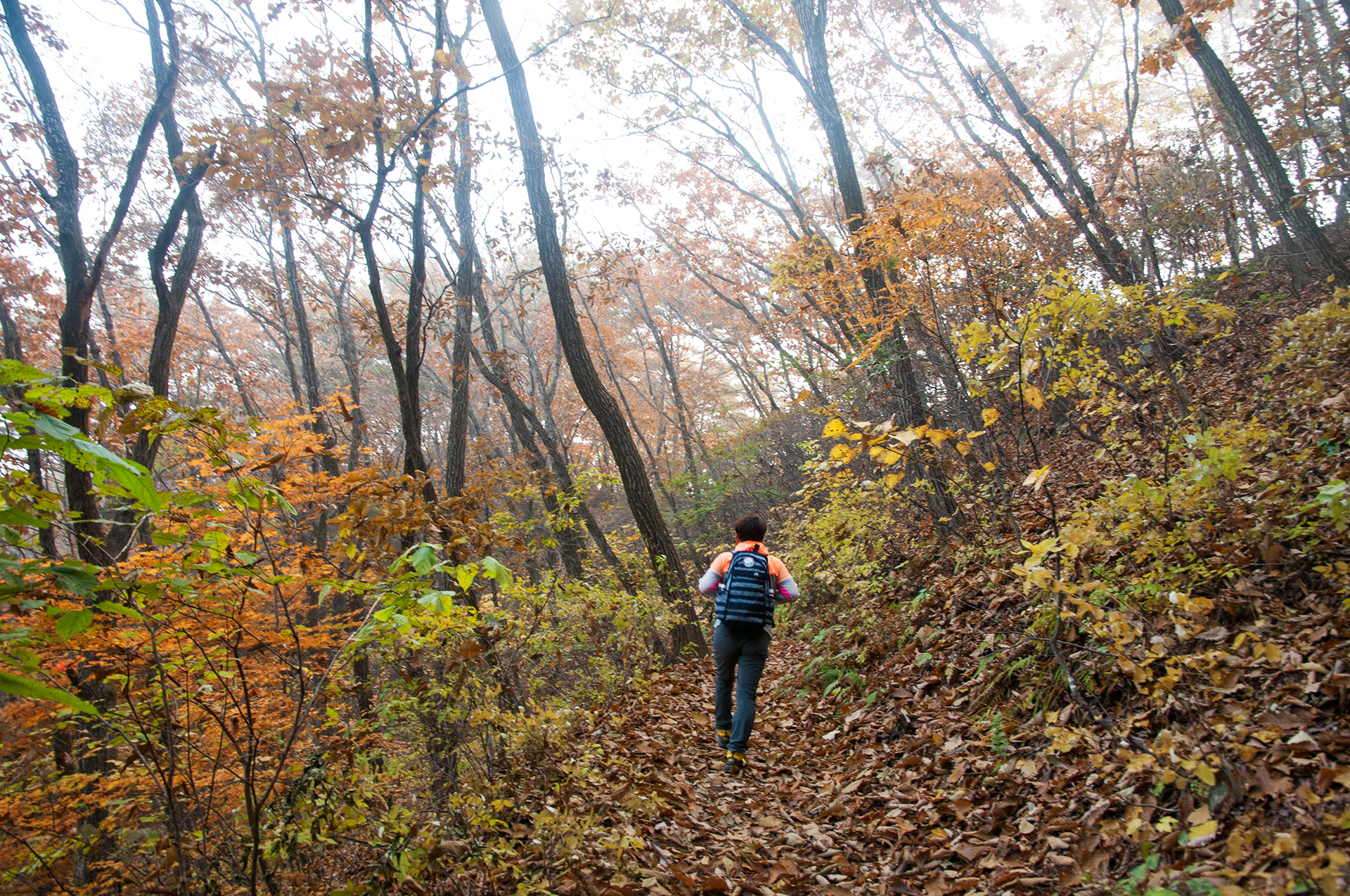 낙엽으로 등산로가 미끄럽기도 하고, 아침 안개가 끼어 약간은 쌀쌀함을 느끼는 날씨다.