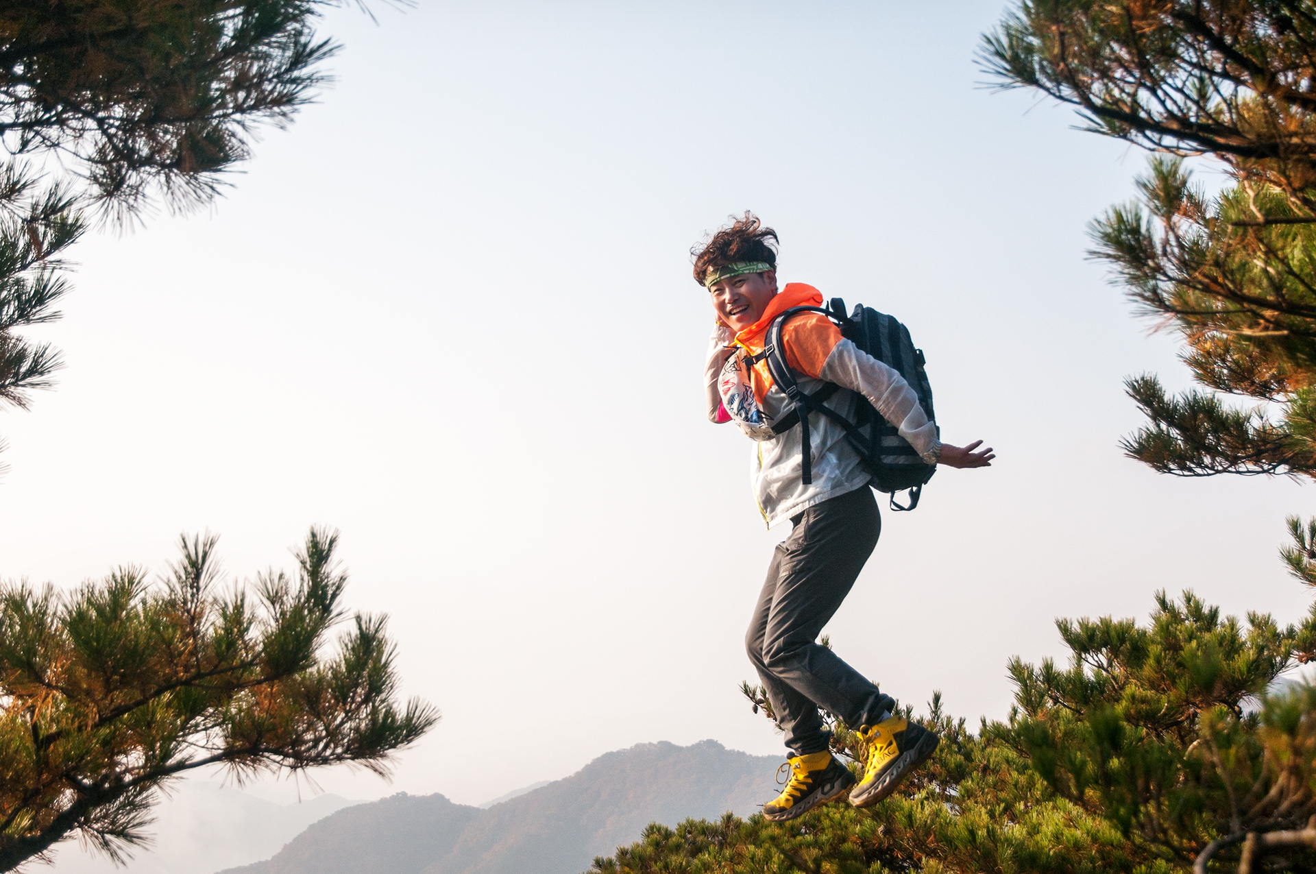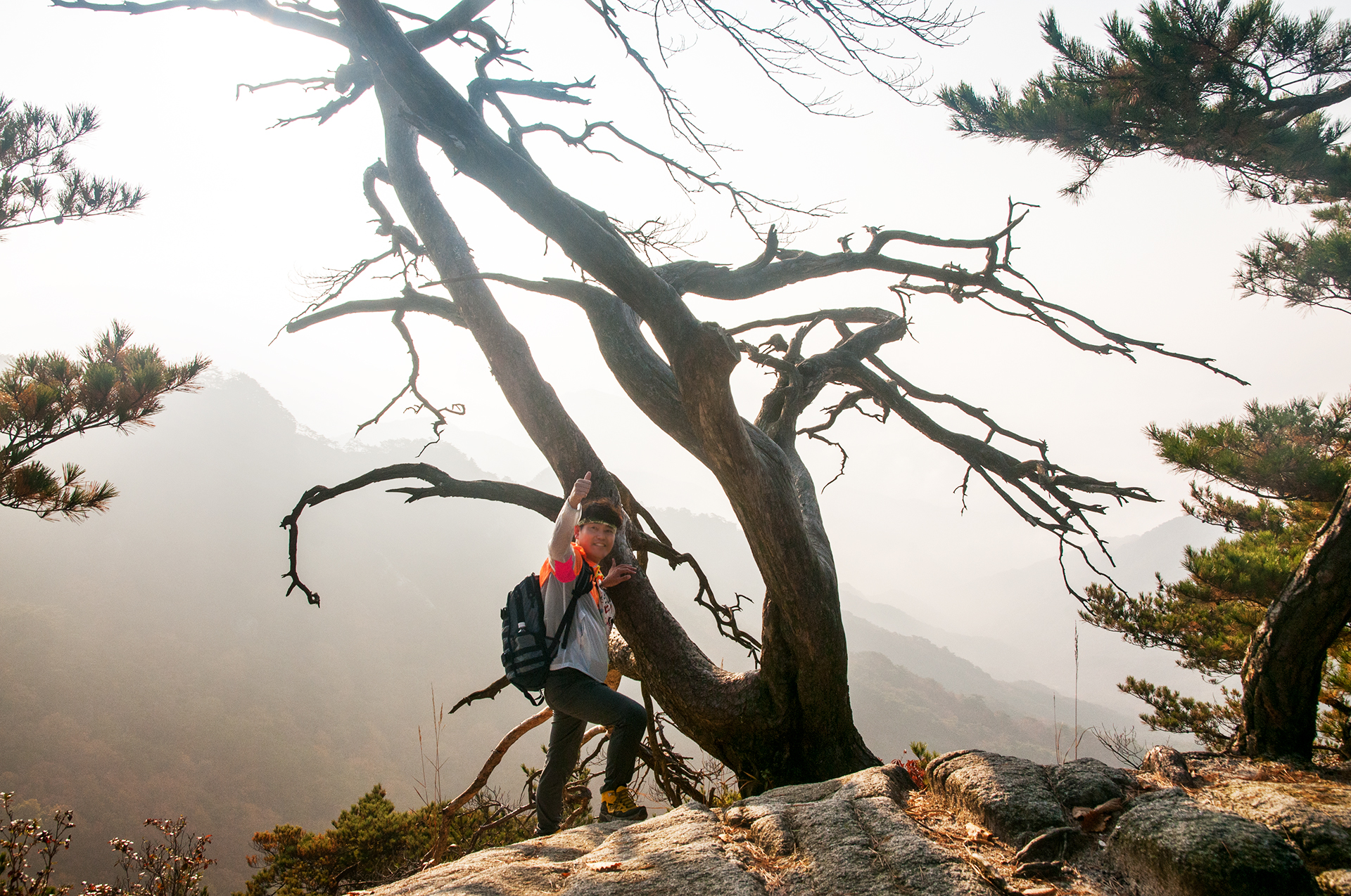 이렇게 올라갈수 있는 곳은 모두 사진찍기 좋은 포인트가 되어준다. 여전히 끝봉 너머에는 안개가 자욱해 소양강의 소자도 안보인다.