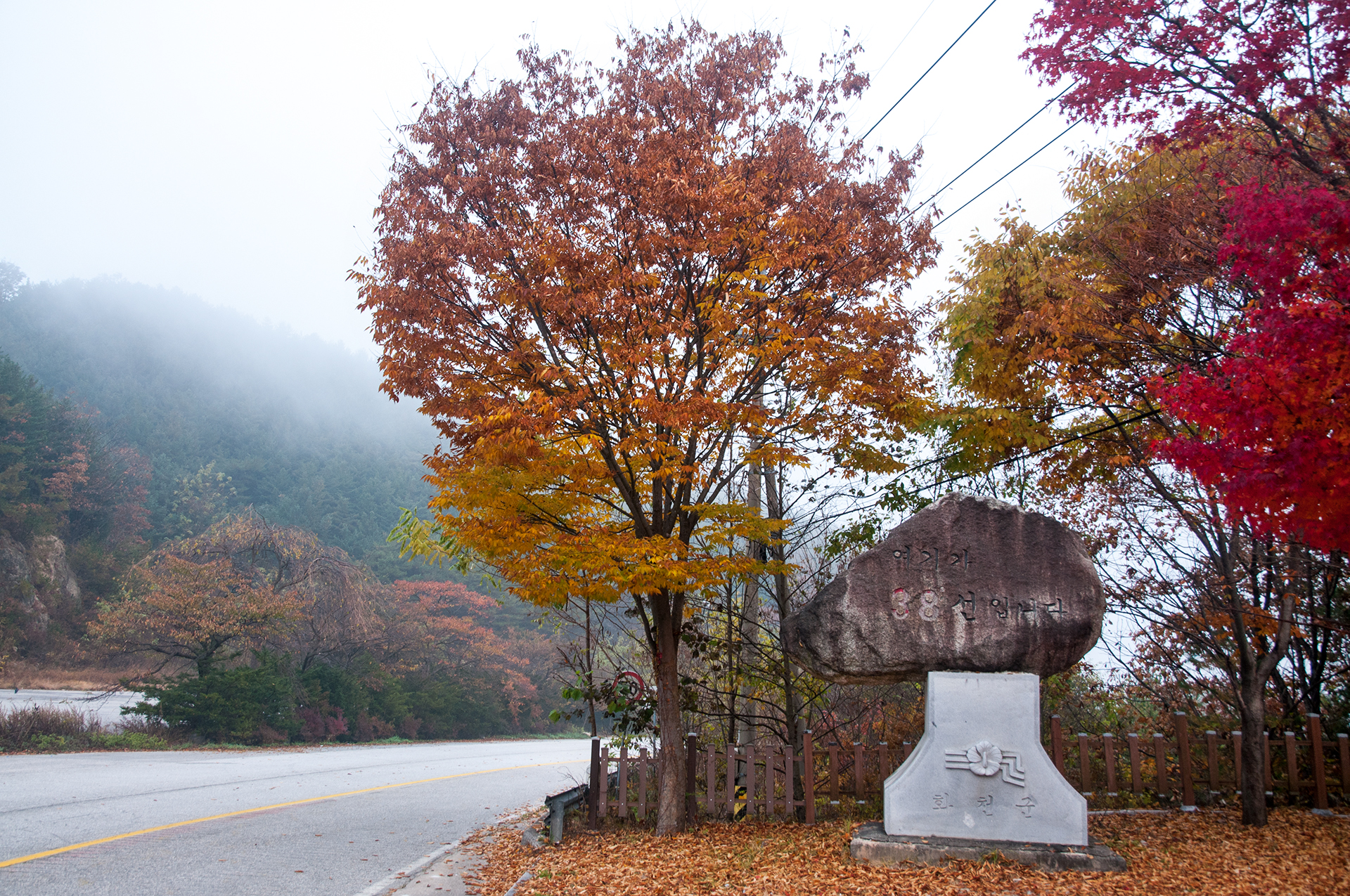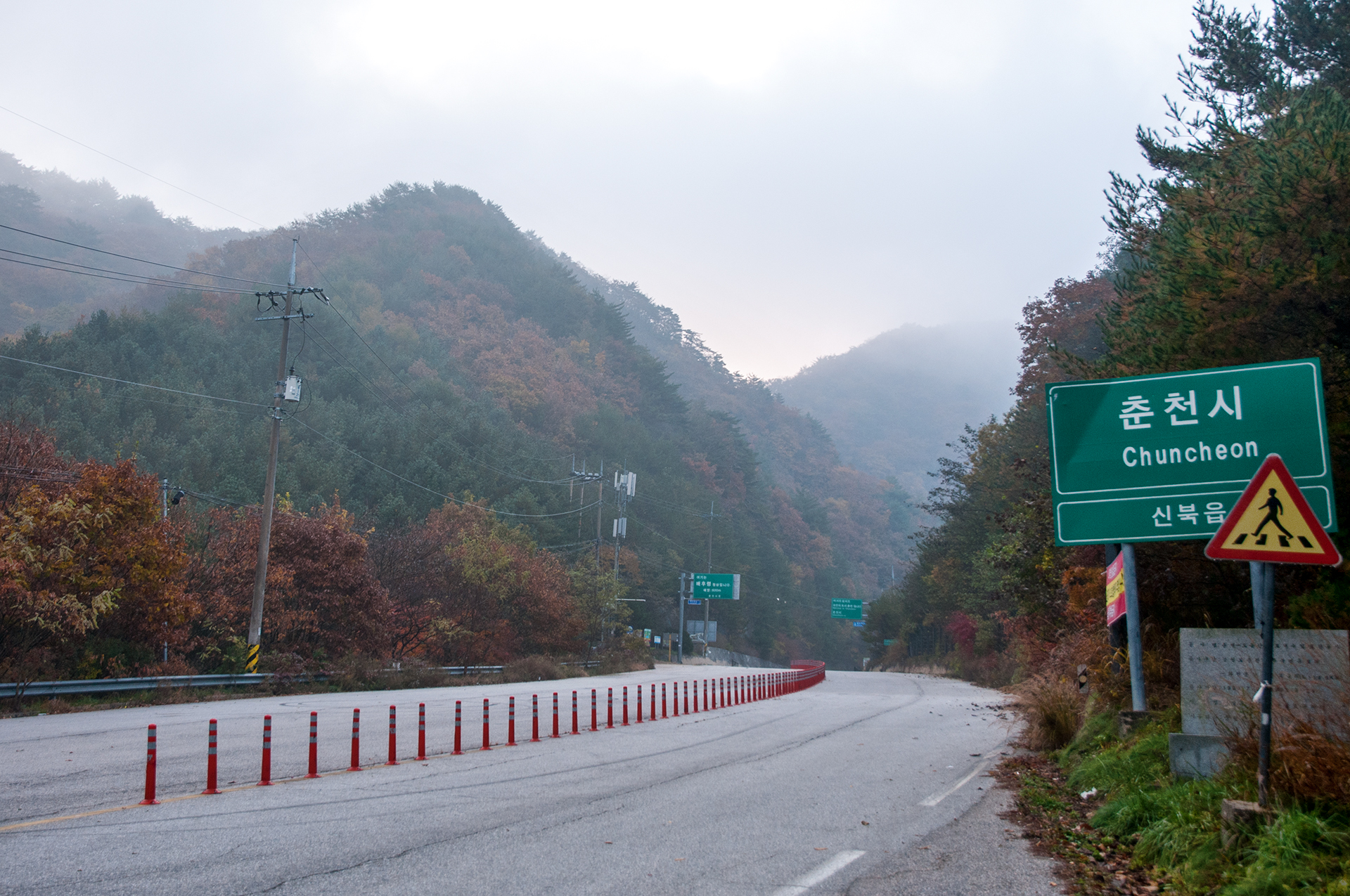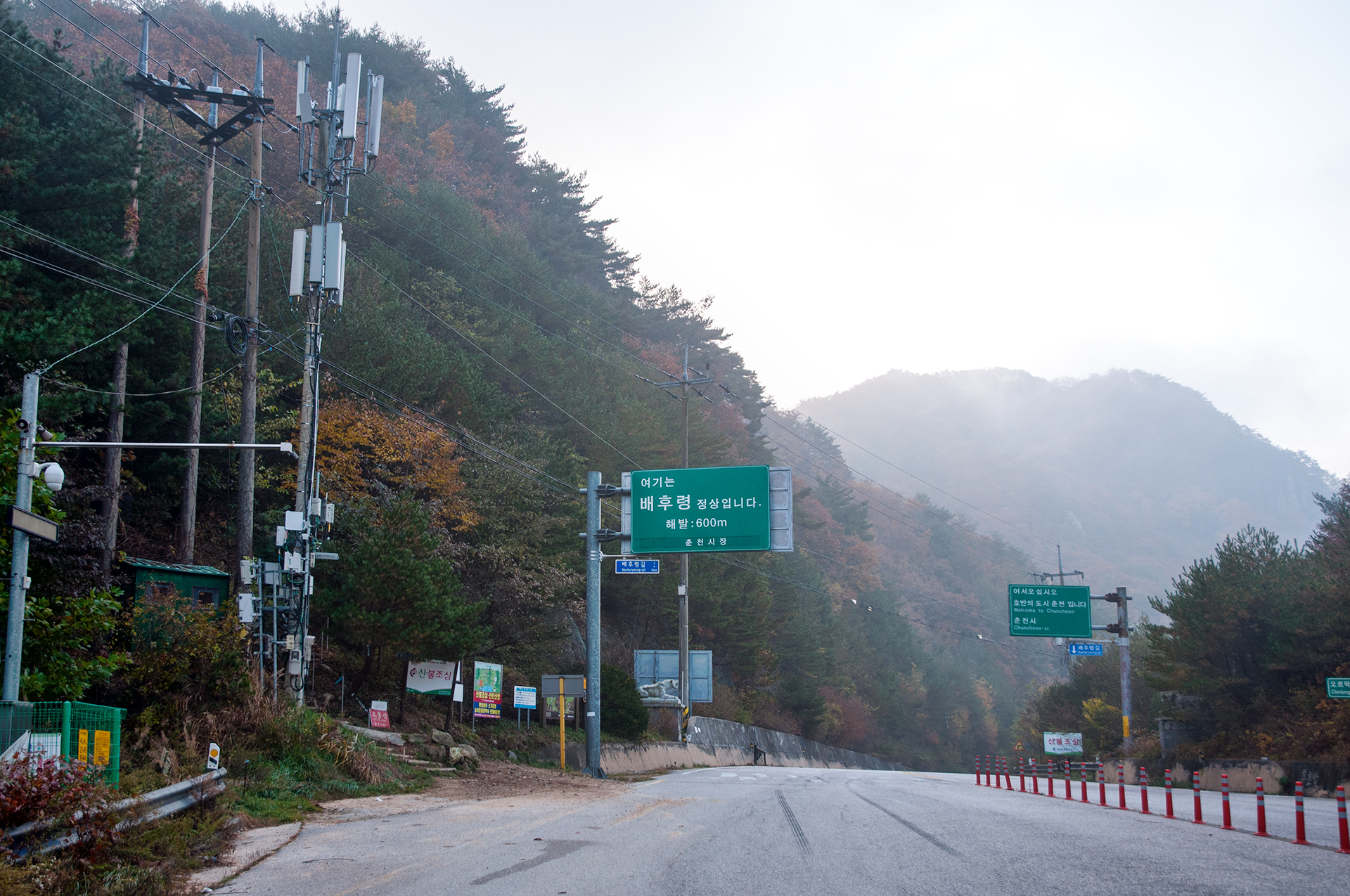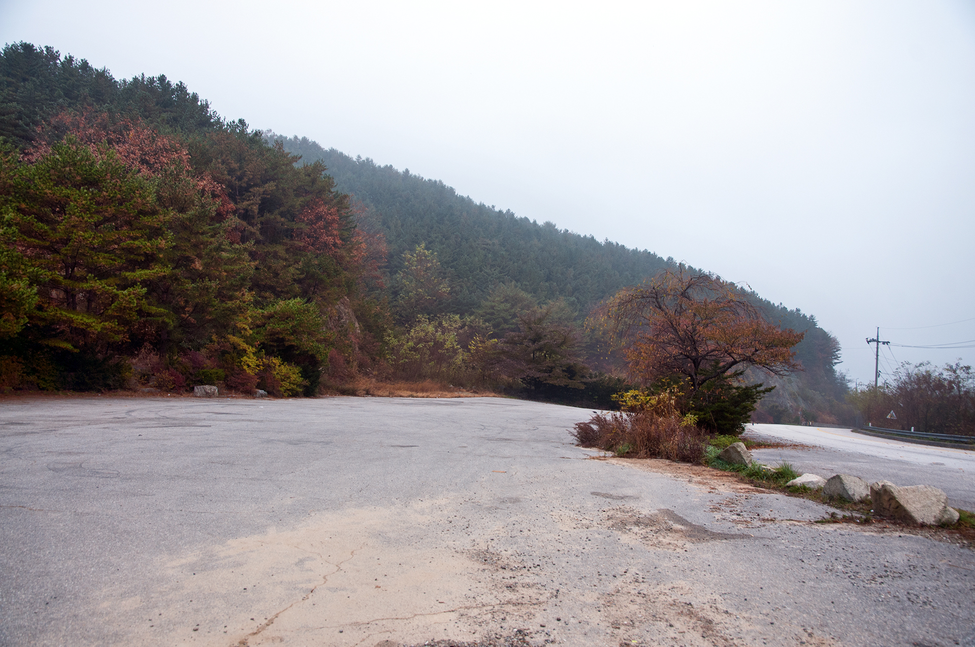 화천과 춘천의 경계지점, 길을 건너왔기 때문에 주차장이 도로 건너편에 보인다.