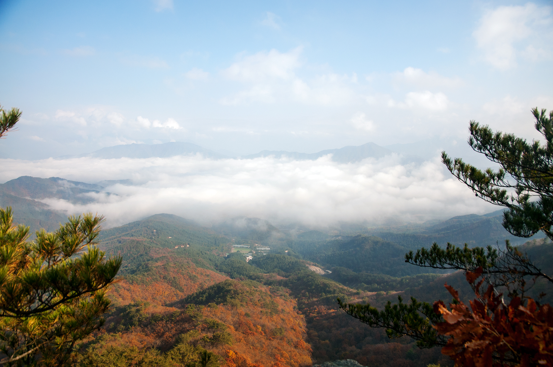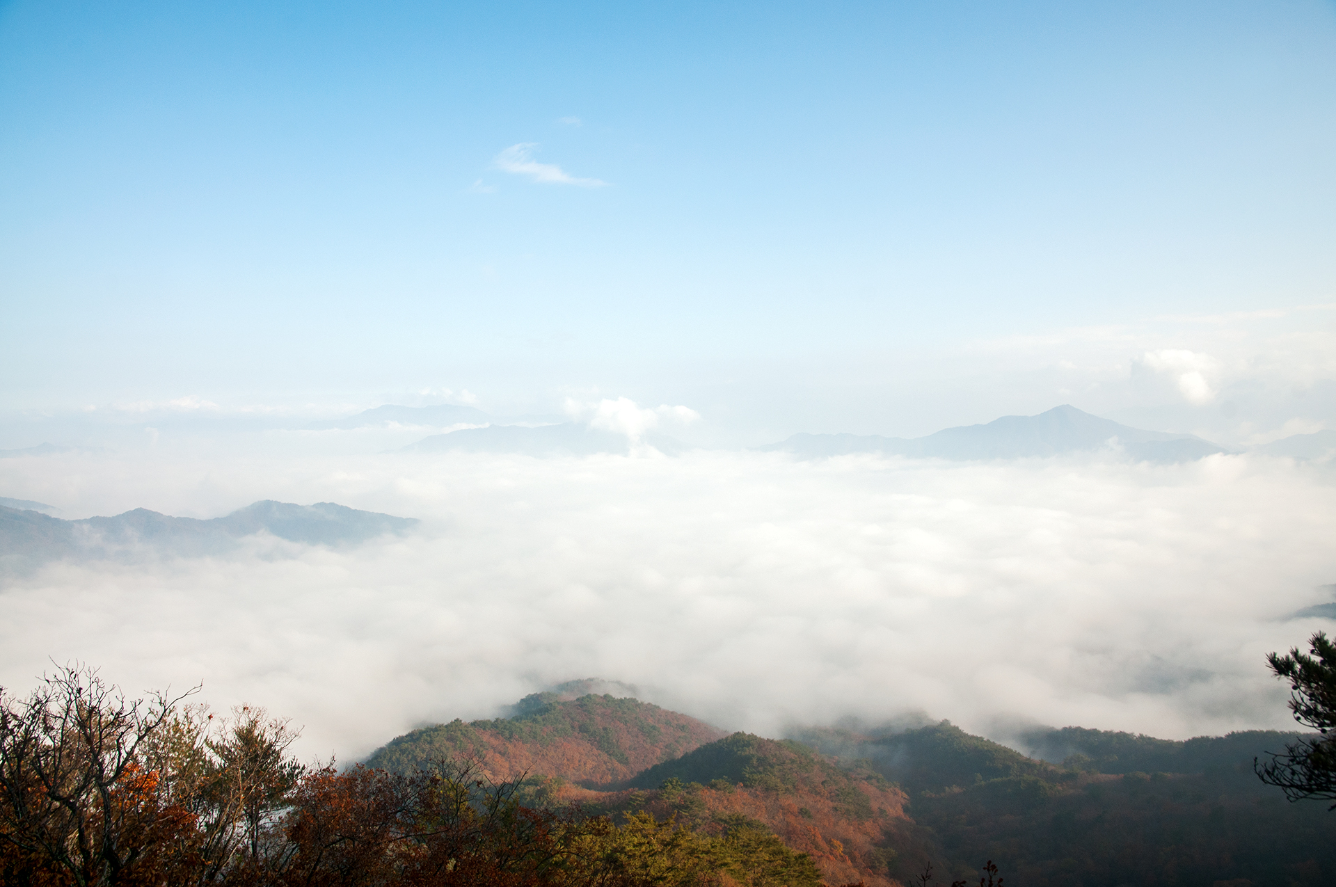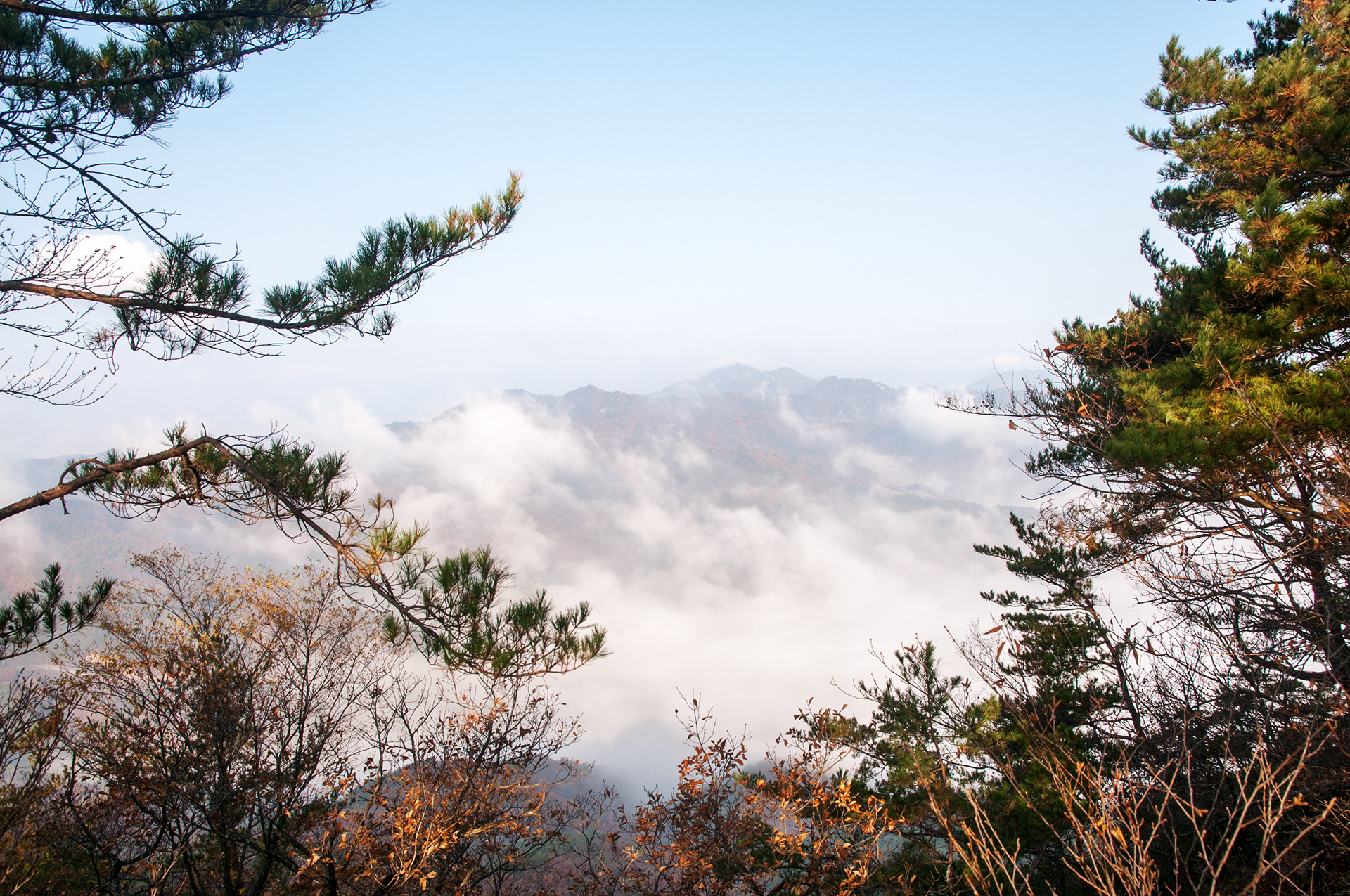 넘실대는 안개구름 아래 무엇이 숨겨져 있을까,, 햇빛이 좀더 강했으면 좋겠는데 여전히 뿌연 모습이다.