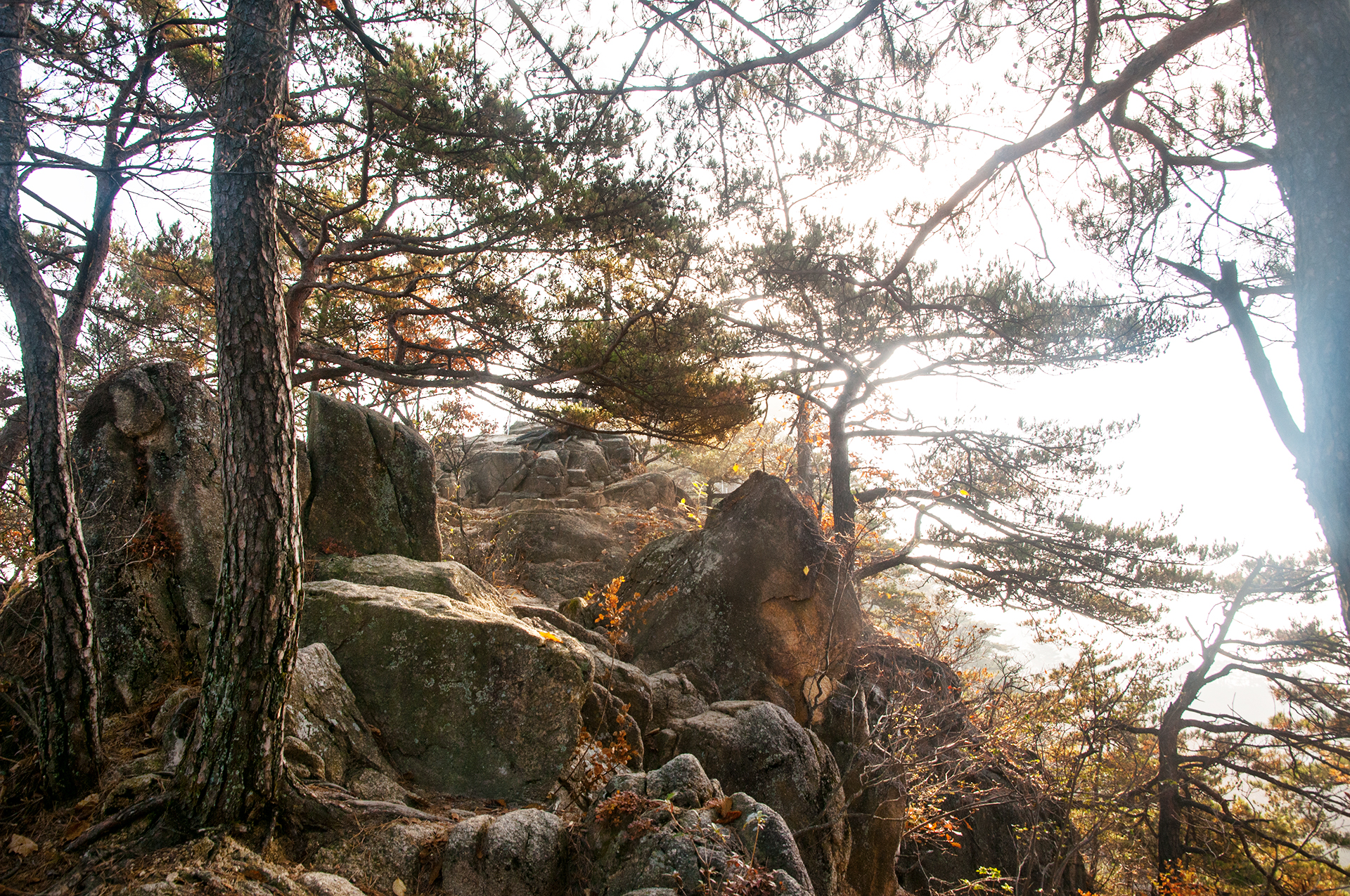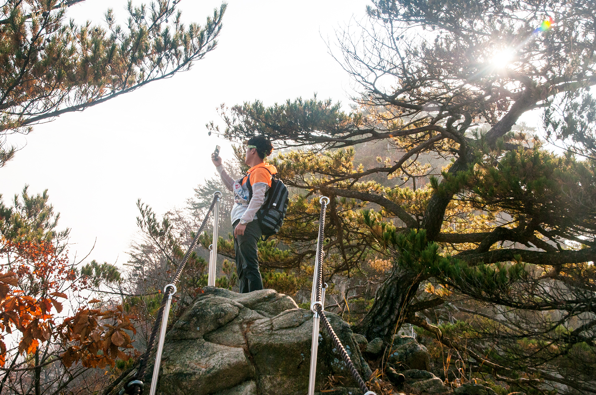 바위 틈마다 깊게 뿌리를 내린 소나무들이 멋스러움을 보여준다.