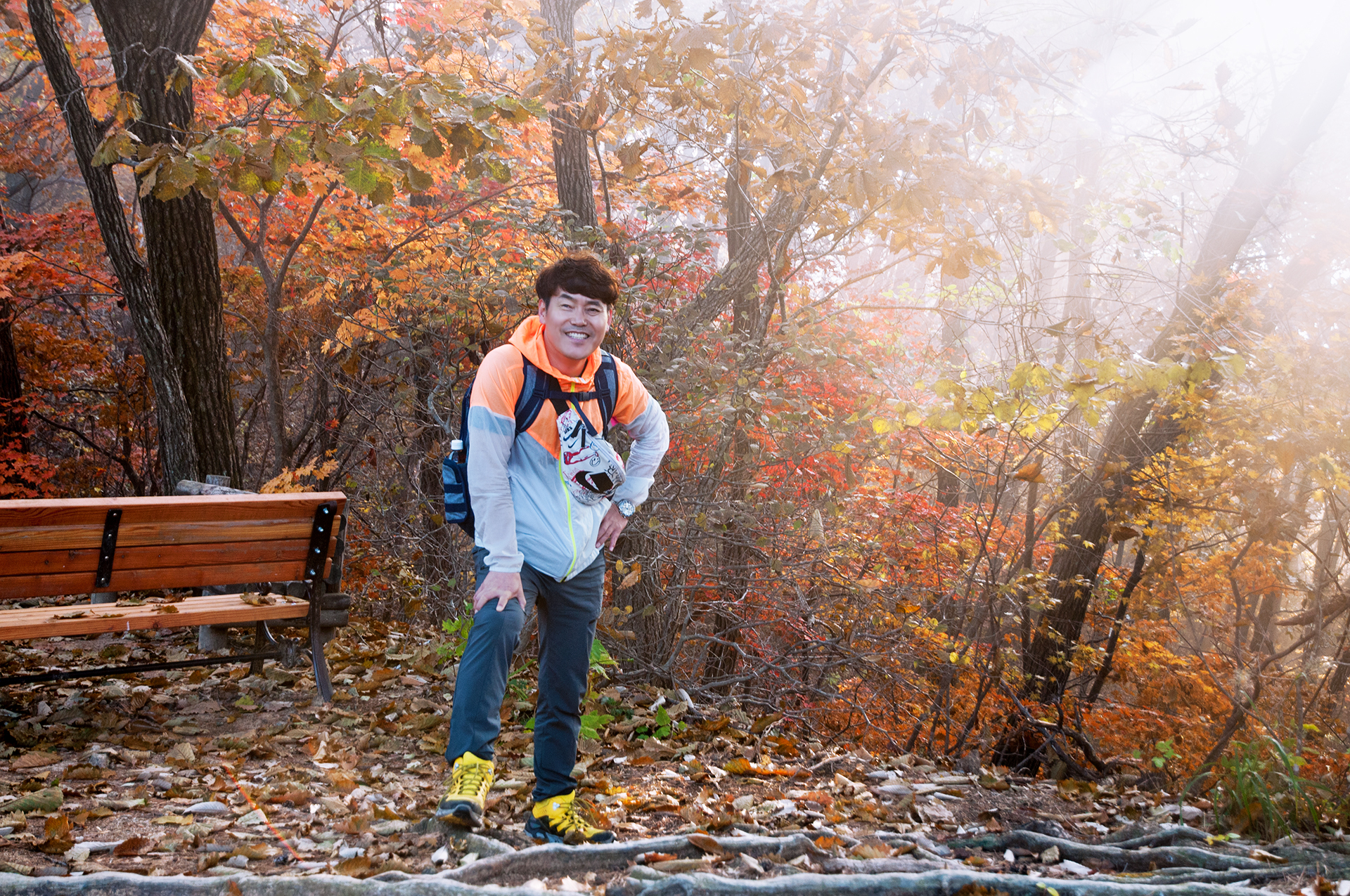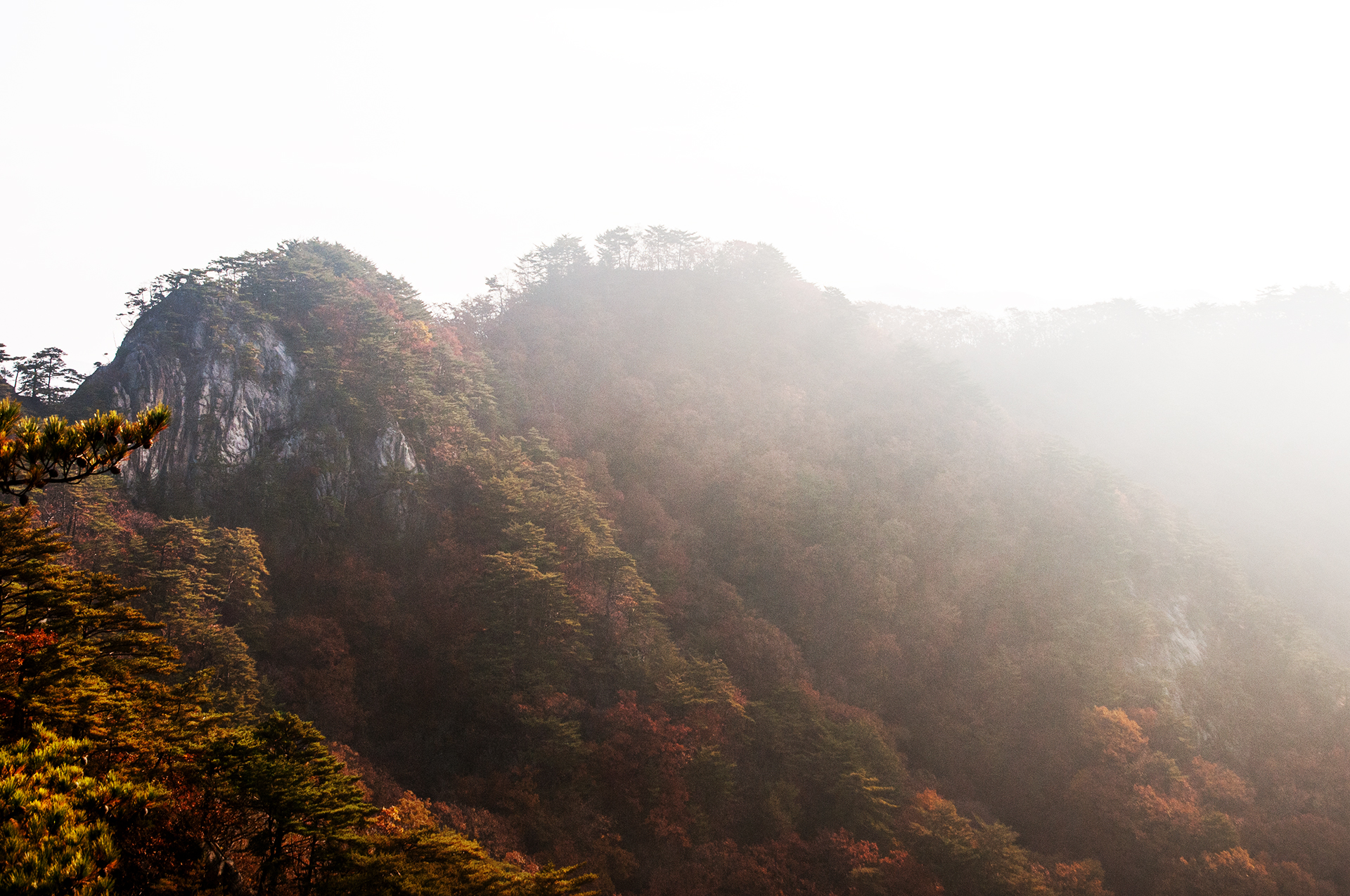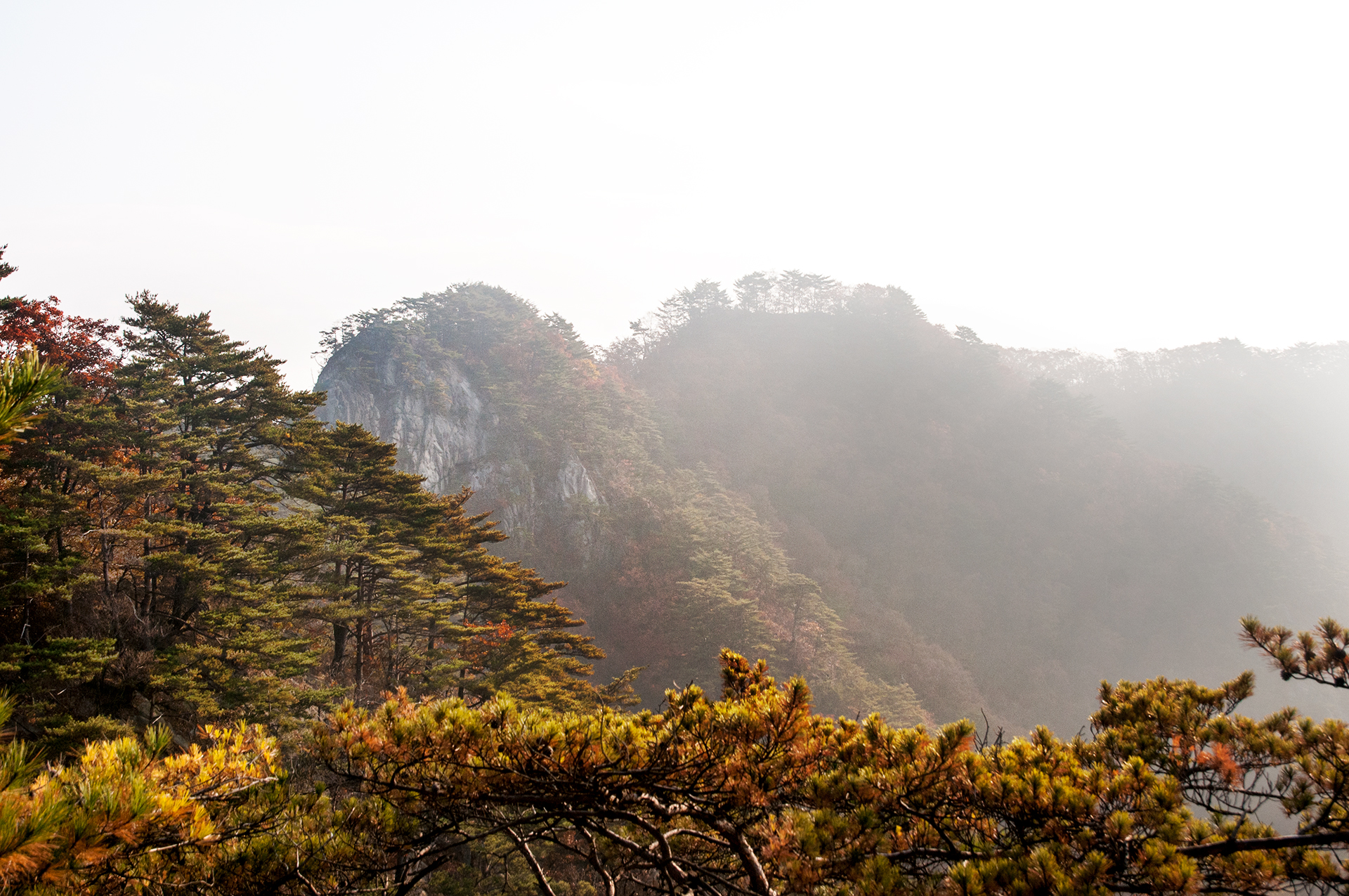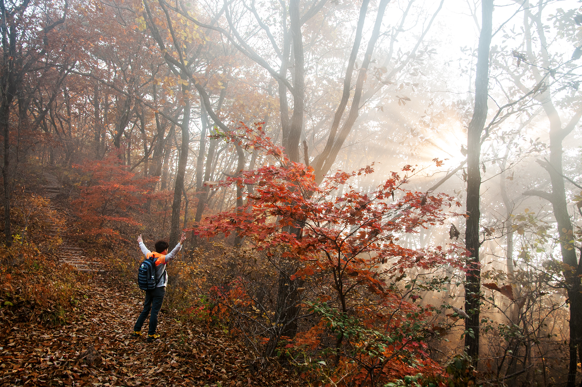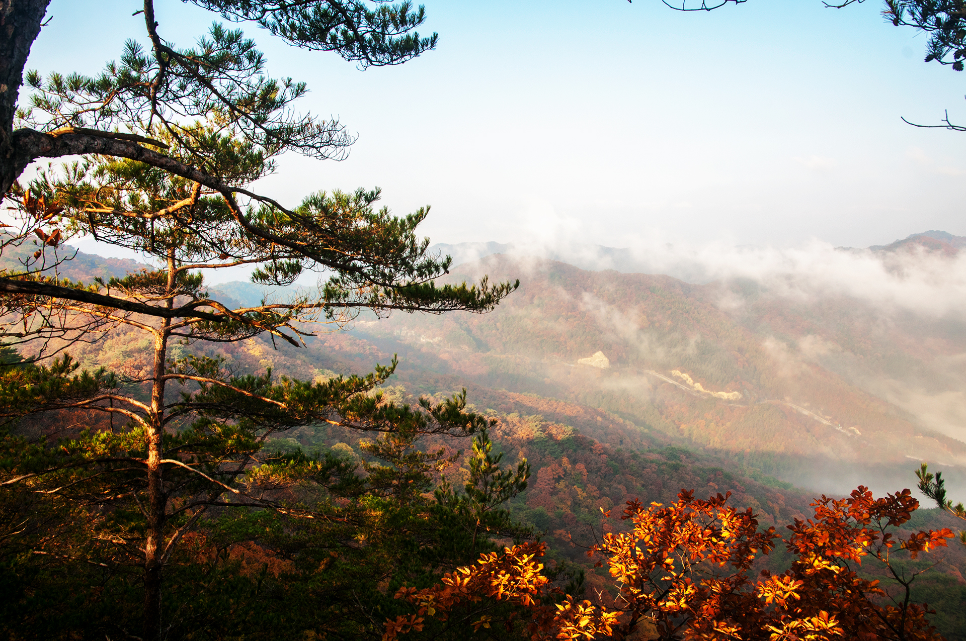 가을 산행은 단풍인데 단풍색이 곱지 않은 상수리나무가 주종이라 차라리 안개도 괜찮다 싶었다.