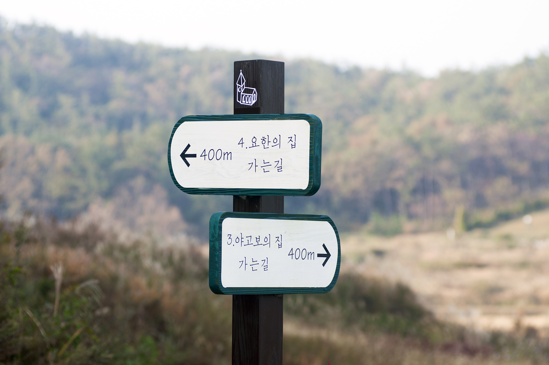 거리는 400m, 다음 이정표를 보면 거리가 잘못 표기된것 같다.
