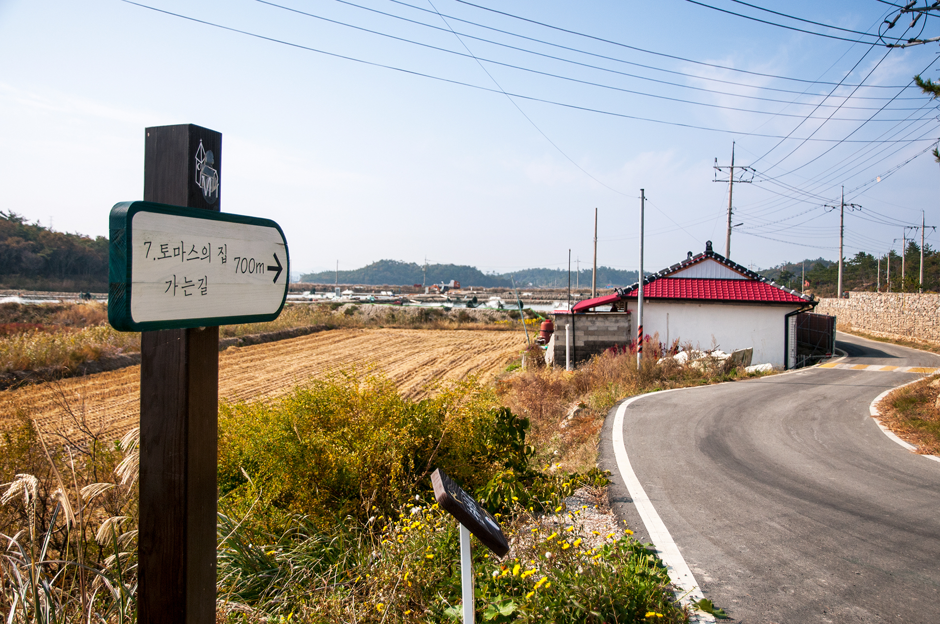 다섯번째 필립의 집으로 가기 위해 다시 '갤러리 노두'를 지나 삼거리로 돌아왔다. 520m만 가면 노둣길을 지나 소기점도에 들어갈 수 있다.