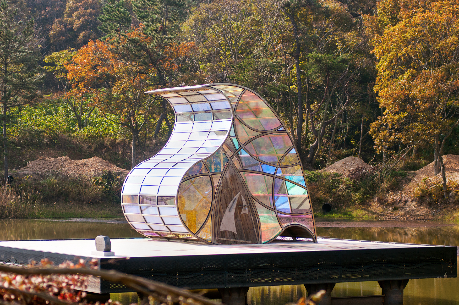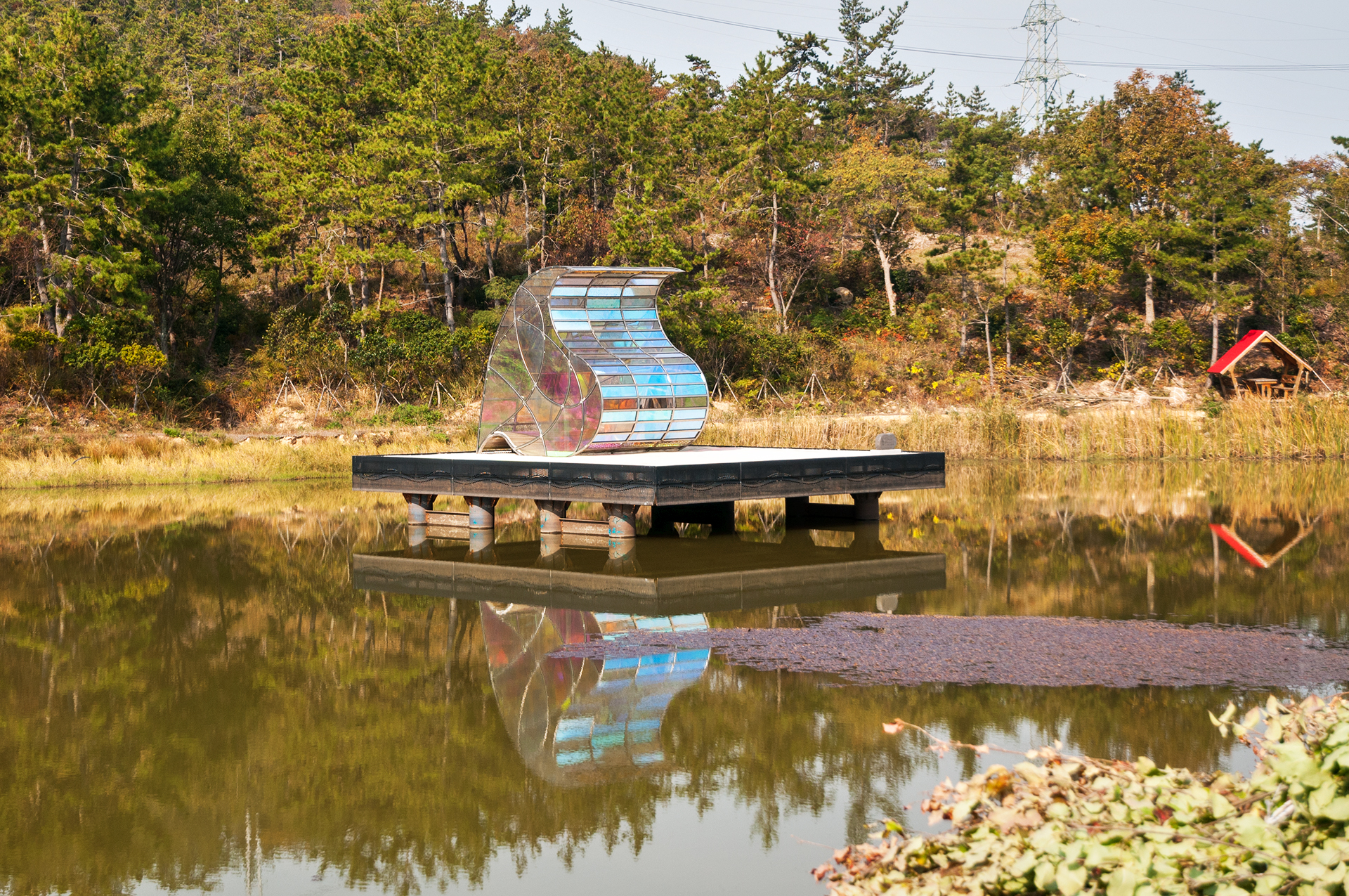 누워서 하늘을 바라볼 수 있도록 물결 모양의 마루가 있고, 태양광 패널이 설치되어 한낮의 빛을 모아 밤에는 은은한 빛을 밝힌다고 한다.