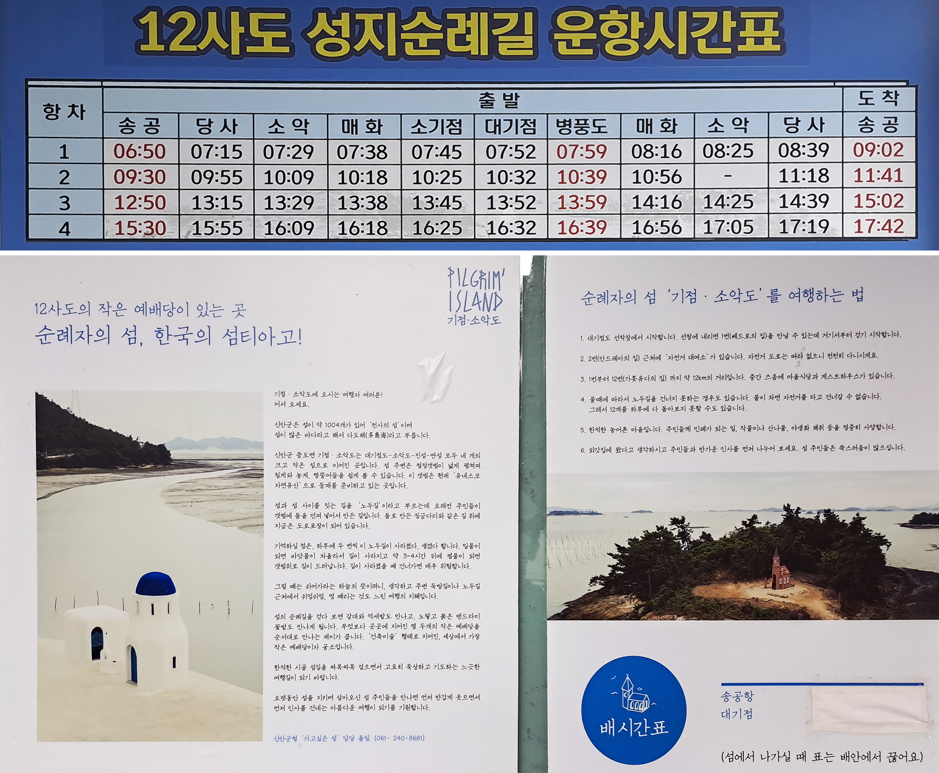 * 소요시간 : 대기점선착장에서 순례길을 걸어 소악도선착장까지 약 12km, 4시간52분 (휴식, 촬영시간 포함)