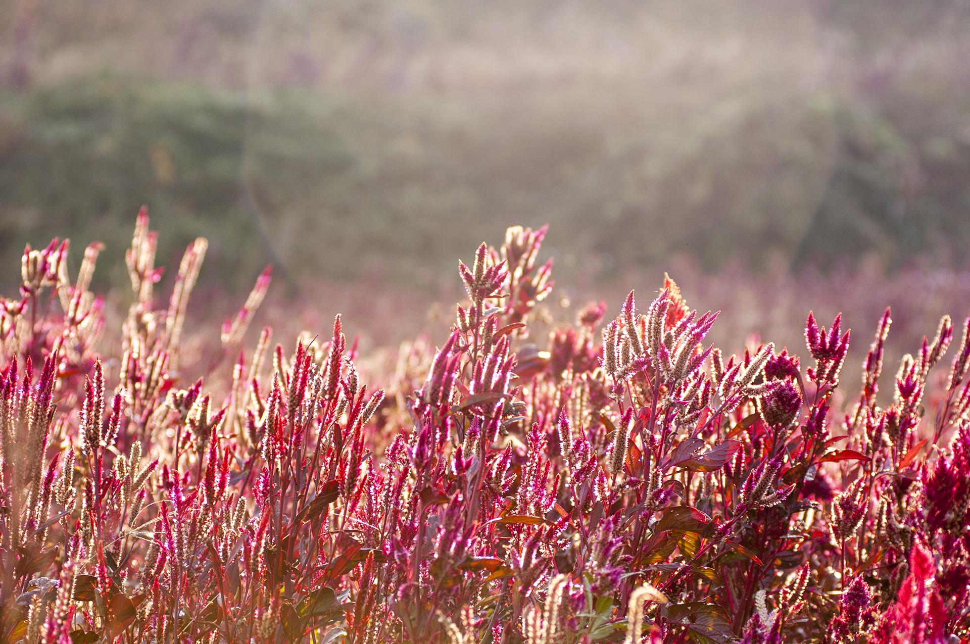 빨간 맨드라미가 바다를 향해 활짝 피었다..