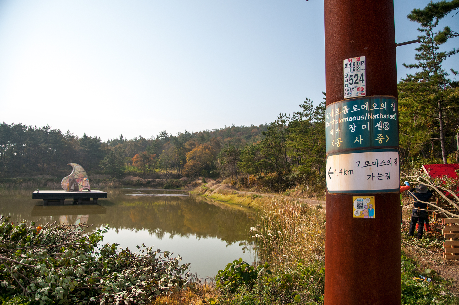 호수 둘레에 만들어 놓은 쉼터에서 정식으로 오늘 첫 휴식시간을 가져본다.