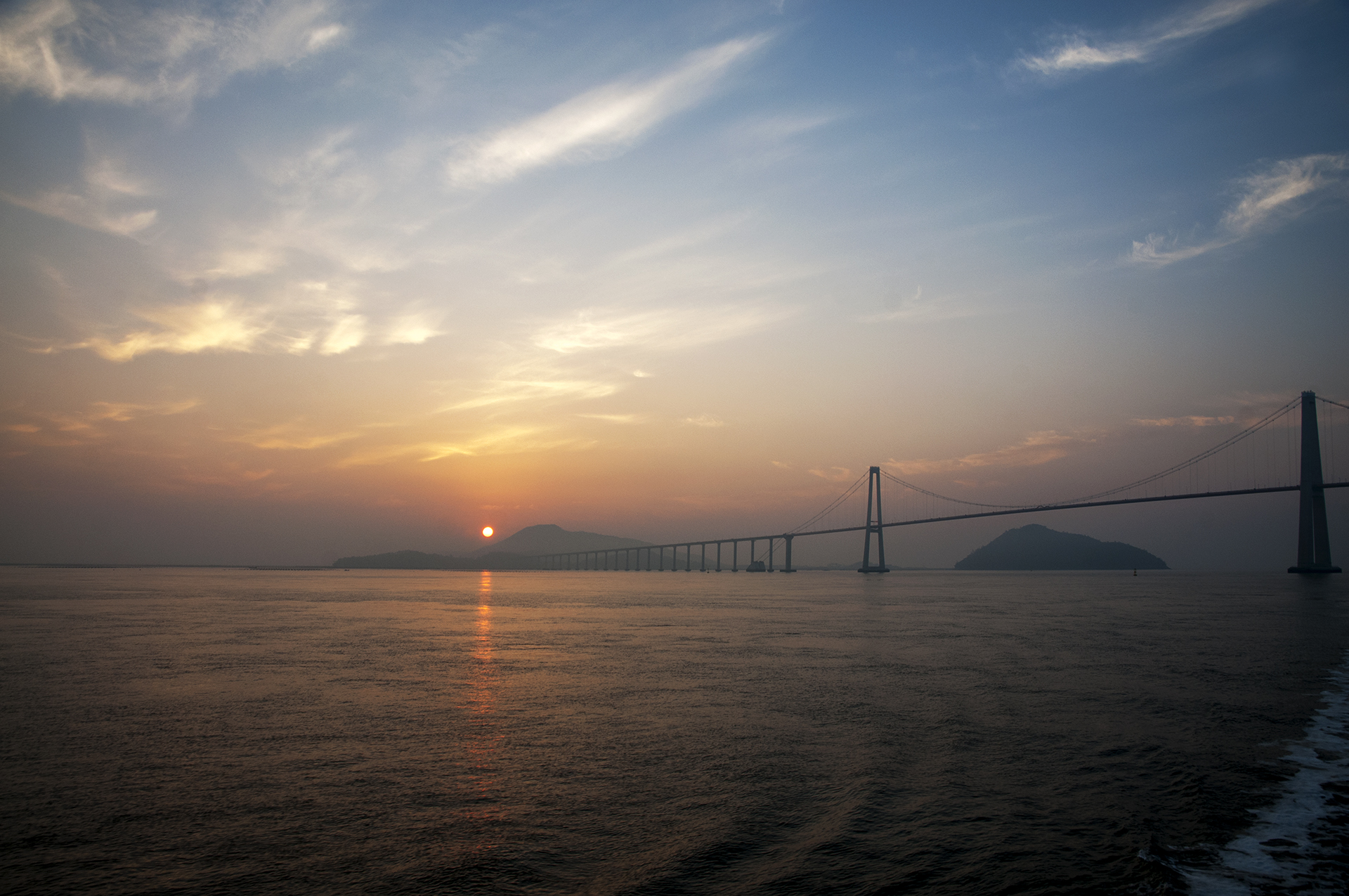 천사대교 아래를 지나면서 몇년만에 바다 일출을 본다.
