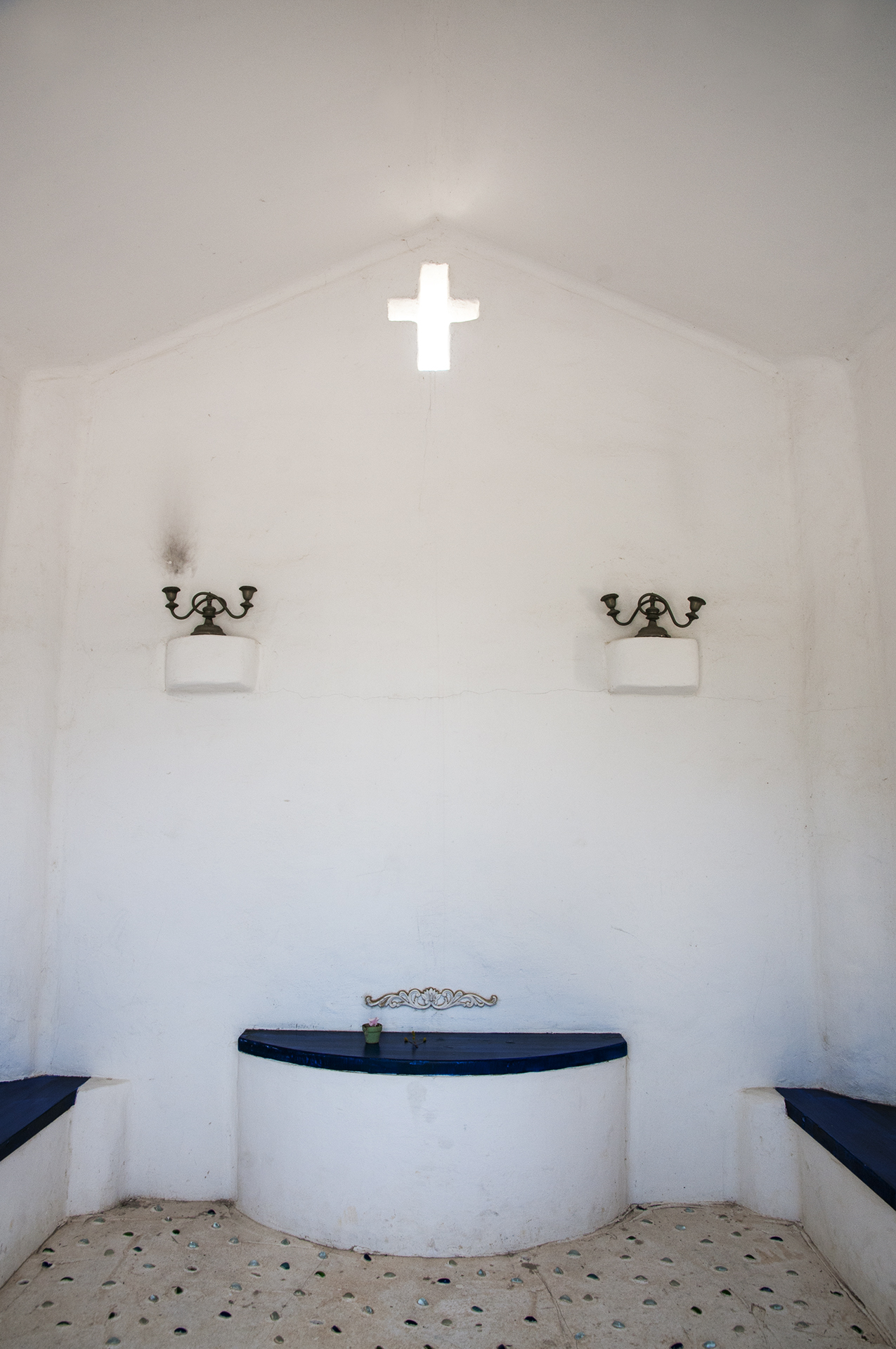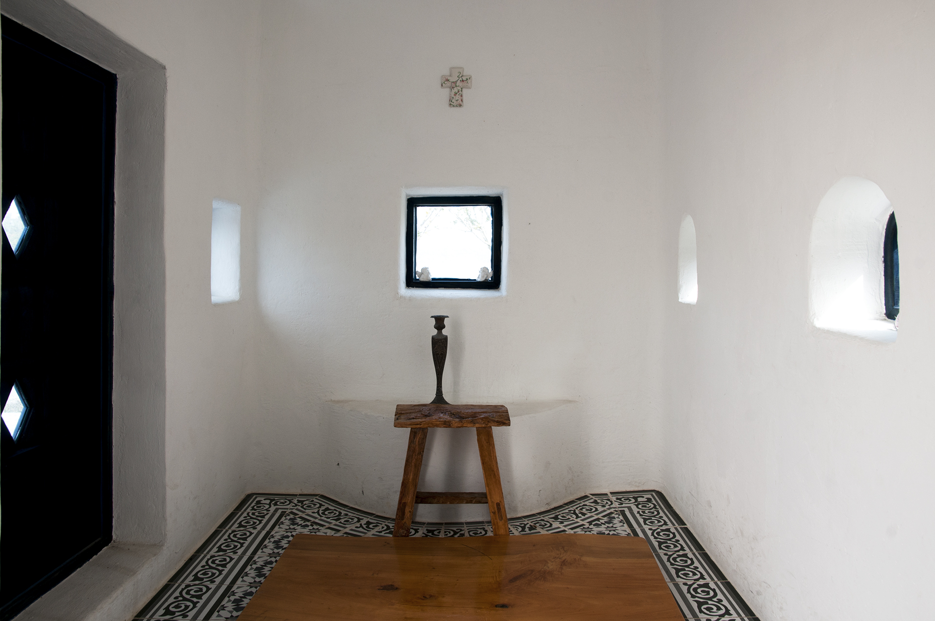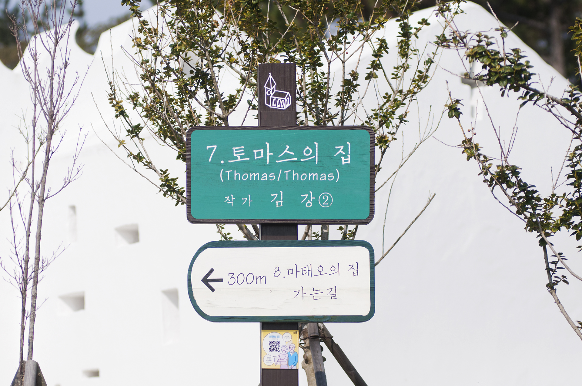 푸르른 범바우산을 배경으로 단정한 사각형의 하얀 예배당인 일곱번째 토마스의 집에 도착했다.
