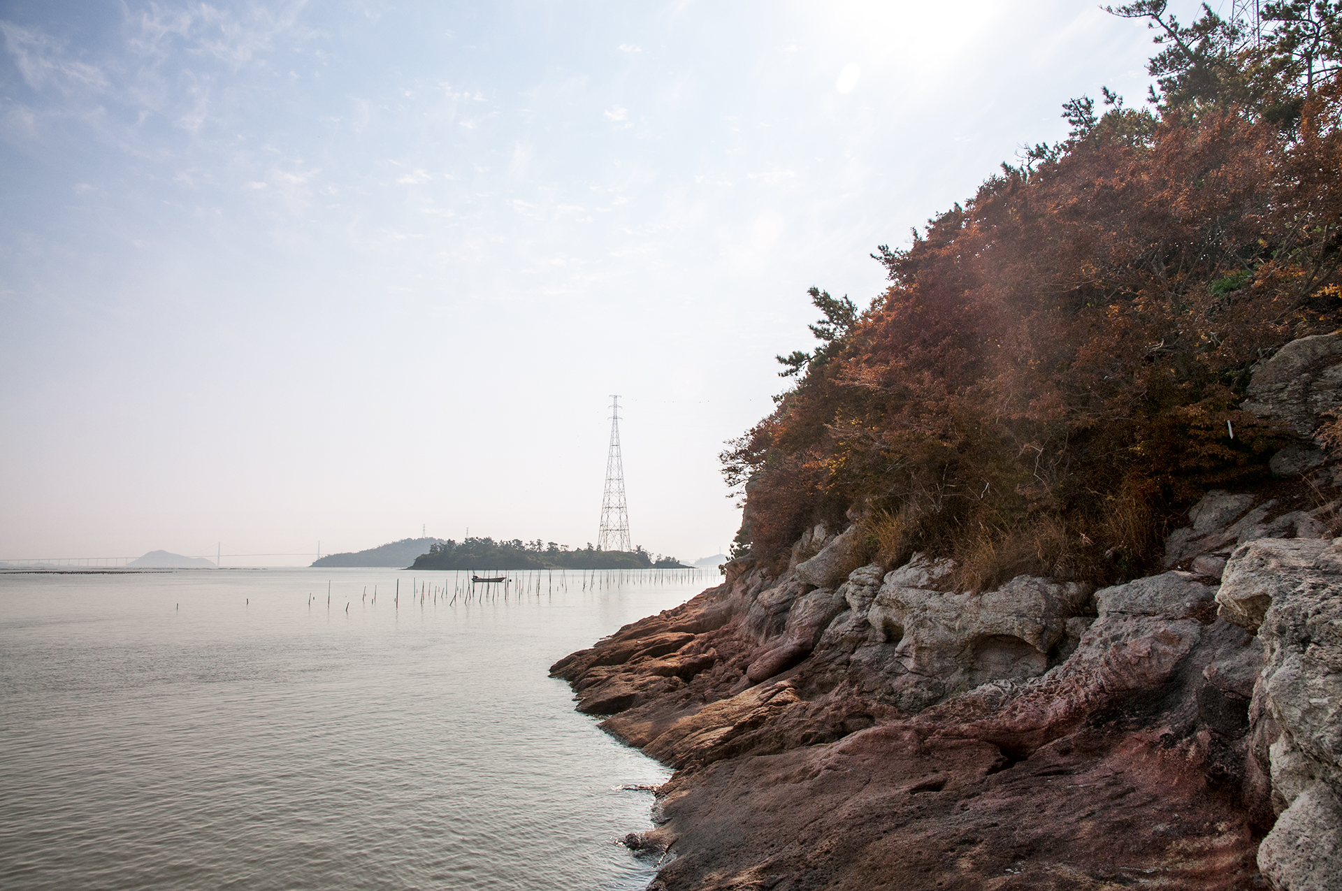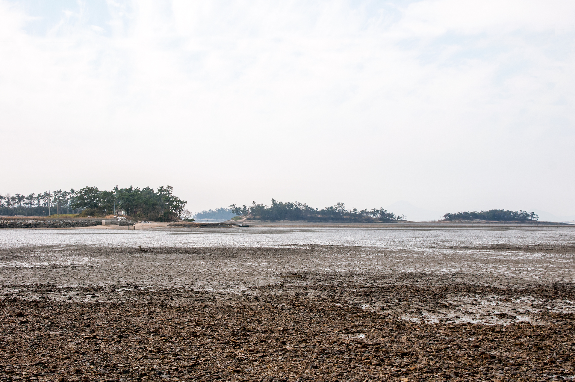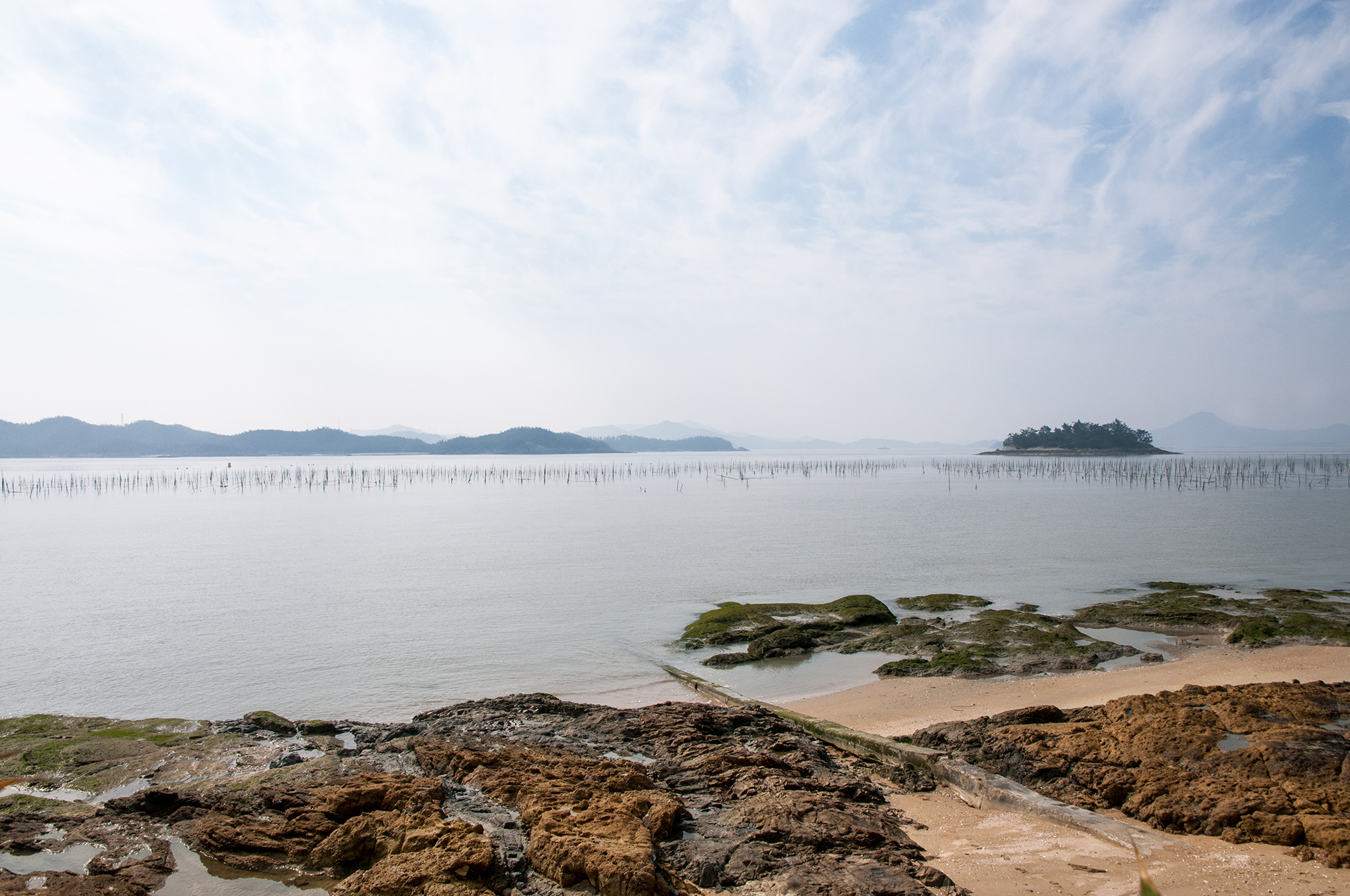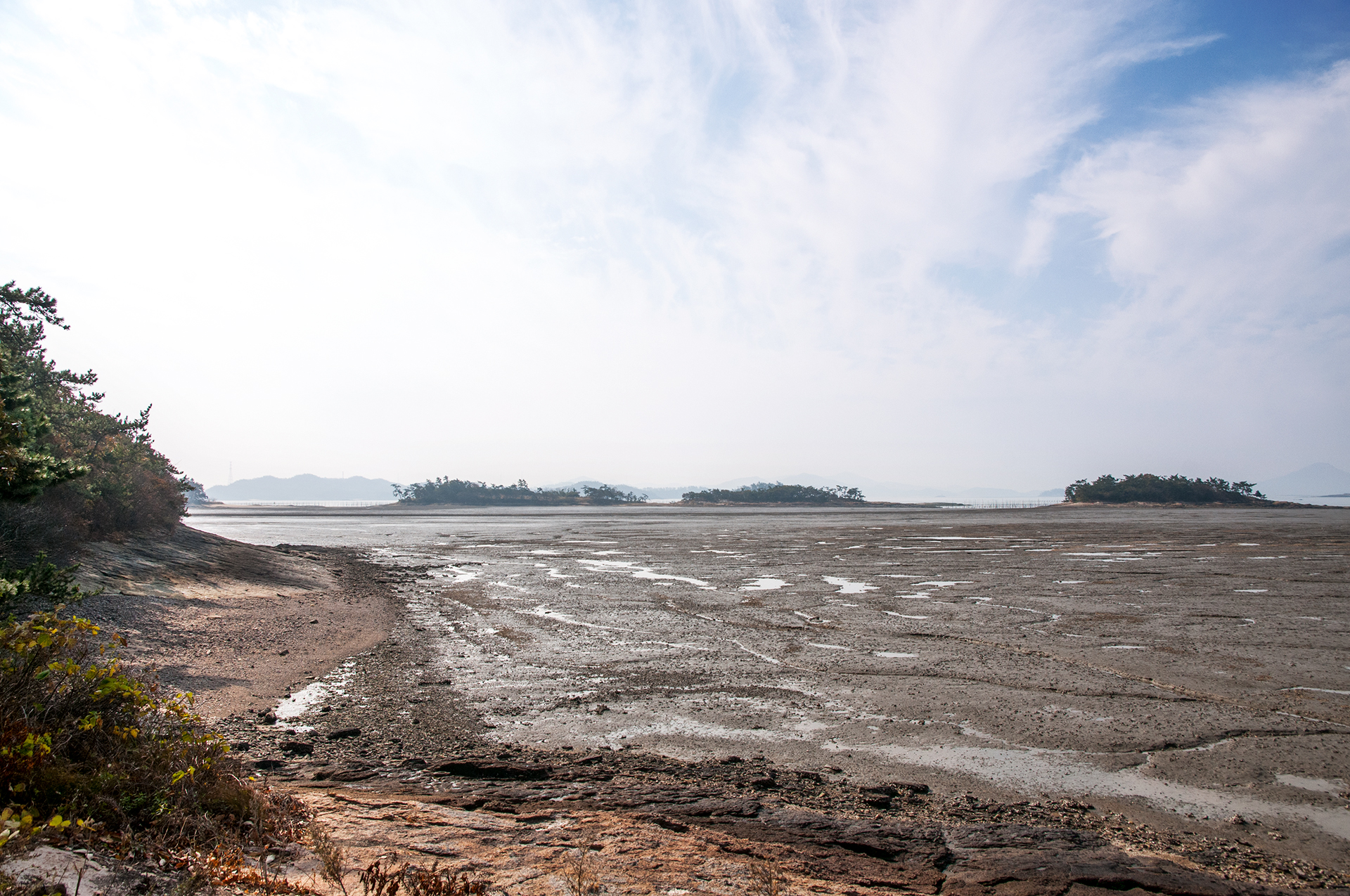 바닷가 갯벌로 나가보니 저멀리 섬들 사이로 바닷물이 들어오고 있는게 보인다.