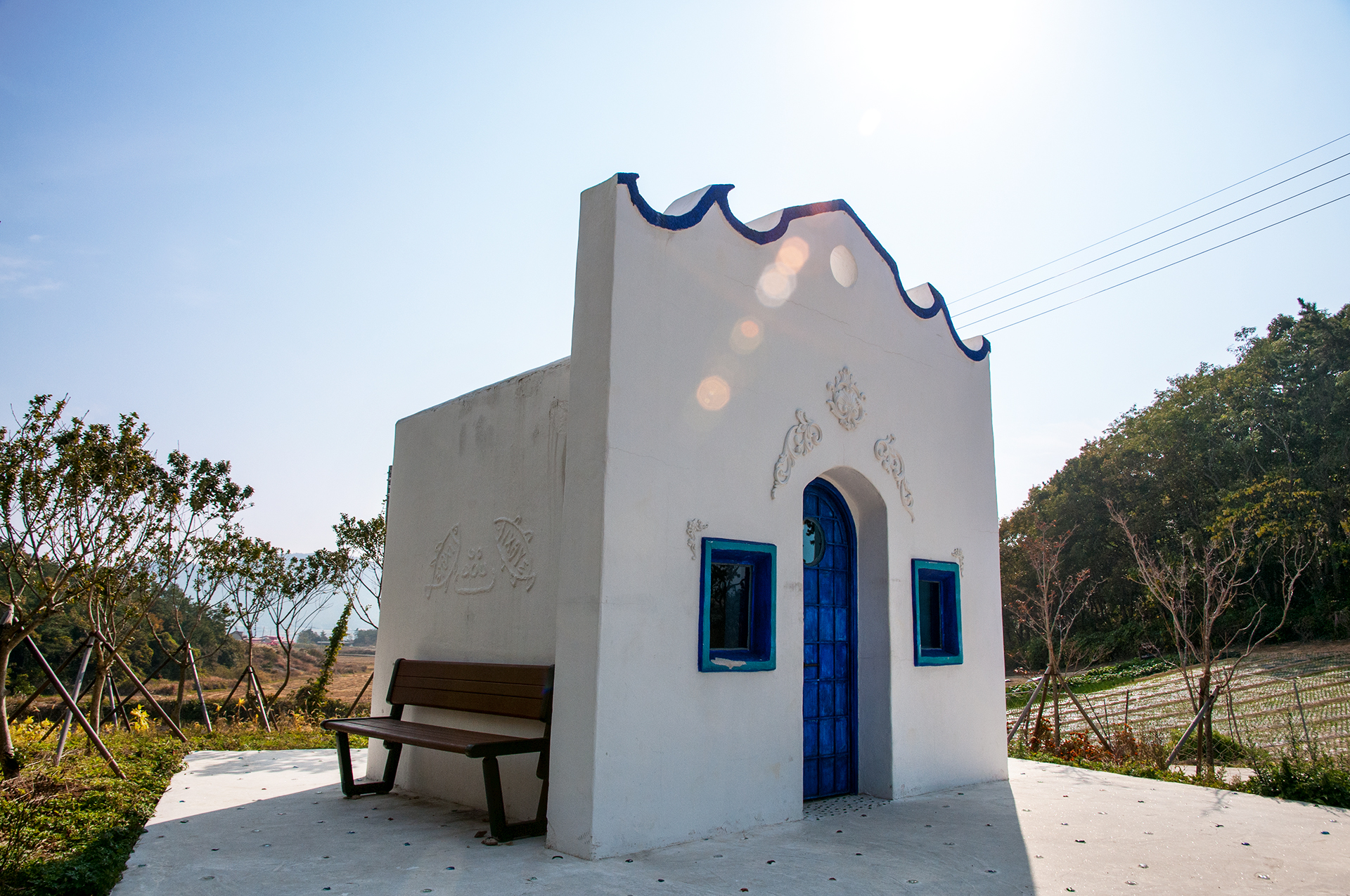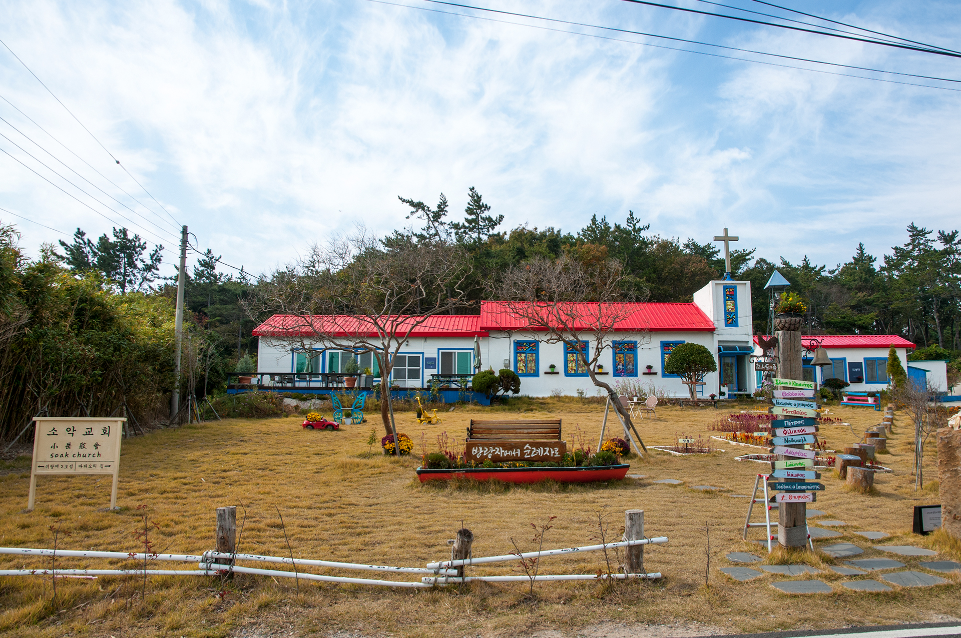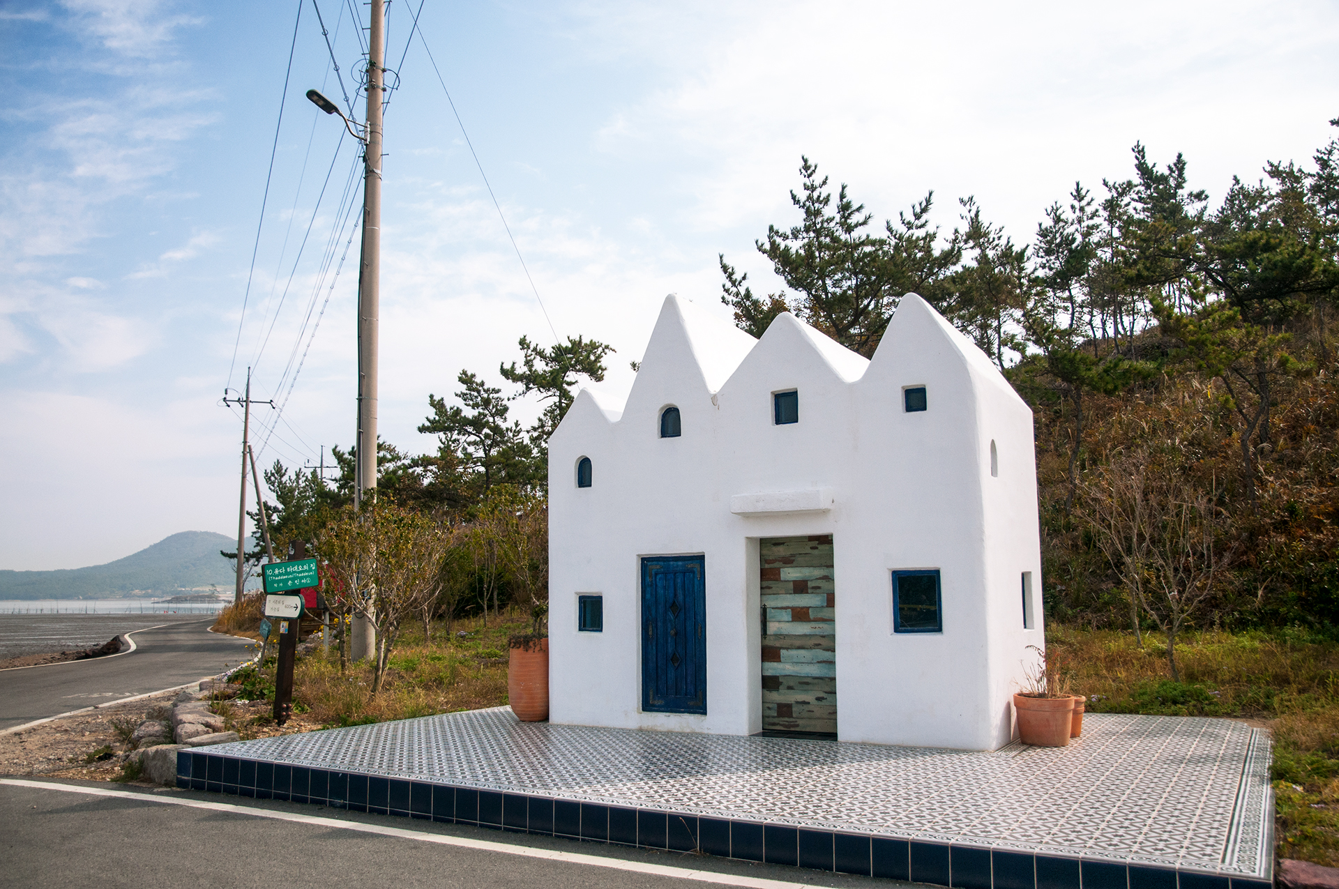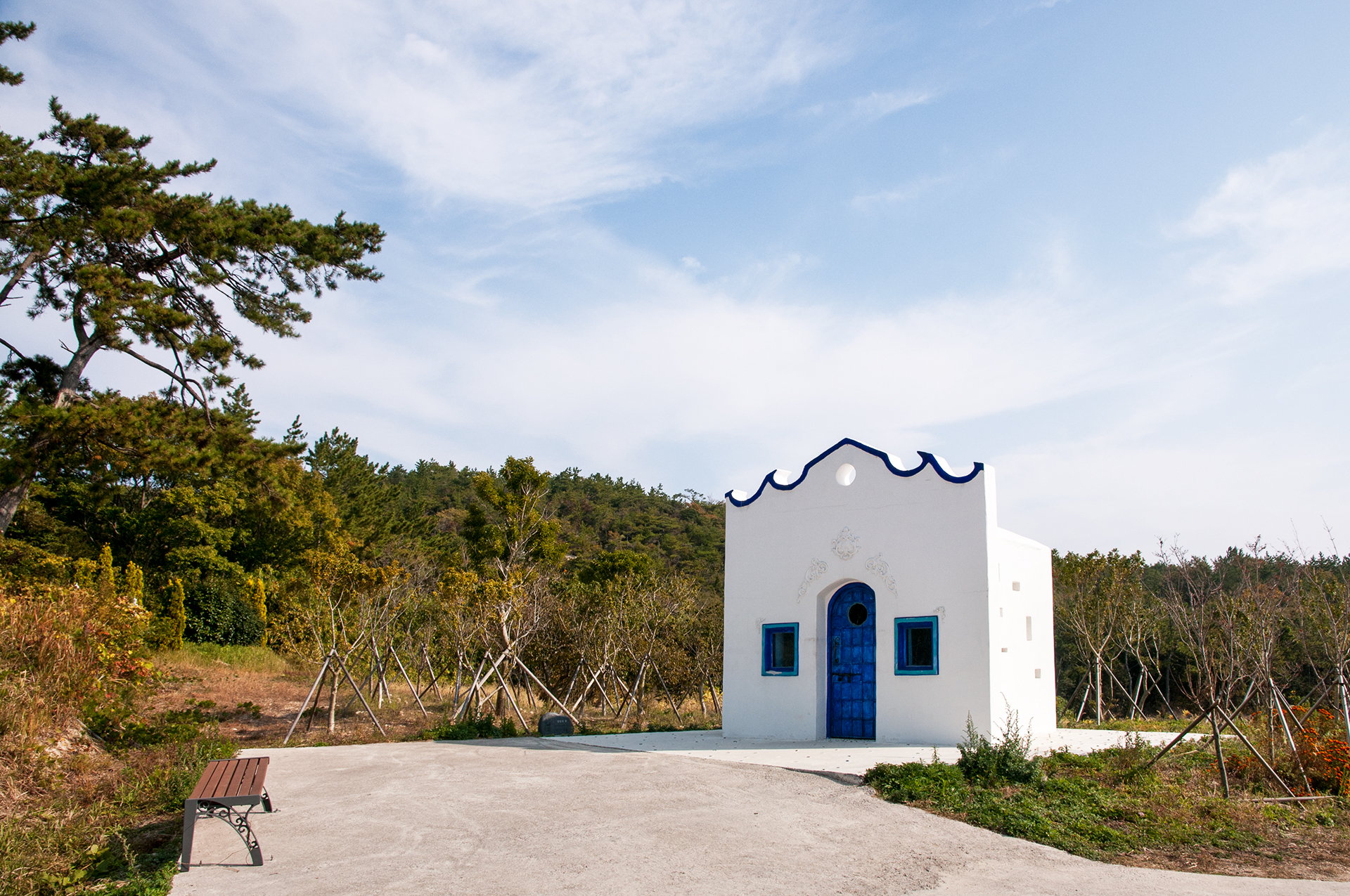 노둣길을 건너가기 전에 반대방향으로 잠시 걸어가면 빨간지붕에 파란 창틀이 예쁜 소악교회를 만날 수 있다.