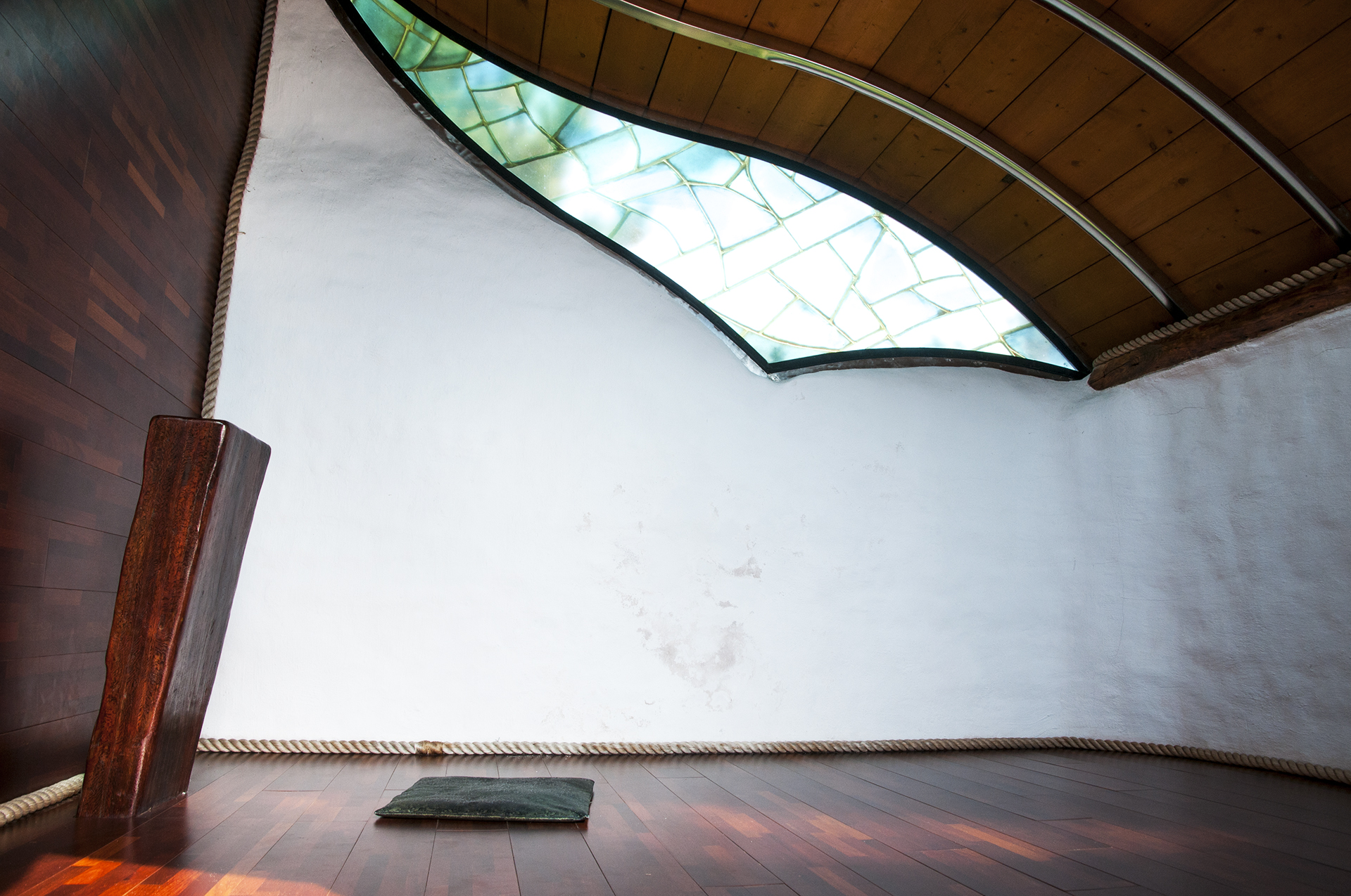 안으로 들어가면 유려한 곡선을 이룬 지붕이 미끄러지듯 아래로 향해 있고, 스텐드글라스를 통해 들어온 빛이 은은하게 내부를 밝혀준다.