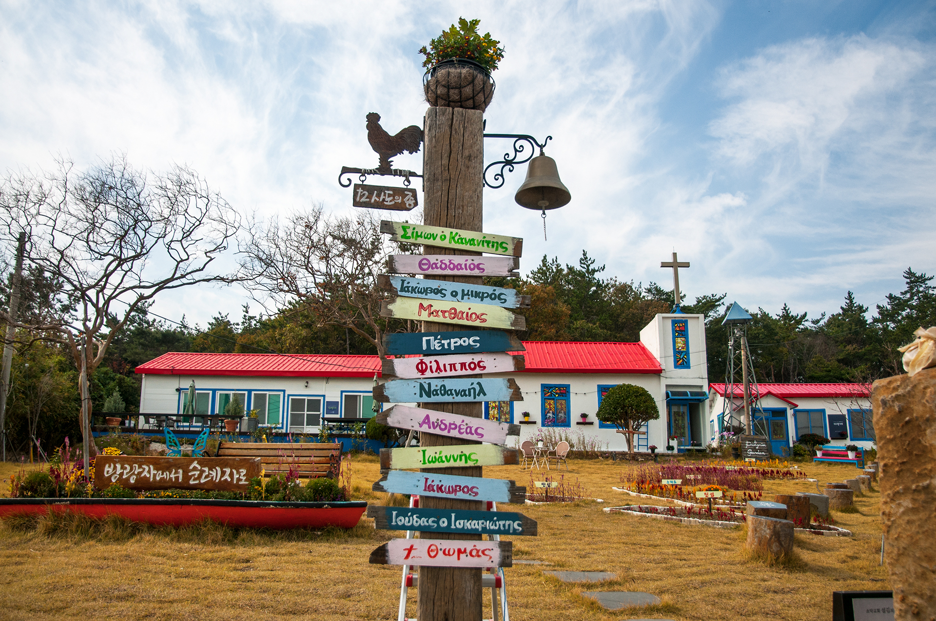 지붕에는 물고기 모양의 나무조각이 올려져 있고, 물받이 통도 어부의 집에 어울리도록 생활에서 쓰이던걸 설치해 놓았다.